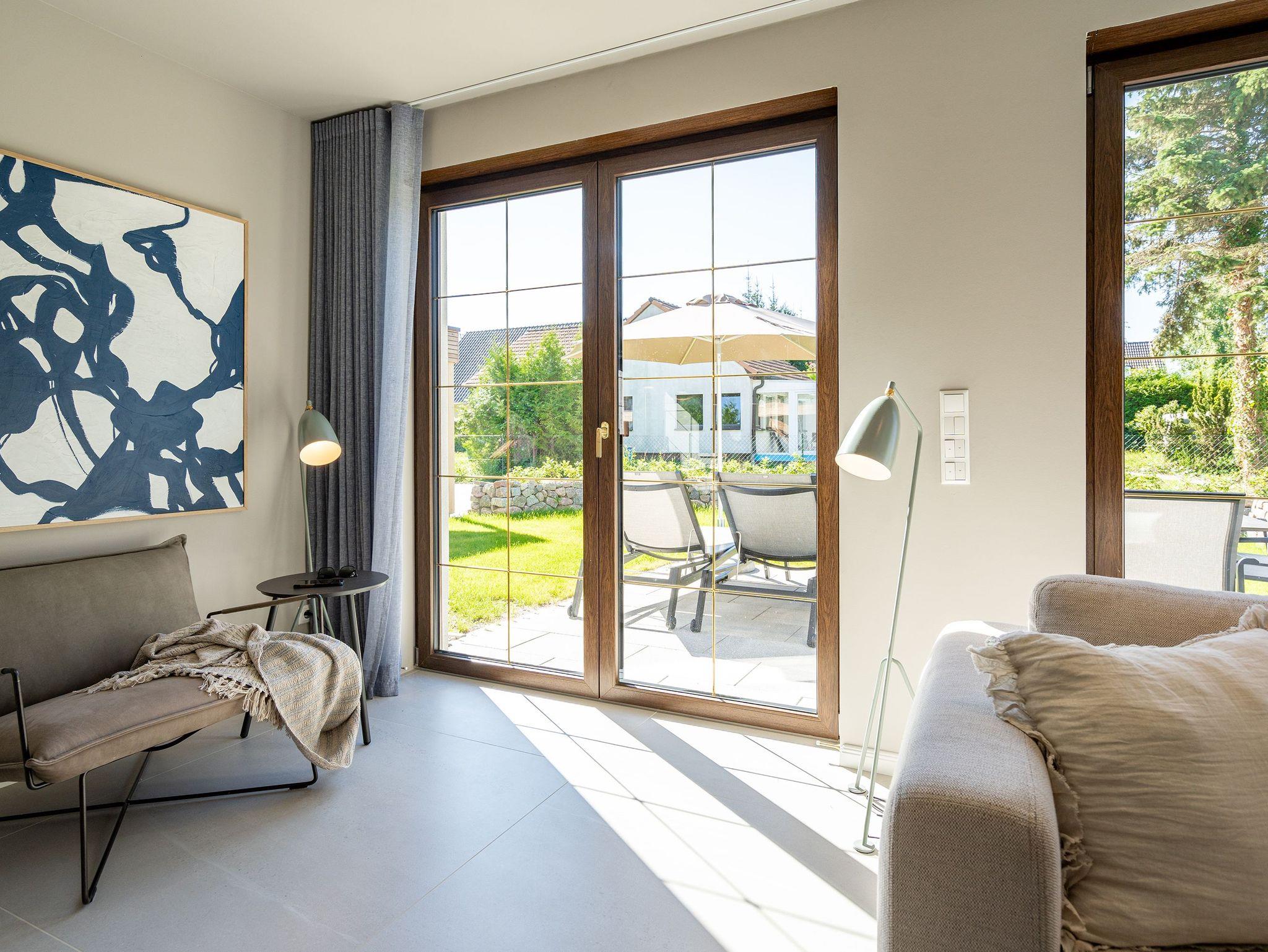 Großzügiges Ferienhaus Reet & Meer N°2 in Heringsdorf mit Sauna, Kamin und Terrasse, 350 m vom Strand entfernt.