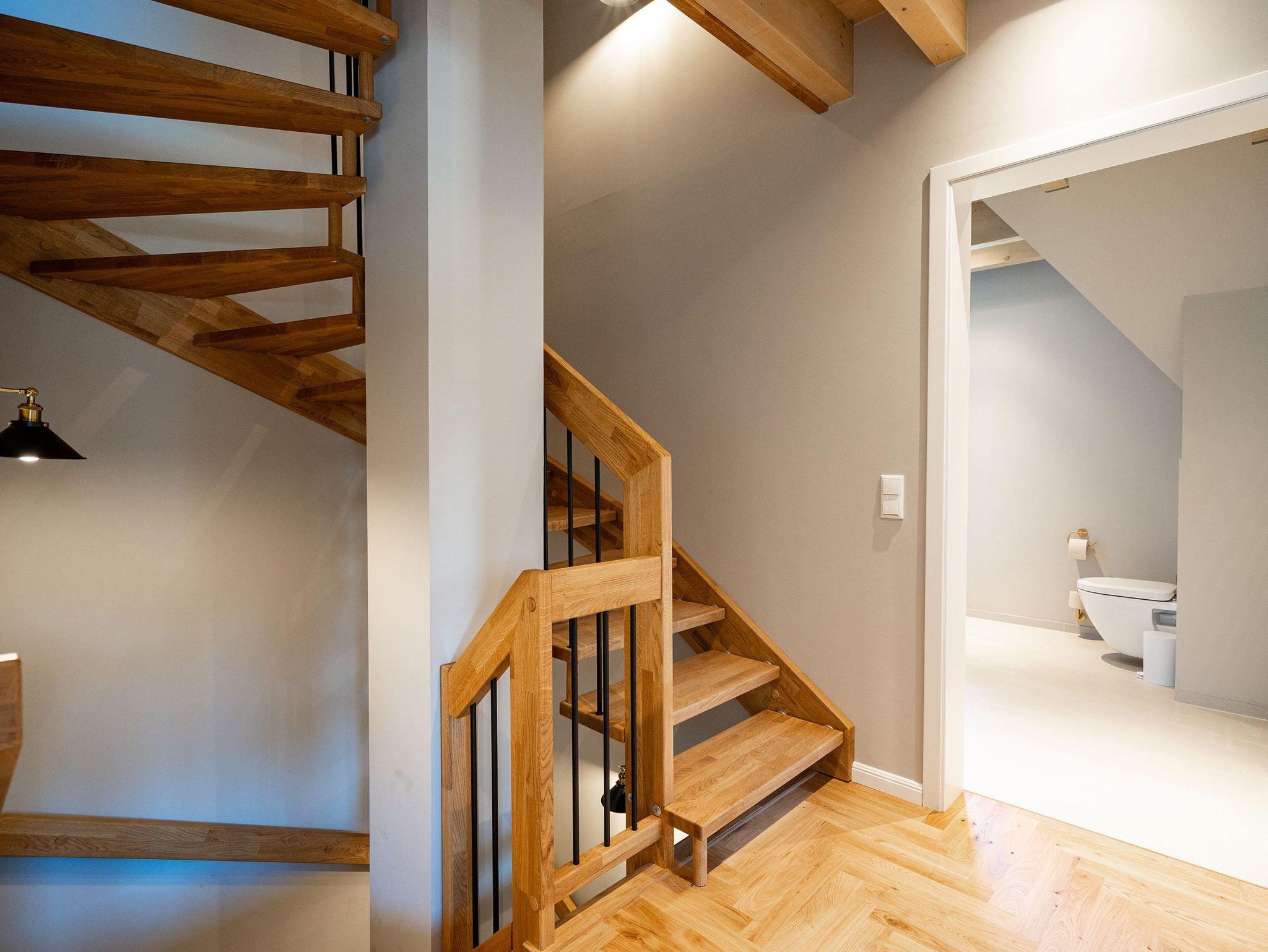 Willkommen im Ferienhaus Reet [&] Meer N°2 im Seebad Heringsdorf. Diese großzügige Doppelhaushälfte erstreckt sich über drei Etagen und bietet Platz für bis zu 8 Personen. Im Erdgeschoss erwartet Sie eine offene Wohnküche mit einem gemütlichen Essplatz und einer einladenden Sitzgruppe. Hier können Sie gemeinsam Mahlzeiten zubereiten und genießen. Ein Flat-TV und ein Kaminofen sorgen für zusätzlichen Komfort und eine behagliche Atmosphäre. Von hier aus gelangen Sie auf die Terrasse, die mit Gartenmöbeln ausgestattet ist und Ihnen eine schöne Möglichkeit bietet, die frische Luft im Freien zu genießen. Das Erdgeschoss verfügt außerdem über ein Badezimmer mit Dusche, WC und einer Finnischen Sauna, in der Sie wunderbar entspannen können. Ein Waschtrockner steht Ihnen ebenfalls zur Verfügung. Im ersten Obergeschoss finden Sie drei Schlafzimmer, jeweils mit einem komfortablen Boxspringdoppelbett (1,80m x 2,00m), einem Einbaukleiderschrank und in zwei der drei Zimmer ein Flat-TV. Hier können Sie sich zurückziehen und erholsame Nächte verbringen. Zusätzlich gibt es ein Badezimmer mit Dusche, Waschtisch und WC. Zwei Schlafzimmer bieten Ihnen zudem Zugang zum Balkon mit Sonnenliegen, von dem aus Sie den Blick auf die Umgebung genießen können. Im Dachgeschoss befindet sich ein weiteres Schlafzimmer (aktuell noch ohne Verdunklungsmöglichkeit) mit einem Boxspringdoppelbett, Flat-TV und einer Kommode. Hier finden Sie auch ein kleines Badezimmer mit Waschtisch und WC. Das Dachgeschoss bietet somit zusätzlichen Platz für Ihre Gäste. Für Ihre Fahrzeuge steht ein Carport mit zwei Stellplätzen (mit E-Ladestation - kostenpflichtig) zur Verfügung, damit Sie bequem an- und abreisen können. Kostenfreies WLAN ist selbstverständlich ebenfalls vorhanden, sodass Sie mit Ihren Lieben in Verbindung bleiben können. Das Ferienhaus Reet [&] Meer N°2 in der Triftstraße 10f verspricht Ihnen einen unvergesslichen Aufenthalt in Heringsdorf. Genießen Sie die Annehmlichkeiten des Hauses, erkunden Sie die malerische Umgebung und erleben Sie erholsame Tage an der Ostsee.