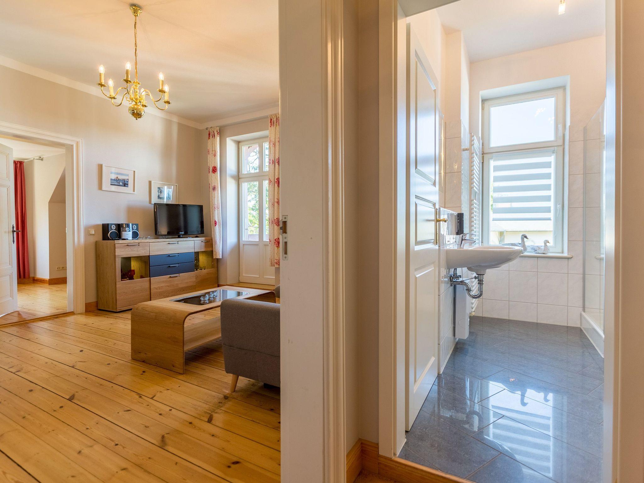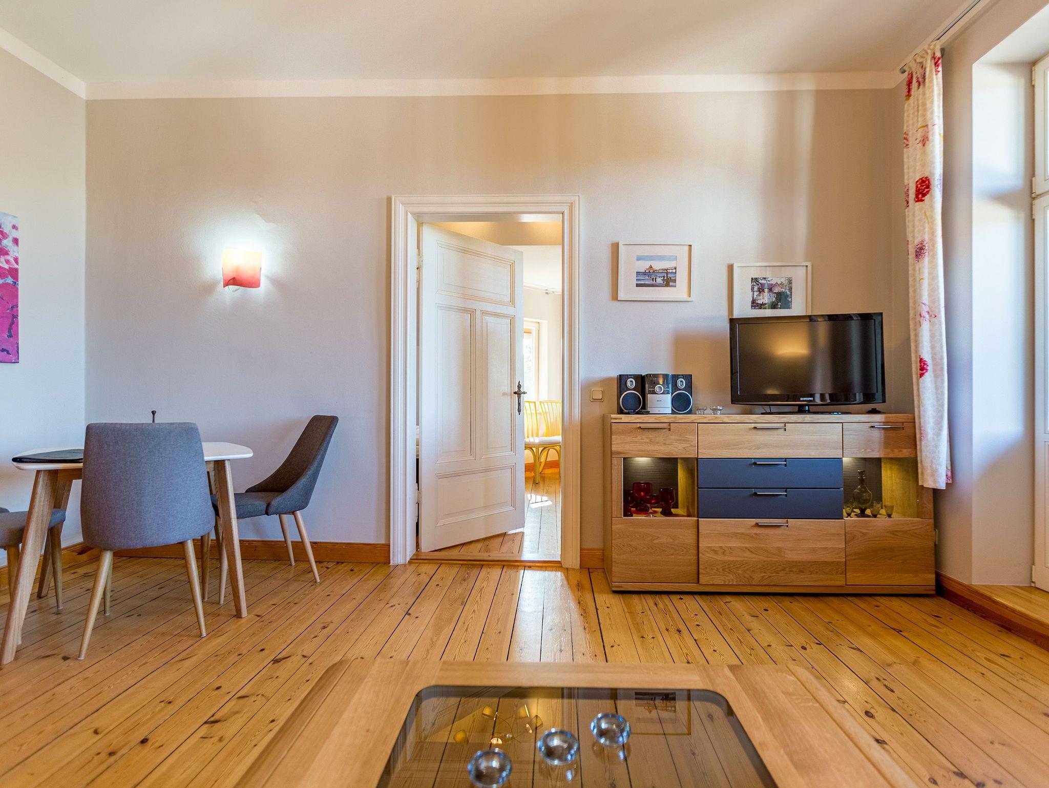Moderne Ferienwohnung in historischer Villa, direkt am Strand von Heringsdorf mit Balkon und Sauna.