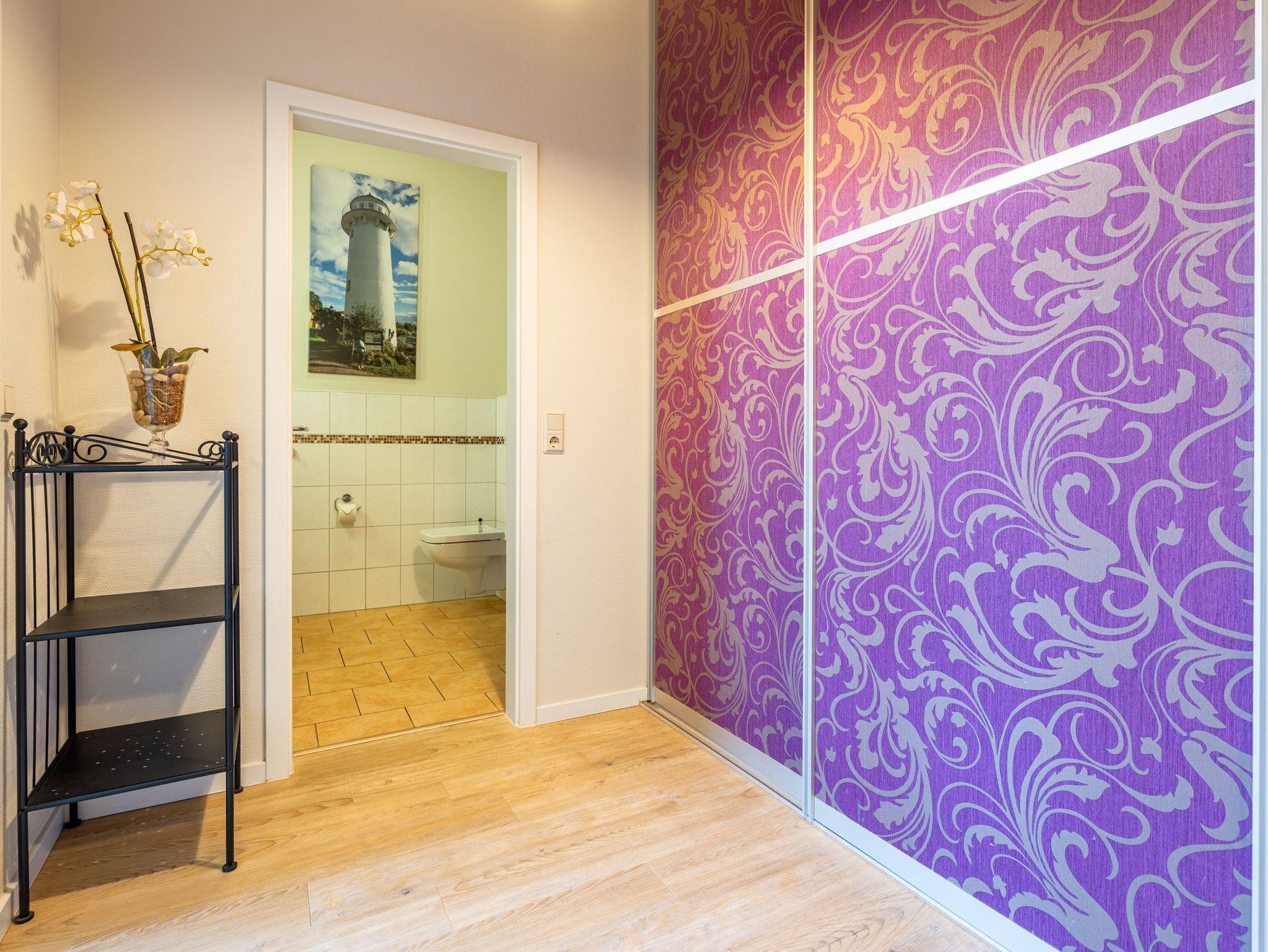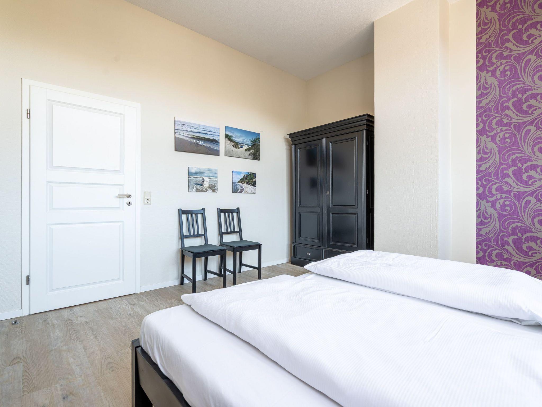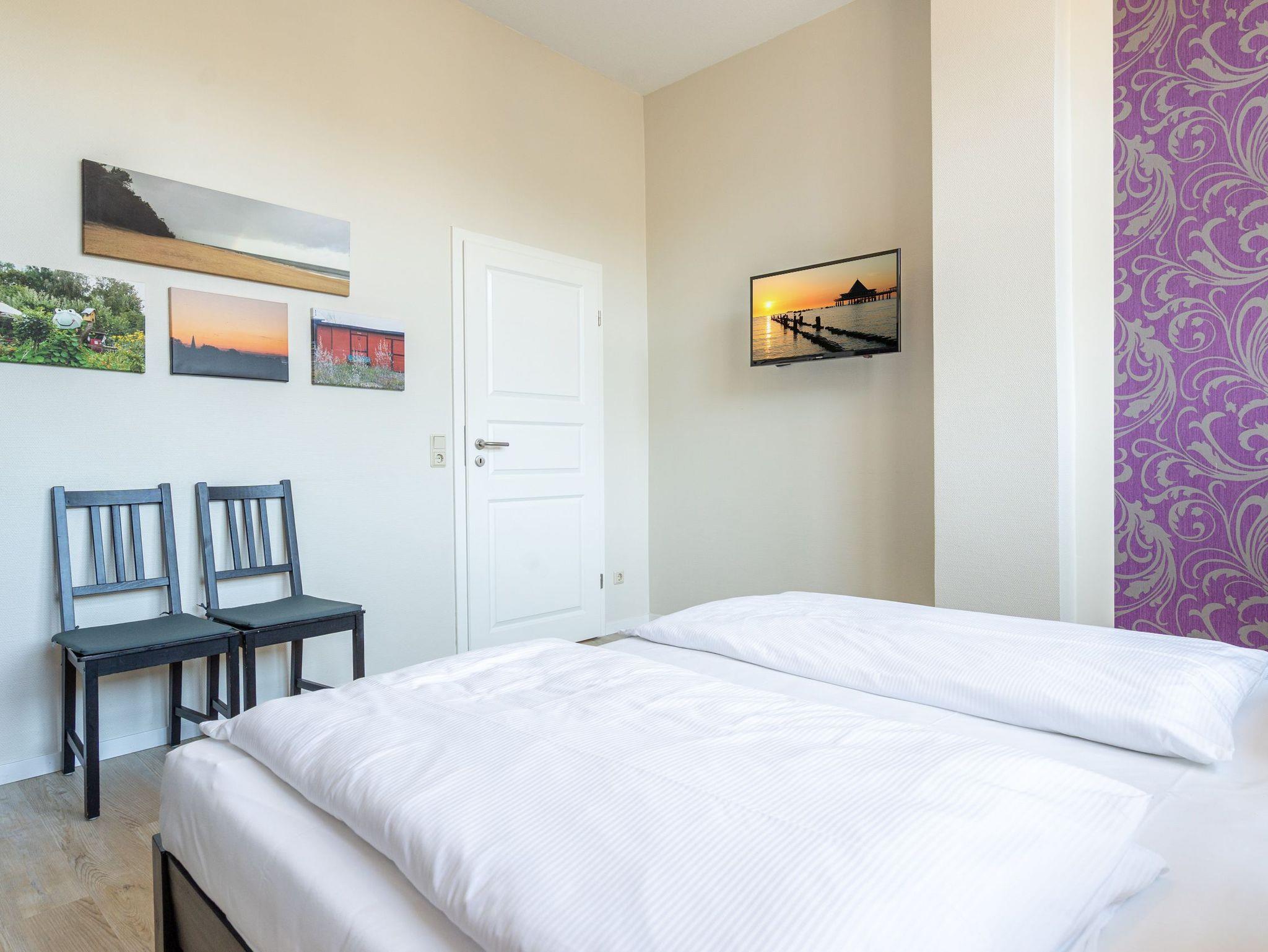 Stylische Farben und ein moderner Look versprühen sofort das passende Urlaubsfeeling. Die schöne 3-Raum-Ferienwohnung (75 qm) befindet sich im 1. Obergeschoss des Hauses und bietet Platz für 4 Erwachsene und ein Kleinkind bis 3 Jahre. An den Wohnbereich mit bequemer Sitzgruppe und schönen Kaminofen schließt sich die offene Küche mit Essplatz an. Auf dem Südbalkon lässt es sich besonders gut relaxen und man genießt den Blick ins Grüne. Die beiden Schlafzimmer mit Doppelbetten und TV, ein Bad mit Dusche und WC und ein Gäste-WC ergänzen die Wohnung. Für die Wohnung steht ein PKW-Stellplatz zur Verfügung. Ein WLAN-Netz im Haus kann kostenfrei genutzt werden. Auf Wunsch stellen wir für unsere kleinen Gäste ein Kinderreisebett (ohne zusätzliche Matratze [&] Bettzeug) und einen Kinderhochstuhl ( gegen einen Aufpreis) zur Verfügung. Für Ihren Komfort sind die Betten bei der Anreise bezogen und Handtücher liegen bereit (Erstausstattung). Für den Tag am Meer steht Ihnen als besonderes Bonbon von Mitte Mai bis Ende September (je nach Witterung) ein Strandkorb am Strand kostenlos zur Verfügung.