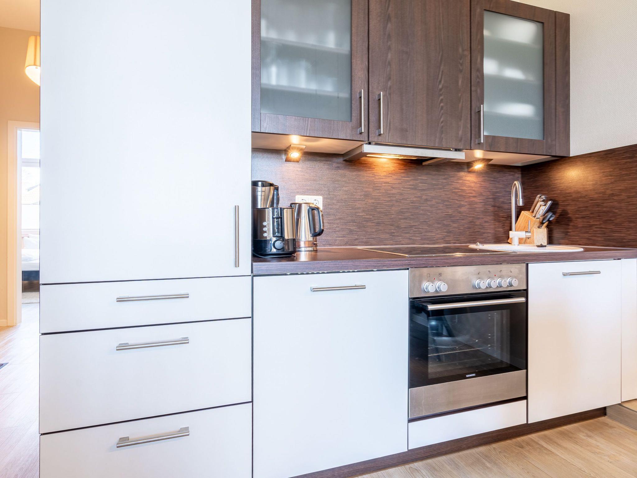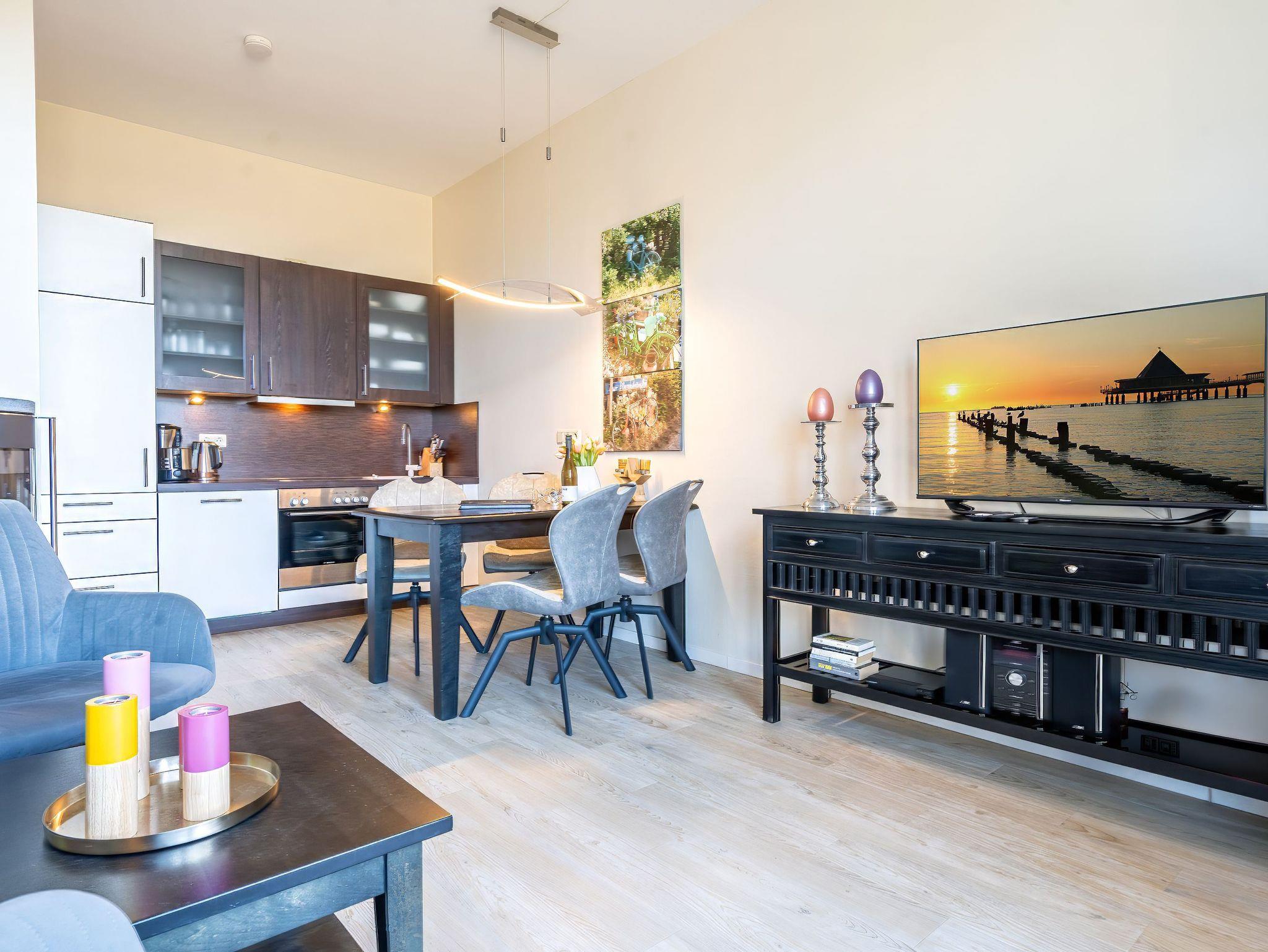 Moderne Ferienwohnung mit Balkon und Strandkorb
