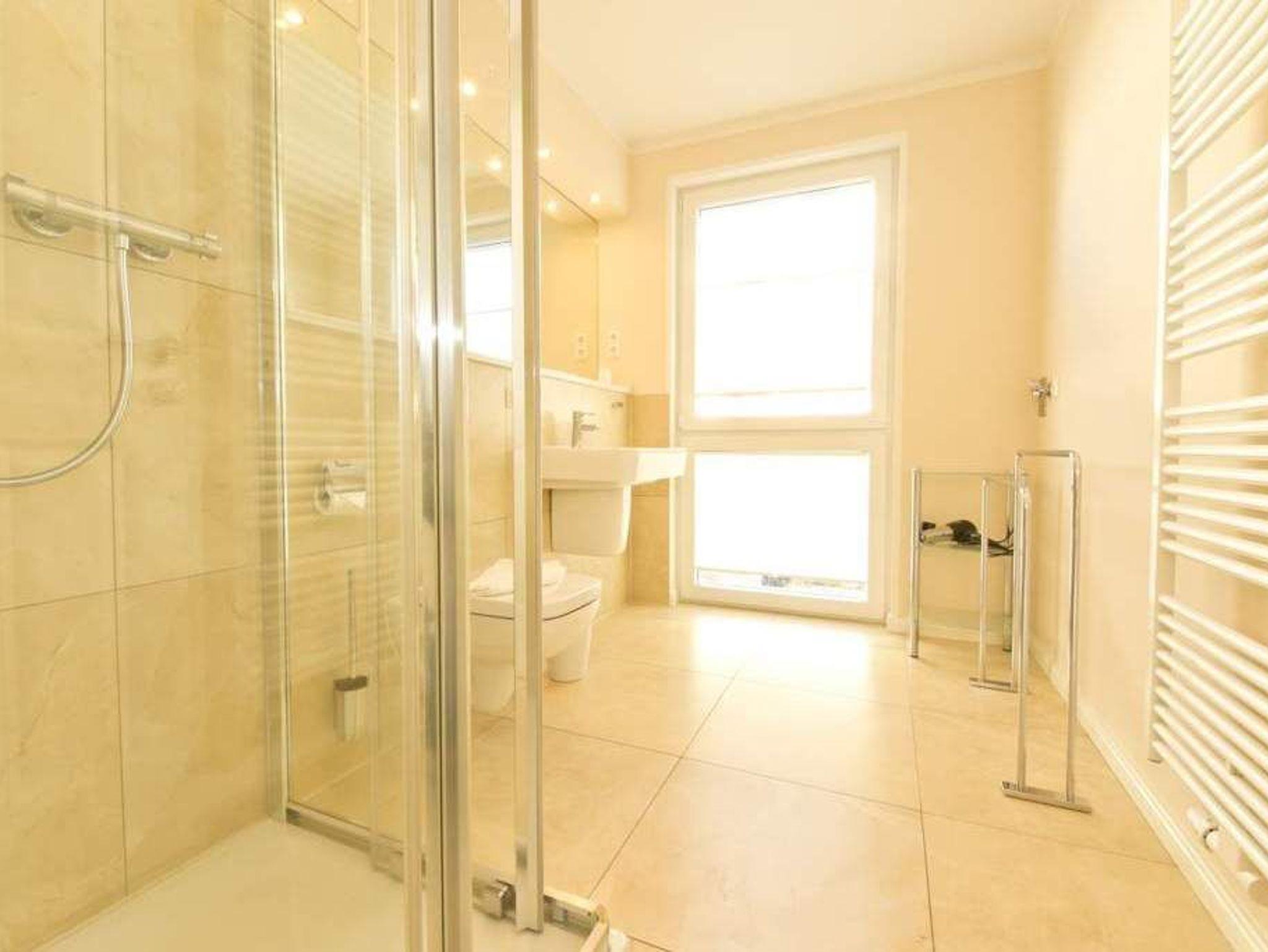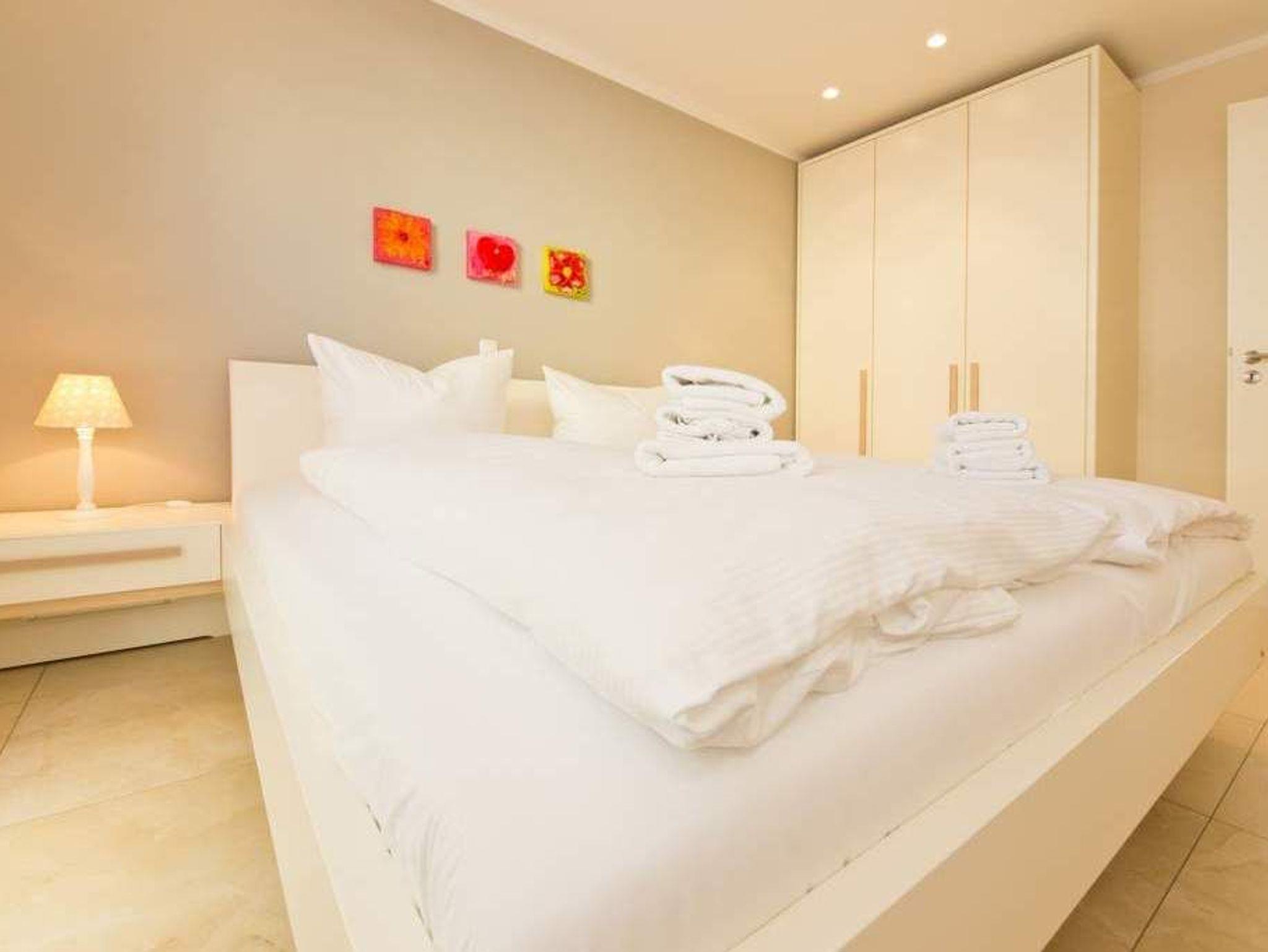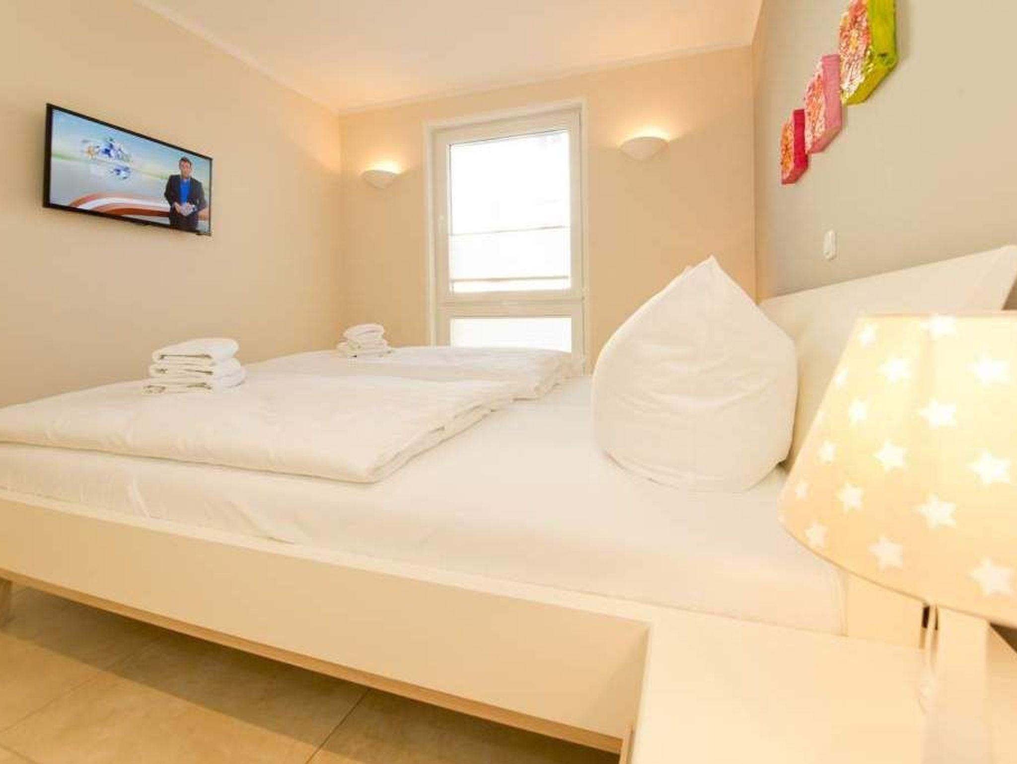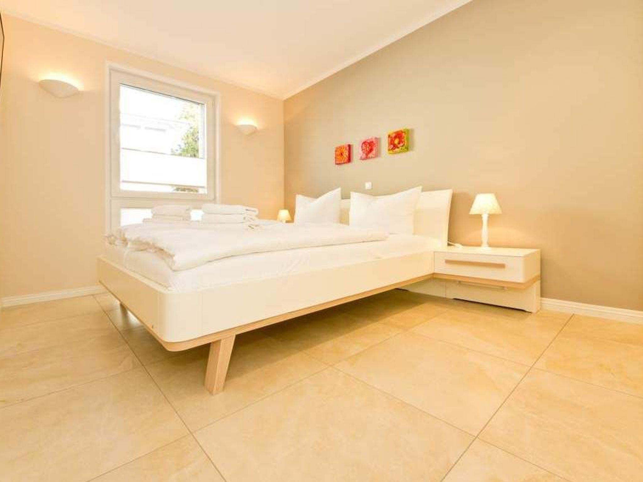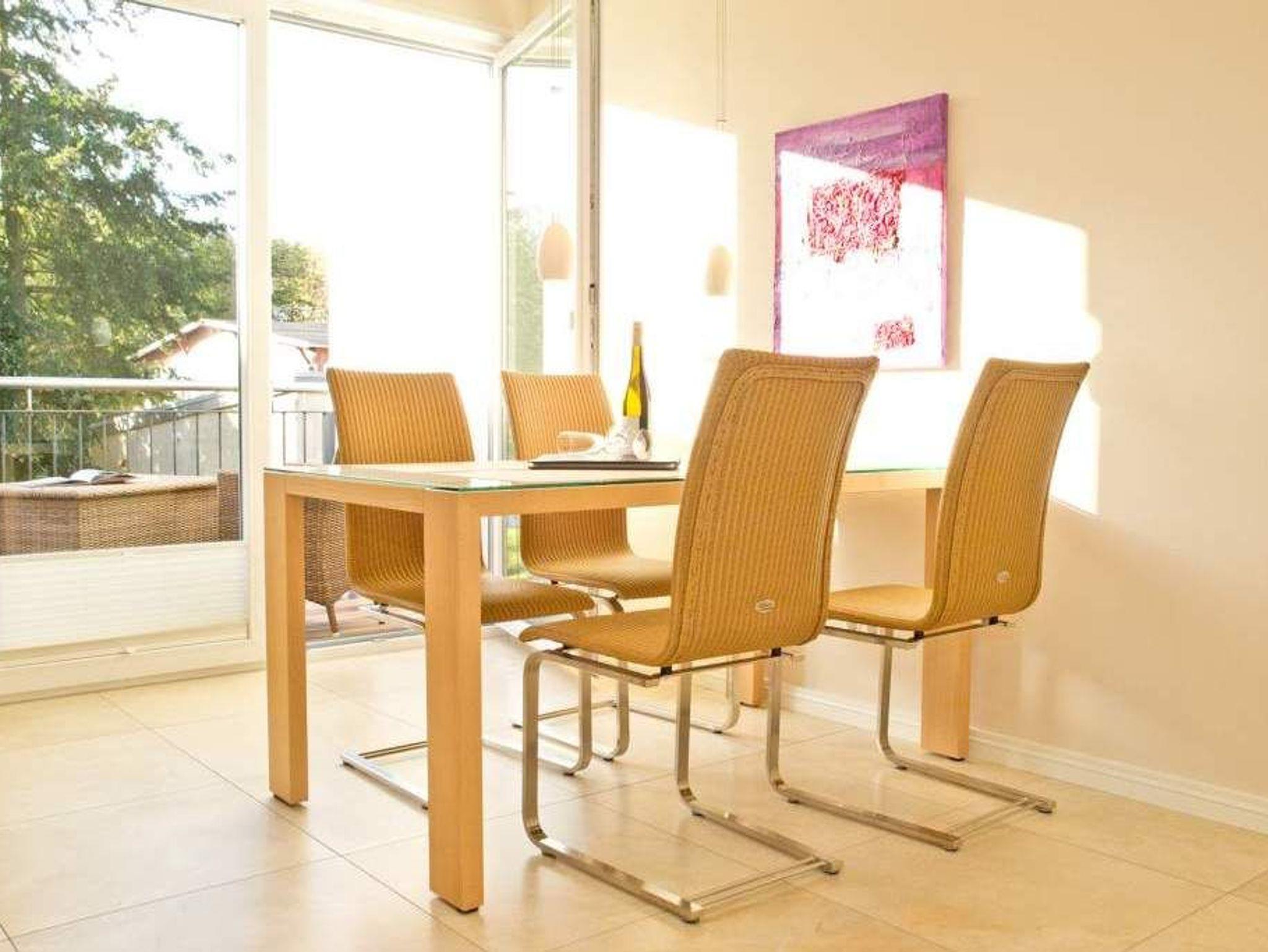 Modern. Lichtdurchflutet. Stilsicher, so empfängt Sie die Ferienwohnung 6 im 1. Obergeschoss des neuen Hauses (50 qm für 2 Personen). Warme, an Strand und Meer erinnernde Farben, ausgesuchte Materialien und stilvolle Dekorationen, verleihen dem komplett gefliesten Appartement Finesse und Leichtigkeit. Der Wohnbereich ist mit einer bequemen Ledercouch und technischen Feinheiten (Flat-TV, Minianlage, DVD) ausgestattet, von hier hat man auch den Zugang zum Südbalkon. Eine offene, komplett ausgestattete Küche, ein wertiges und gemütliches Schlafzimmer mit Doppelbett und Flat-TV sowie ein großzügiges Duschbad mit Fenster ergänzen die Wohnung und bieten Platz für zwei Personen. Für Fahrrad-Freunde ist ein abschließbarer und zur Wohnung gehörender Abstellraum vorhanden. Ein kostenfreier Parkplatz befindet sich auf dem angrenzenden Grundstück. Das WLAN-Netz ist kostenfrei nutzbar.