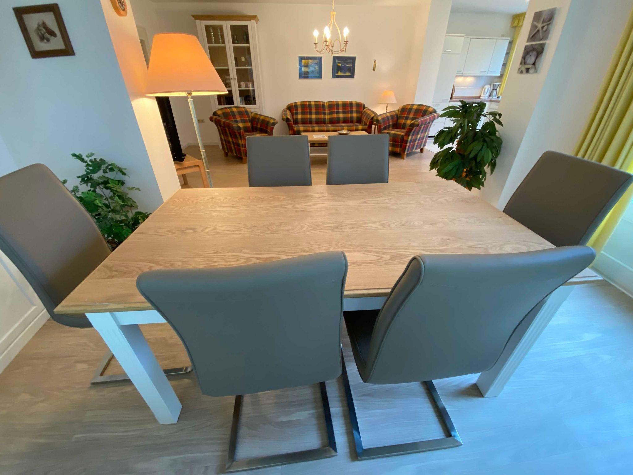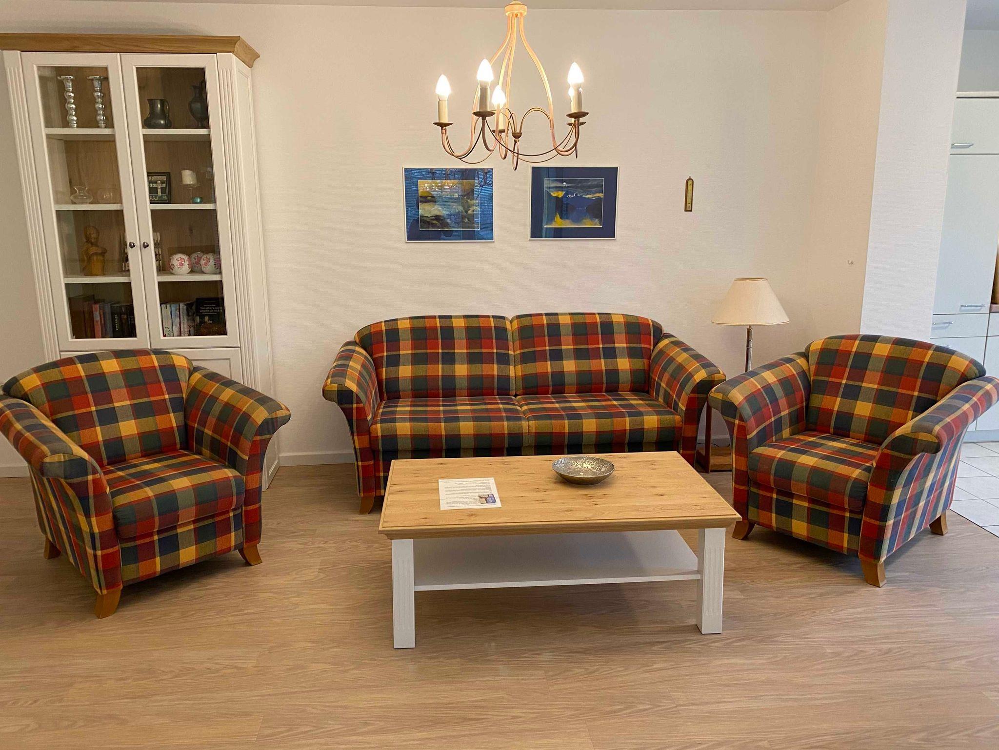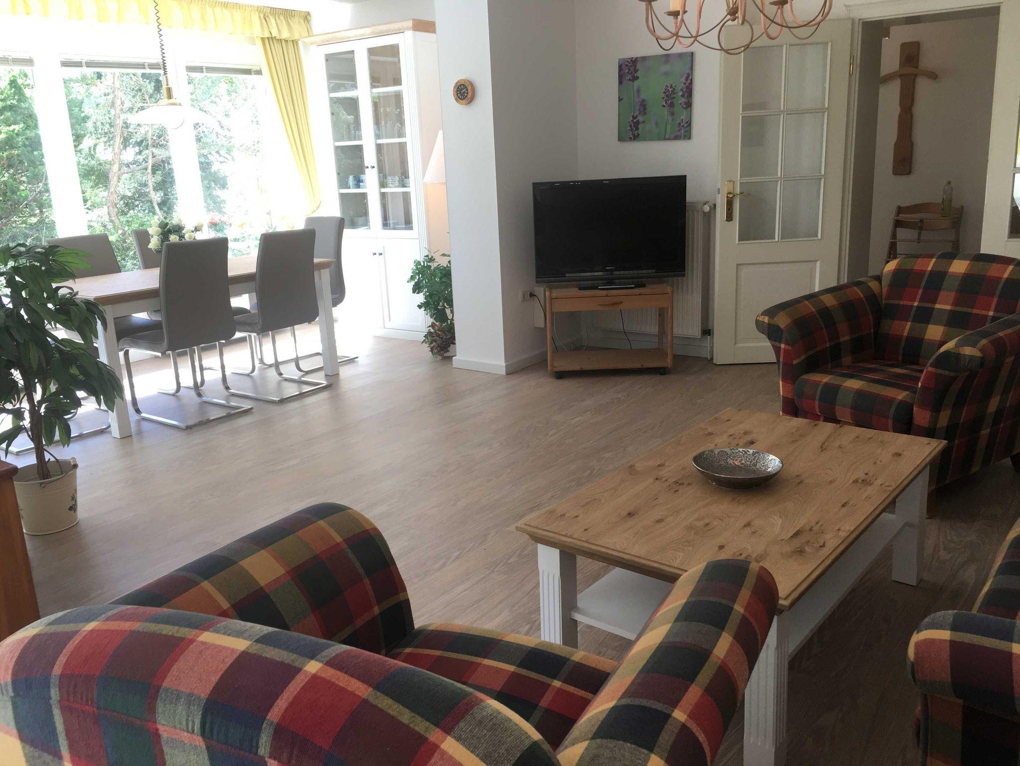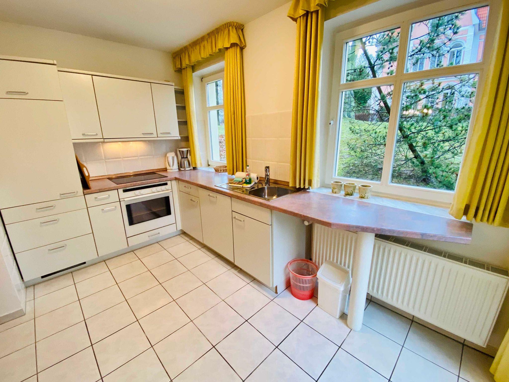 Die Ferienwohnung E2C befindet sich im Erdgeschoss der Villa Caprivi. Die 2 Raumwohnung besteht aus einem gemütlichen Wohnraum mit offener Küche (Herd, Geschirrspüler, Backofen) und Wintergartenflair für den Esstisch. Das Schlafzimmer verfügt über ein Doppelbett und ein Einzelbett. Das Bad ist innenliegend und hat eine Badewanne mit Duschabtrennung. Zur Ferienwohnung gehört eine Südterrasse im Grünen sowie ein Stellplatz.