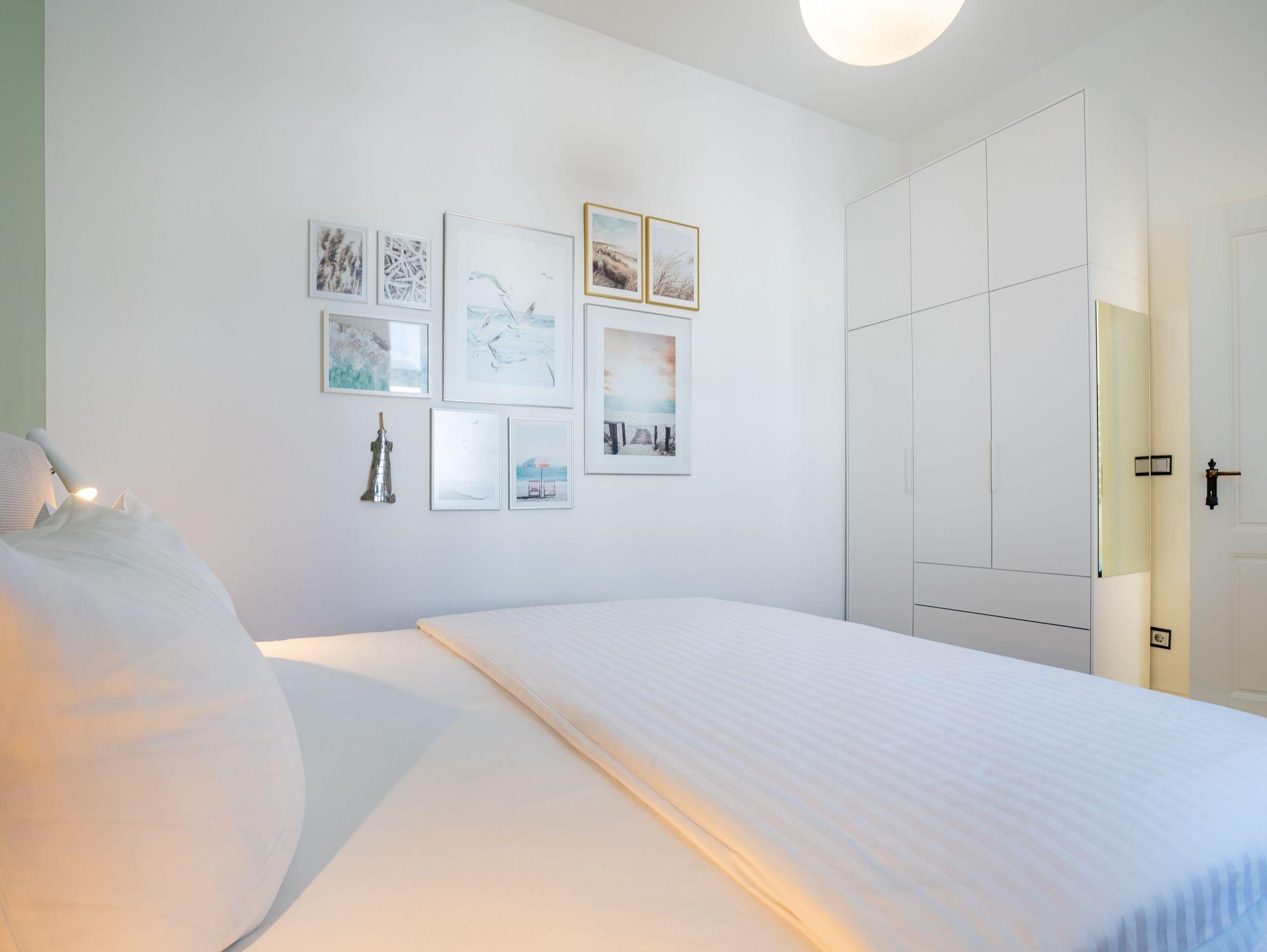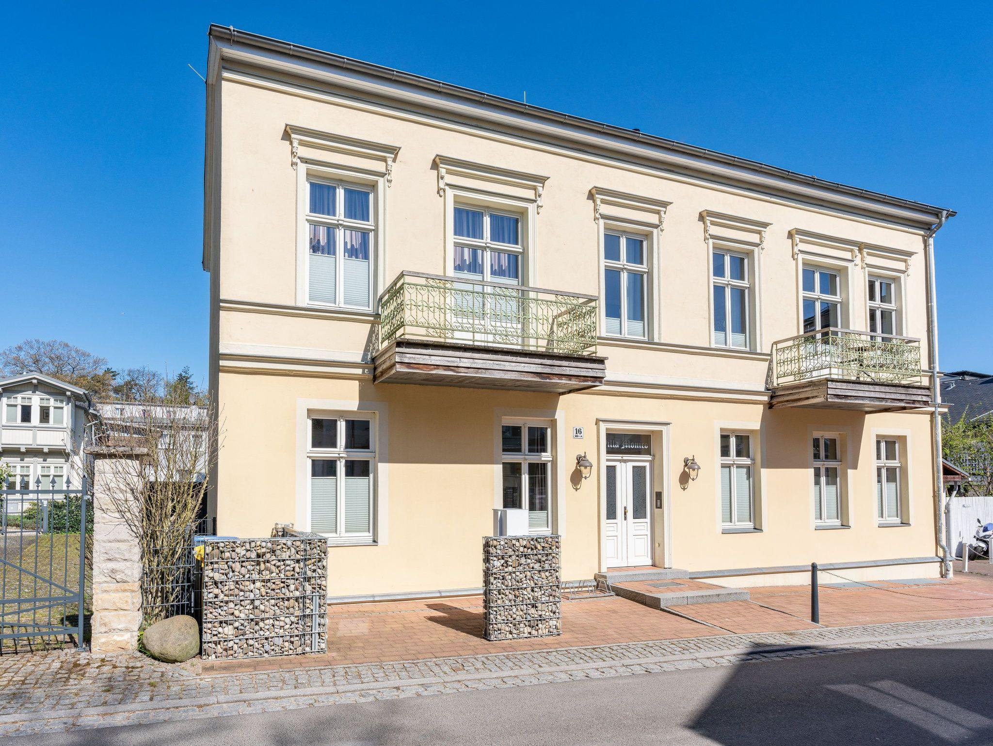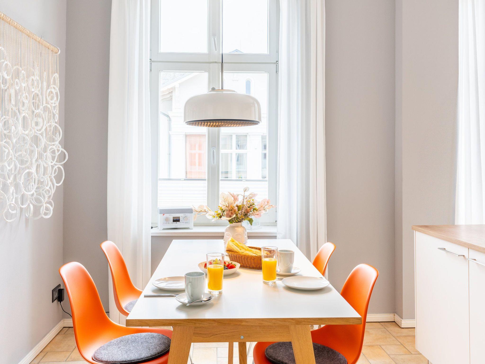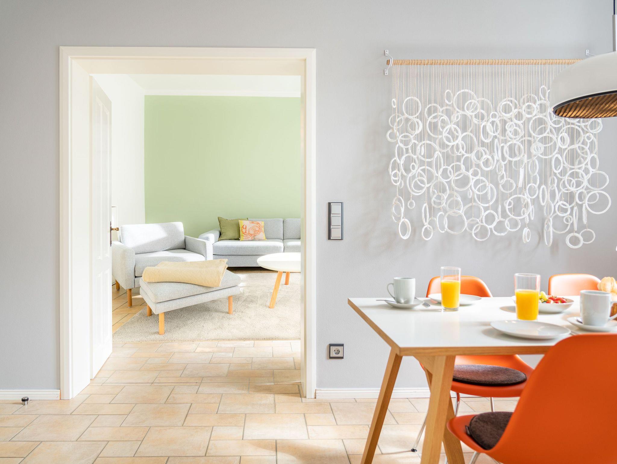 Im 1. OG der Villa Monico gelegen, hat sie einen schönen Süd-Ost-Balkon von welchem Sie aus schon morgens beim ersten Kaffee einen Blick auf die Ostsee werfen können. Bei der Renovierung ist Wert auf hochwertige Designmöbel sowie eine geschmackvolle Atmosphäre gelegt worden. Ideal zum Relaxen ist das geräumige und helle Wohnzimmer, welches Sie durch eine Doppelflügeltür betreten. Von der bequemen Sitzgruppe, oder dem Liegesessel aus haben Sie Blick auf den großen Flat TV (55 Zoll). Ein kostenloser Netflix-Zugang ist bereits enthalten und bietet somit auch an grauen Herbsttagen eine schöne Abwechslung.
