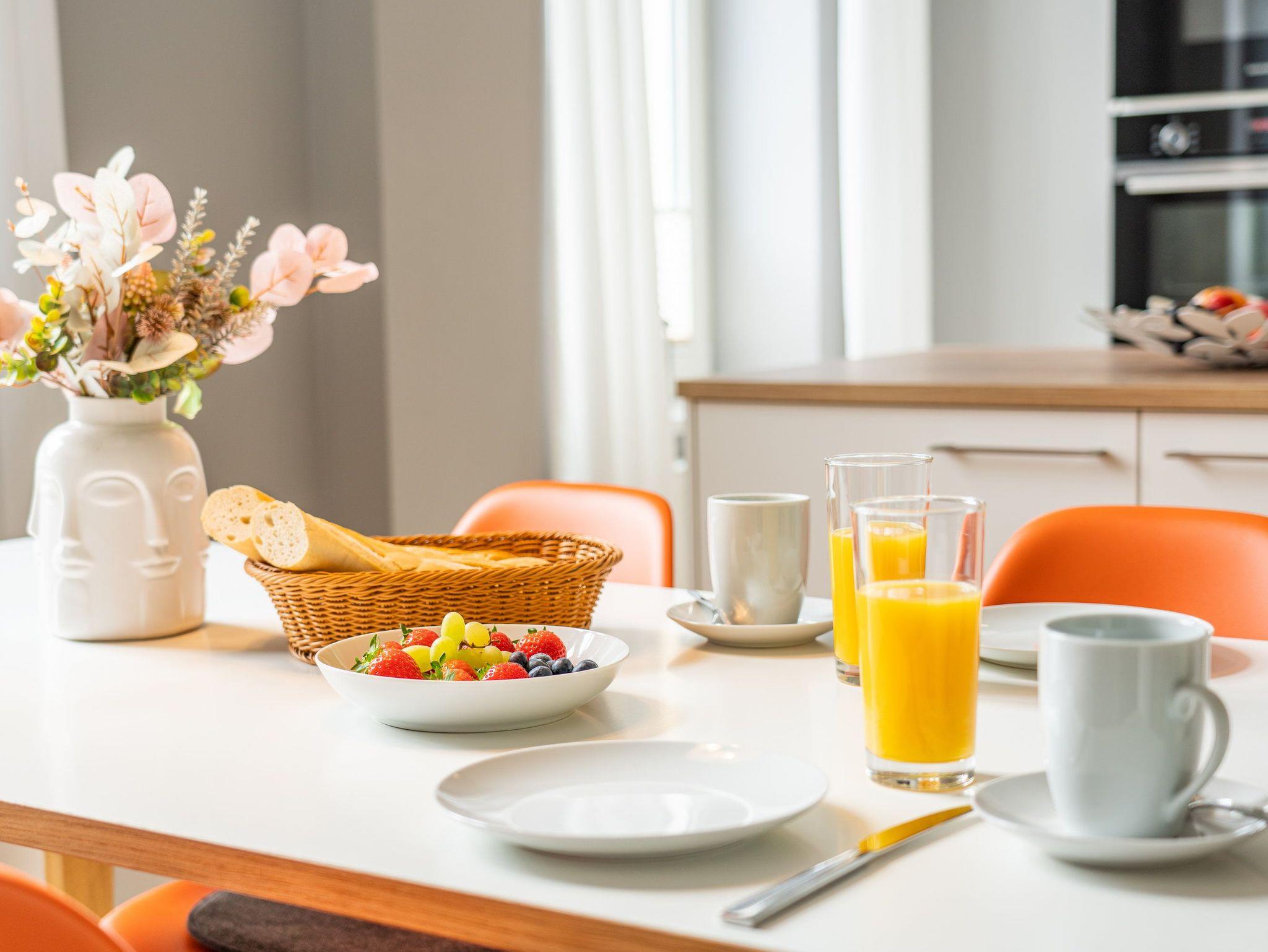 Zur Wohnung gehört außerdem ein Außenstellplatz. Das WLAN ist kostenfrei. Wenn Sie ankommen, sind die Betten bezogen und Handtücher liegen bereit. Diese schöne Altbauwohnung bietet eine Deckenhöhe von 3,50m. Vor der Villa befinden sich ausreichend Fahrradstellplätze.