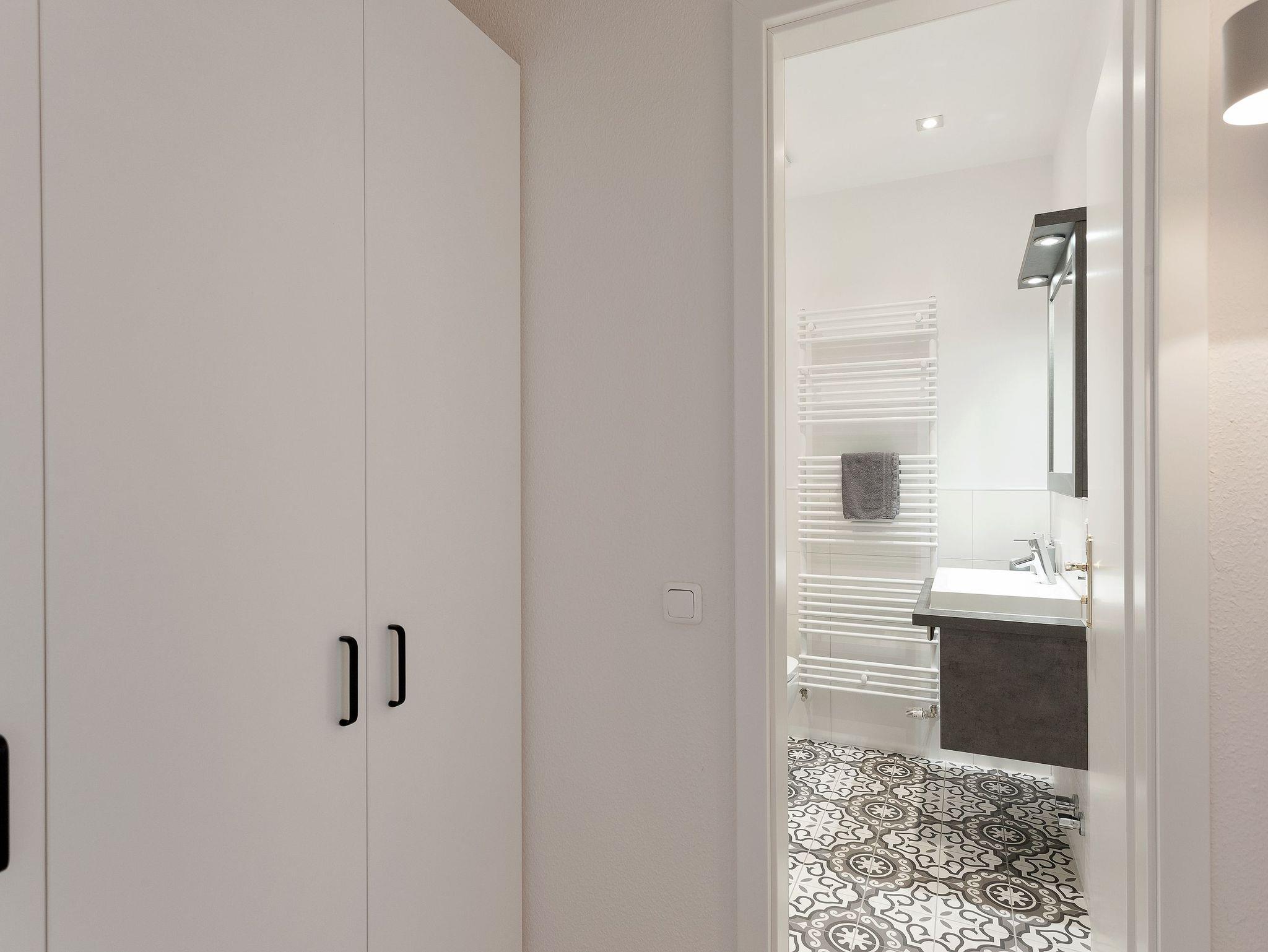 Das innenliegende Bad, ebenfalls frisch renoviert, verfügt über eine Dusche, WC, Waschbecken, Handtuchheizkörper und einen Haartrockner ideal, für einen guten Start in den Tag.