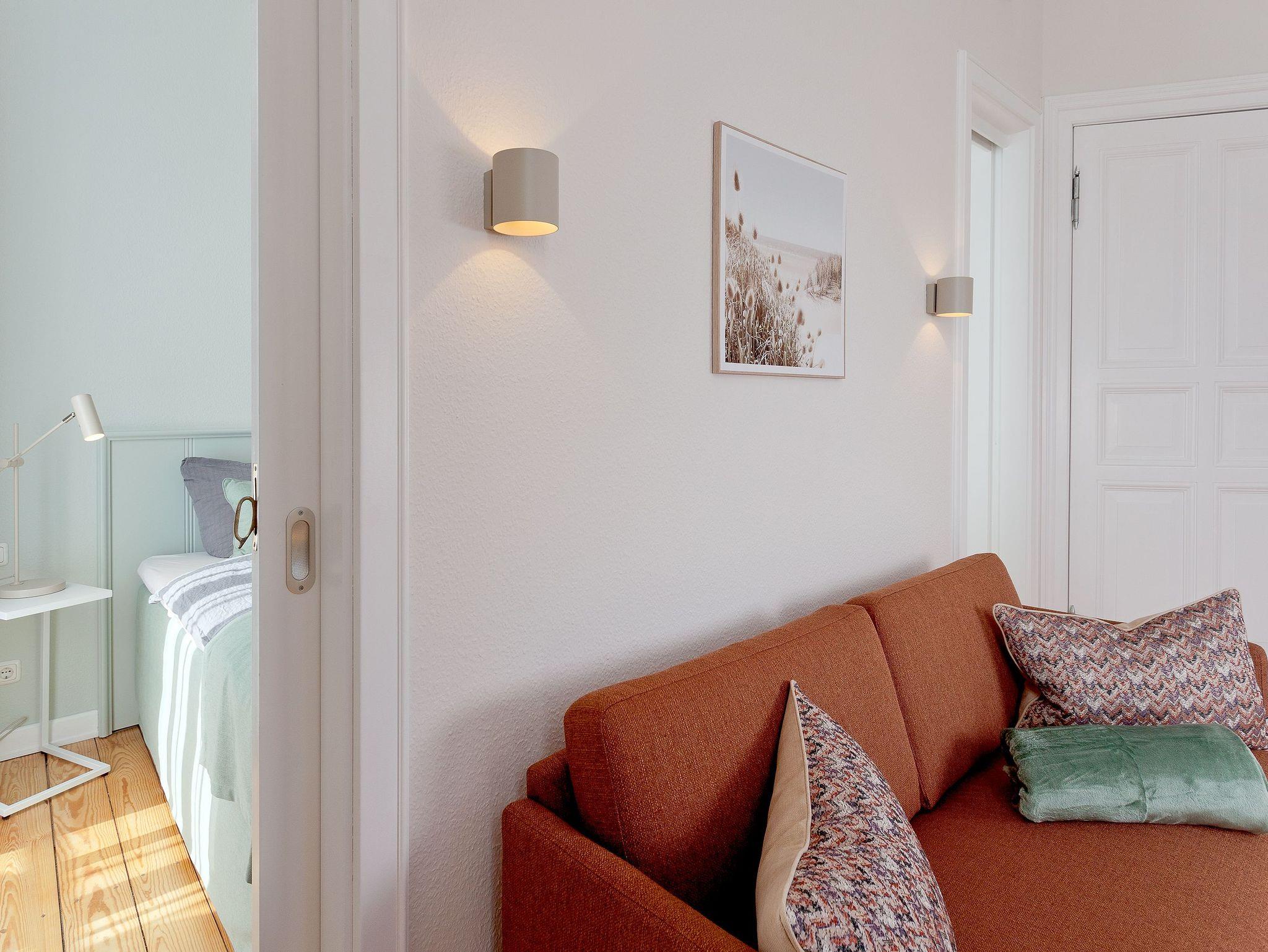 Nach einem gemeinsamen Dinner am Esstisch für zwei, können Sie den Abend auf dem neuen, gemütlichen Sofa ausklingen lassen, bevor Sie im separaten Schlafzimmer im komfortablen Boxspringbett (180 x 200 cm) eine erholsame Nacht verbringen. Ein Kleiderschrank bietet Ihnen genügend Stauraum für Ihre Garderobe.