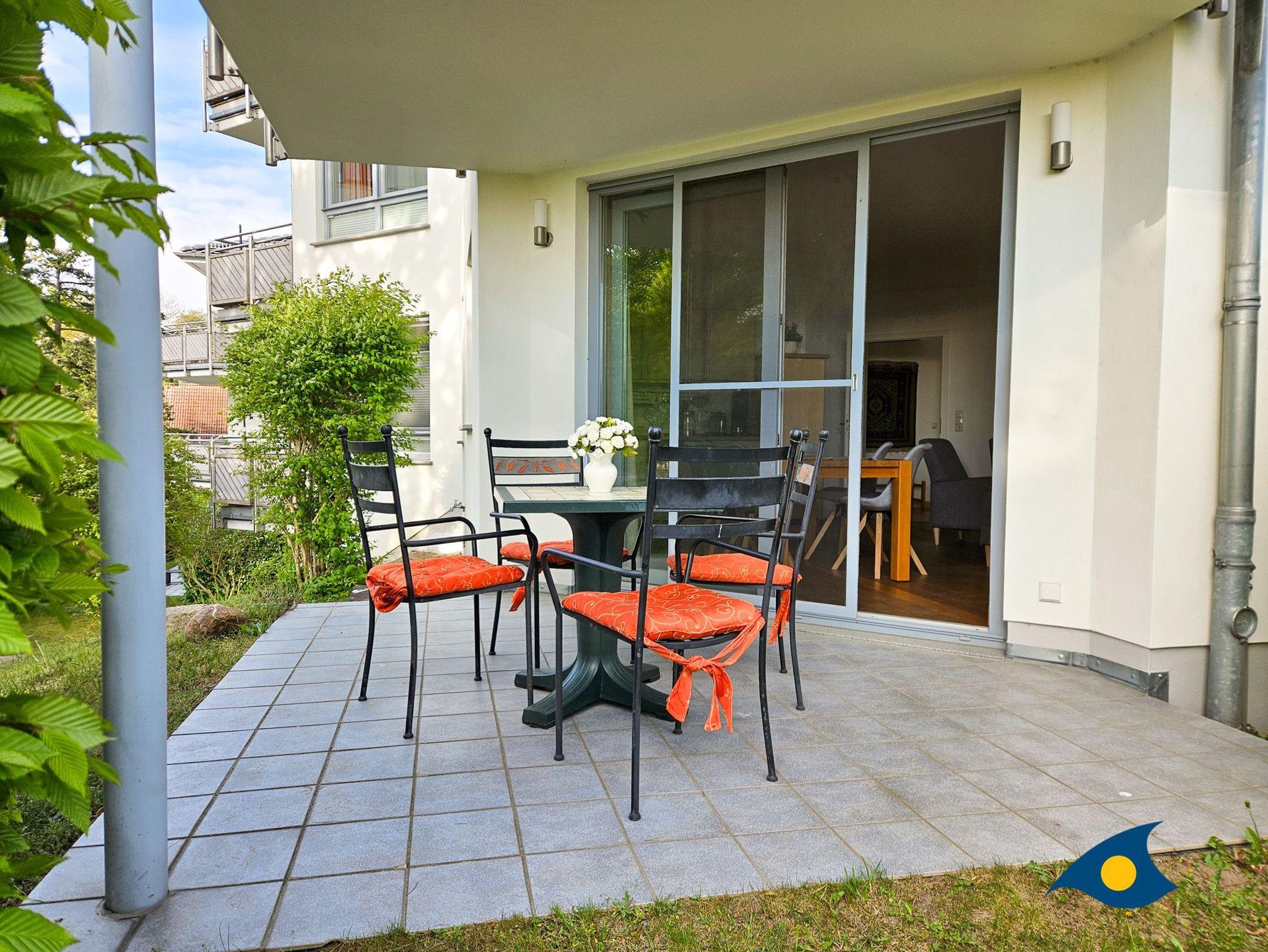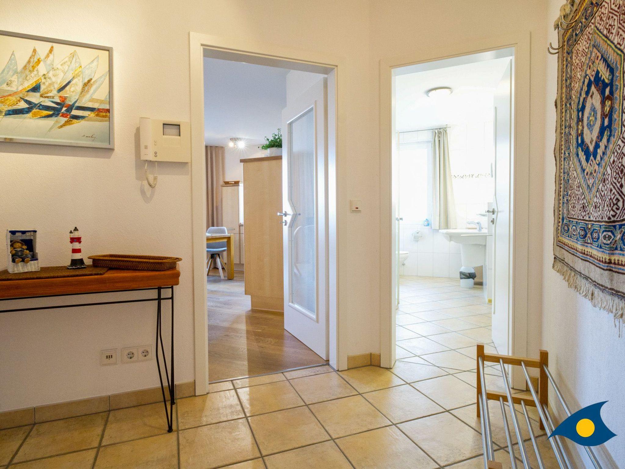 Die Wohnung befindet sich im 2009 erbauten Haus Meeresrauschen und liegt im 1. Obergeschoss, EBENERDIG zur Strandpromenade.