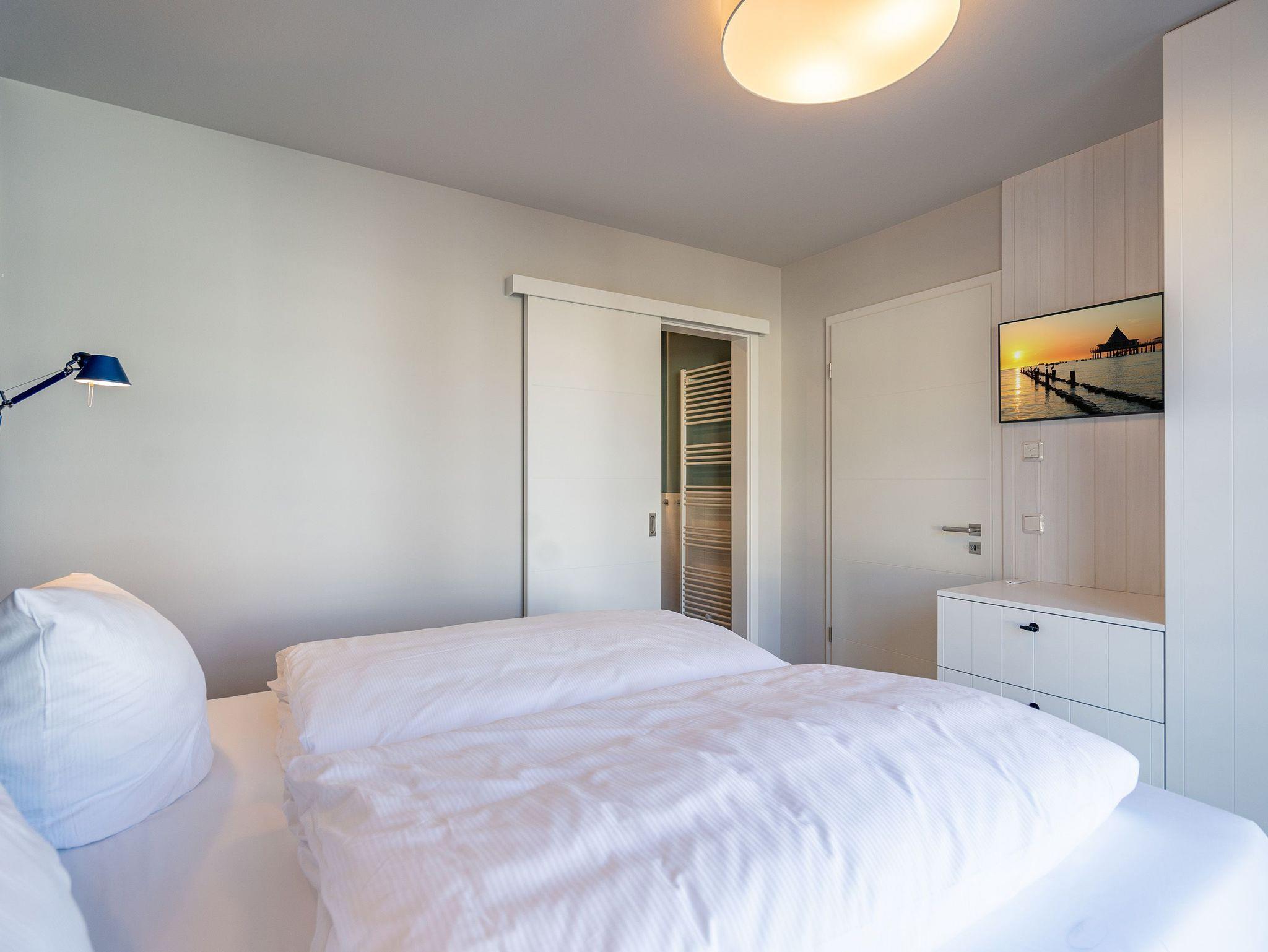 Herzlich willkommen in der exquisiten 3-Raum-Ferienwohnung Nr. 04 im Quartier am Strand! Diese großzügige und stilvolle 84 Quadratmeter Wohnung im 1. Obergeschoss bietet den idealen Rückzugsort für bis zu 4 Erwachsene und ein Kleinkind (in einem Kinderreisebett). Der offene Wohnbereich ist der perfekte Ort, um Ihre Urlaubstage zu genießen. Hier finden Sie eine gemütliche Sitzgruppe, einen Flachbildfernseher (43 Zoll) und einen einladenden Kaminofen. Ein Essplatz für 4 Personen lädt zu gemeinsamen Mahlzeiten und geselligen Abenden ein. Von hier aus gelangen Sie direkt auf den 9 Quadratmeter großen Süd-West-Balkon, auf dem Sie die Sonne und die frische Meeresbrise genießen können. Die voll ausgestattete Küchenzeile verfügt über moderne Annehmlichkeiten, darunter einen Induktionsherd und eine Mikrowelle, die Ihnen die Zubereitung von köstlichen Mahlzeiten erleichtern. Die Wohnung bietet zwei Schlafzimmer, von denen eines mit einem Boxspringdoppelbett (1,80m x 2,00m) ausgestattet ist und direkten Zugang zum innenliegenden Masterbad bietet. Hier finden Sie eine Dusche, einen Waschtisch und ein WC. Das zweite Schlafzimmer verfügt ebenfalls über ein komfortables Boxspringdoppelbett (1,80m x 2,00m), einen Flachbildfernseher und einen traumhaften Seeblick, der Ihre Morgen mit atemberaubenden Ausblicken bereichert. Zusätzlich zu dem Masterbad gibt es ein zweites Tageslichtbad mit Waschtisch, Dusche, WC, Waschmaschine und Trockner, um Ihren Aufenthalt so angenehm wie möglich zu gestalten. Für Ihre Entspannung sorgt die finnische Sauna für 2-3 Personen, in der Sie sich nach einem erlebnisreichen Tag erholen können. Genießen Sie den Ausblick Richtung Ostsee vom 2. Balkon (6 qm) aus und erleben Sie Momente der Ruhe und Entspannung. Ihr Fahrzeug findet einen sicheren Platz in der Tiefgarage, der auch eine optional buchbare E-Ladesäule beinhaltet. Zudem steht Ihnen ein wohnungseigener Fahrradkeller zur Verfügung. Wir laden Sie herzlich ein, Ihre Ferien in dieser traumhaften Ferienwohnung zu verbringen und die Schönheit der Umgebung zu erkunden. Buchen Sie jetzt und freuen Sie sich auf unvergessliche Tage im Quartier am Strand!