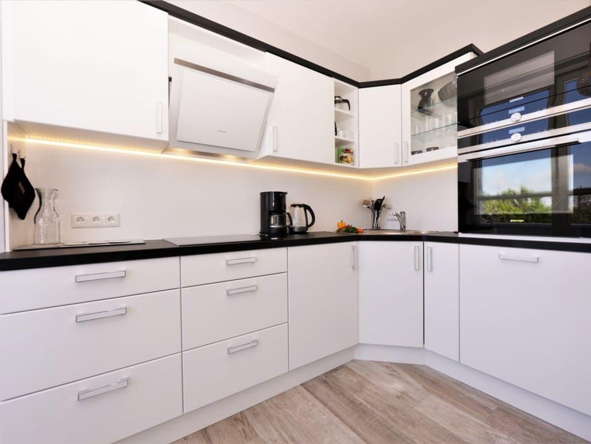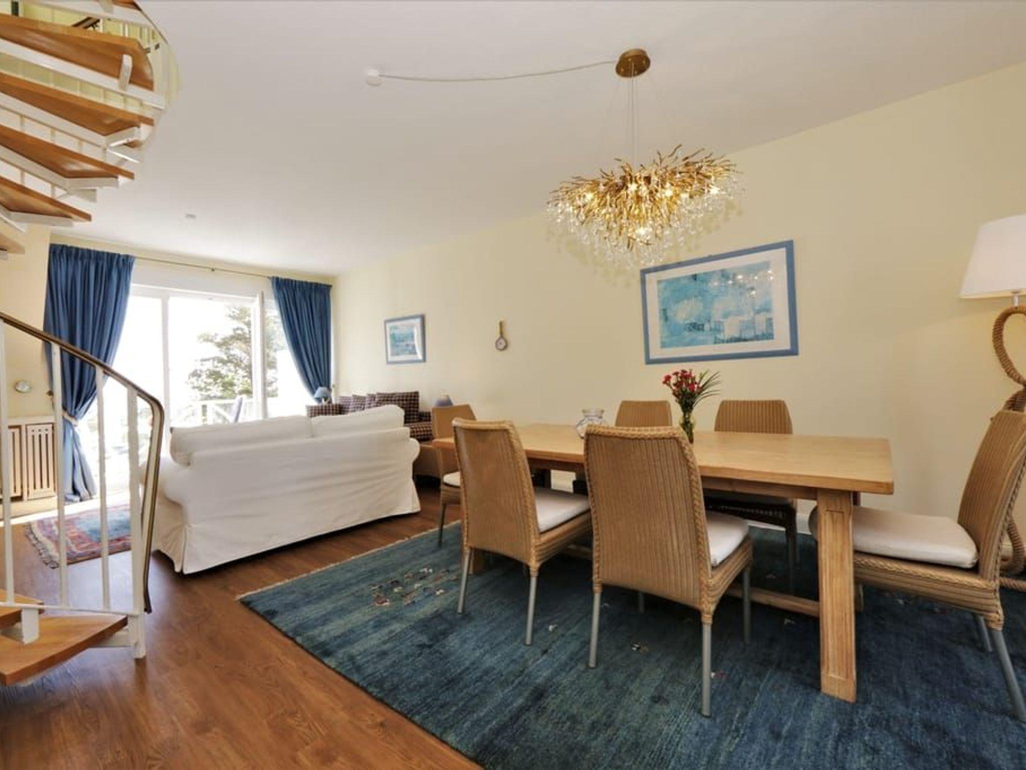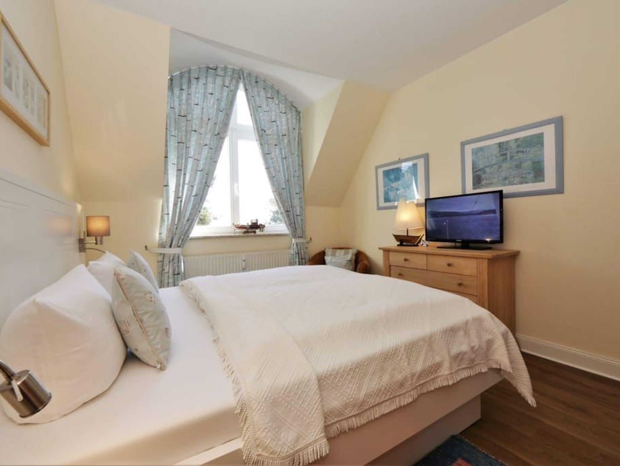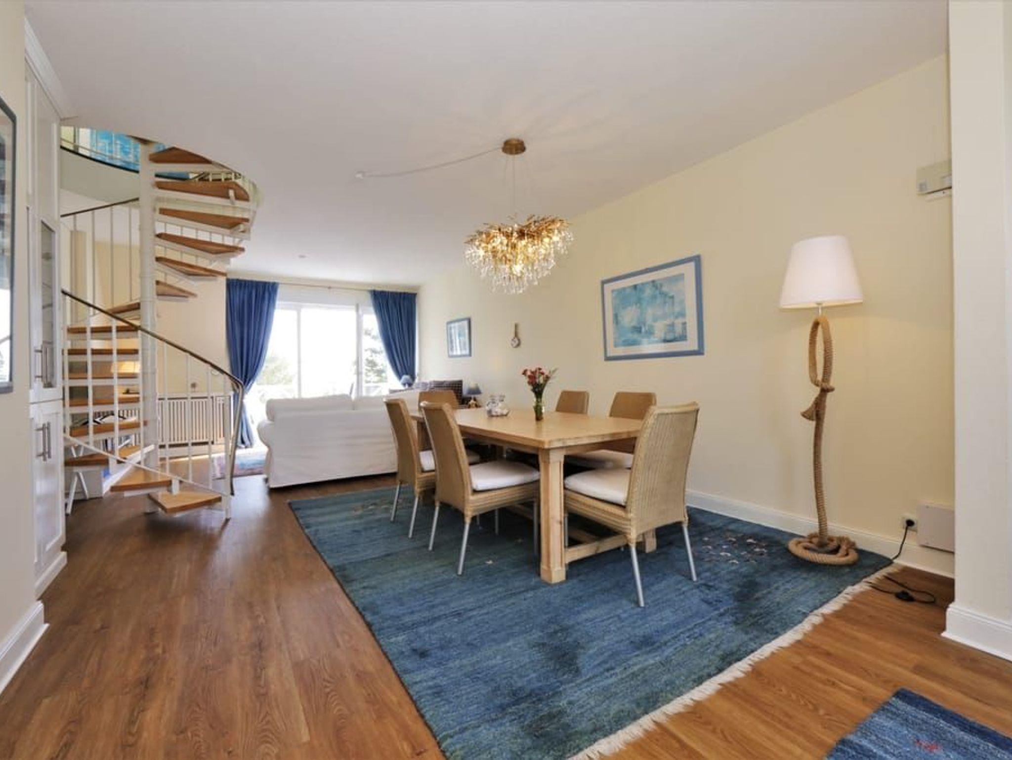 Ein Highlight dieser Wohnung sind die beiden Balkone. Der größere Balkon ist vom Wohnzimmer begehbar und bietet durch die Bäume auf der Düne hindurch einen Blick auf die Ostsee. Das großzügige Wohnzimmer verfügt über eine komfortable Sitzecke mit Flachbildfernseher sowie einen großen Esstisch. Die separate, vollausgestattete Küche ist mit Geschirrspüler, großem Kühlschrank mit Gefriermöglichkeit, Backofen, Mikrowelle und Waschmaschine (gg. Gebühr) ausgestattet. Von der Küche aus gelangt man auf den sonnigen Südbalkon zum Hof des Hauses.