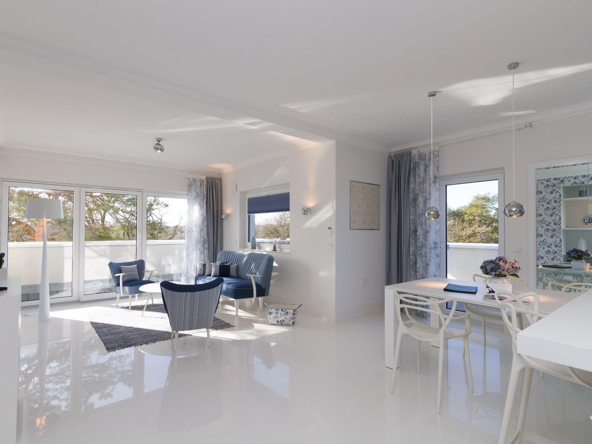 Ihr Appartement 19 im Dachgeschoss (2 Räume) der Dünenresidenz ist wirklich besonders! Die fantastische Lage im Haus beeindruckt hier ebenso, wie die Ausstattung. Denn es wurde sehr viel Liebe zum Detail investiert, um Ihnen ganz besonders schöne Tage auf Ihrer Lieblingsinsel zu bereiten. Und auch an viel Platz mangelt es im opulenten 2-Raum-Appartement nicht - 117 qm Wohlfühlatmosphäre (inkl. Dachterrasse) für 2 Personen, ein wahrer Urlaubstraum! Eintreten und Wohlfühlen - schon beim Tür öffnen, offeriert sich ein hell gestalteter Eingangsbereich. Die sich anschließende, offene Küche fügt sich stimmig in den großzügigen Wohn- und Essbereich ein, viele Fenster sorgen für eine lichtdurchflutete Wohlfühlatmosphäre. Komplett ausgestattet und mit vielen Extras (u.a. mit Induktionsherd [&] Dampfgarer) versehen, bietet sie Ihnen auch im Urlaub alle Annehmlichkeiten. Der Essplatz wird sicher schnell zu einem Ihrer Lieblingsplätze, hier lässt es sich wunderbar dinieren. Eine stylische Sitzgruppe lädt zum Relaxen ein. Feinstes Entertainment (Flat-TV, Blue-Ray-Player) versteht sich hier ebenso von selbst, wie einen per Fernbedienung jederzeit an- und ausschaltbarer Elektro-Kamin. Perfekte Rahmenbedingungen also. Ihr großzügiges Schlafzimmer mit komfortablen Doppelboxspringbett (1,60 m x 2,00 m) ist ein Traum in meerblau. Es bietet Ihnen einen schönen Ausblick auf Dünen und ein Wellnessbad En-Suite, ausgestattet mit Waschtisch, Dusche, WC, Bidet, sowie einer Dampfsauna mit Tageslicht (1,00 € pro Stunde)! Open Air verwöhnet Sie eine umlaufende Sonnenterrasse, von der man aus allen Zimmern Zugang hat. Für Ihren Komfort sind die Betten bei der Anreise bezogen und Handtücher liegen bereit. Ein PKW-Stellplatz in eigener Garage (Einfahrthöhe ca. 1,85 m) und die Wlan Nutzung ist im Preis einbegriffen.