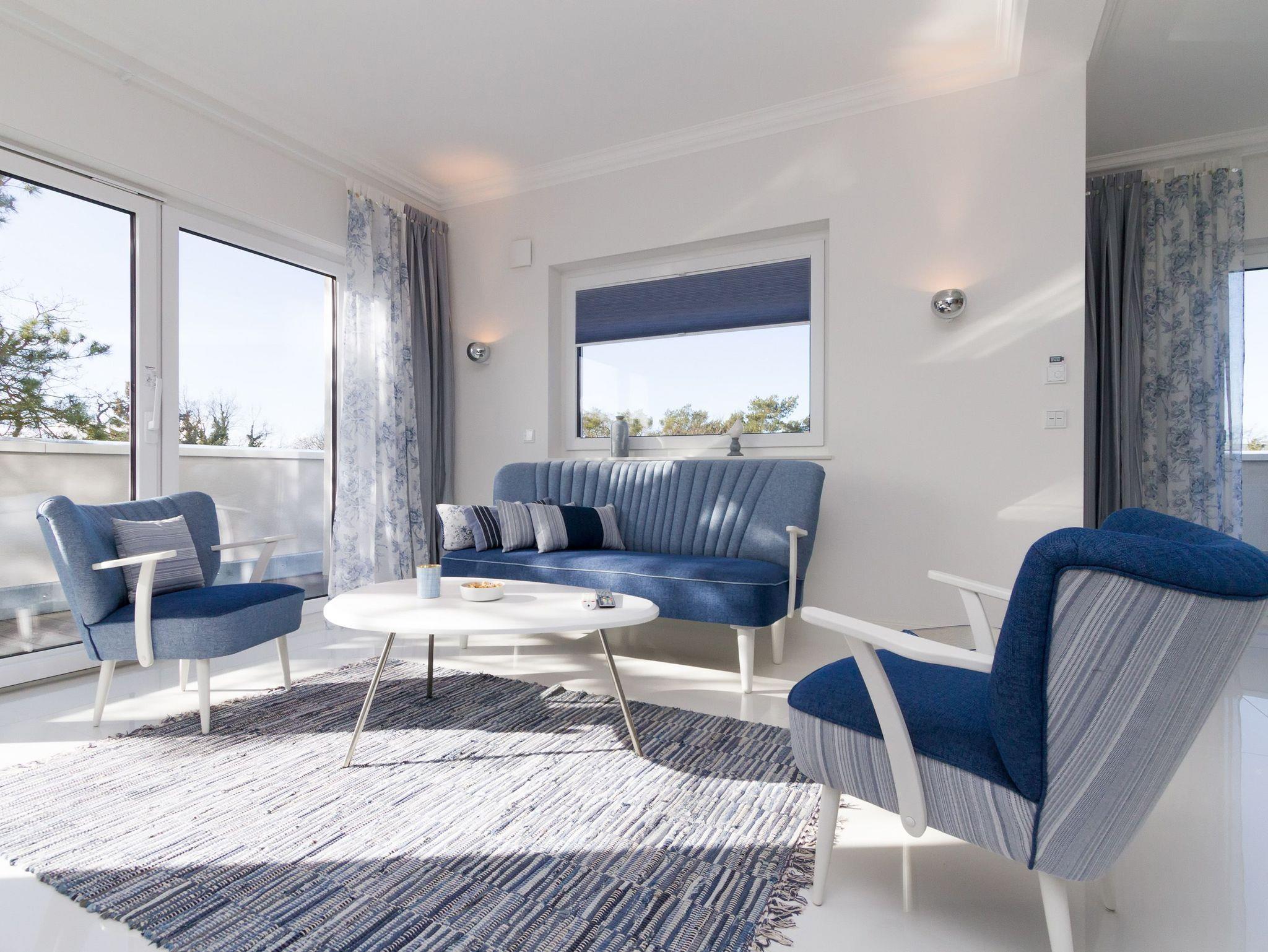 Ihr Appartement 19 im Dachgeschoss (2 Räume) der Dünenresidenz ist wirklich besonders! Die fantastische Lage im Haus beeindruckt hier ebenso, wie die Ausstattung. Denn es wurde sehr viel Liebe zum Detail investiert, um Ihnen ganz besonders schöne Tage auf Ihrer Lieblingsinsel zu bereiten. Und auch an viel Platz mangelt es im opulenten 2-Raum-Appartement nicht - 117 qm Wohlfühlatmosphäre (inkl. Dachterrasse) für 2 Personen, ein wahrer Urlaubstraum! Eintreten und Wohlfühlen - schon beim Tür öffnen, offeriert sich ein hell gestalteter Eingangsbereich. Die sich anschließende, offene Küche fügt sich stimmig in den großzügigen Wohn- und Essbereich ein, viele Fenster sorgen für eine lichtdurchflutete Wohlfühlatmosphäre. Komplett ausgestattet und mit vielen Extras (u.a. mit Induktionsherd [&] Dampfgarer) versehen, bietet sie Ihnen auch im Urlaub alle Annehmlichkeiten. Der Essplatz wird sicher schnell zu einem Ihrer Lieblingsplätze, hier lässt es sich wunderbar dinieren. Eine stylische Sitzgruppe lädt zum Relaxen ein. Feinstes Entertainment (Flat-TV, Blue-Ray-Player) versteht sich hier ebenso von selbst, wie einen per Fernbedienung jederzeit an- und ausschaltbarer Elektro-Kamin. Perfekte Rahmenbedingungen also. Ihr großzügiges Schlafzimmer mit komfortablen Doppelboxspringbett (1,60 m x 2,00 m) ist ein Traum in meerblau. Es bietet Ihnen einen schönen Ausblick auf Dünen und ein Wellnessbad En-Suite, ausgestattet mit Waschtisch, Dusche, WC, Bidet, sowie einer Dampfsauna mit Tageslicht (1,00 Euro pro Stunde)! Open Air verwöhnet Sie eine umlaufende Sonnenterrasse, von der man aus allen Zimmern Zugang hat. Für Ihren Komfort sind die Betten bei der Anreise bezogen und Handtücher liegen bereit. Ein PKW-Stellplatz in eigener Garage (Einfahrthöhe ca. 1,85 m) und die Wlan Nutzung ist im Preis einbegriffen.
