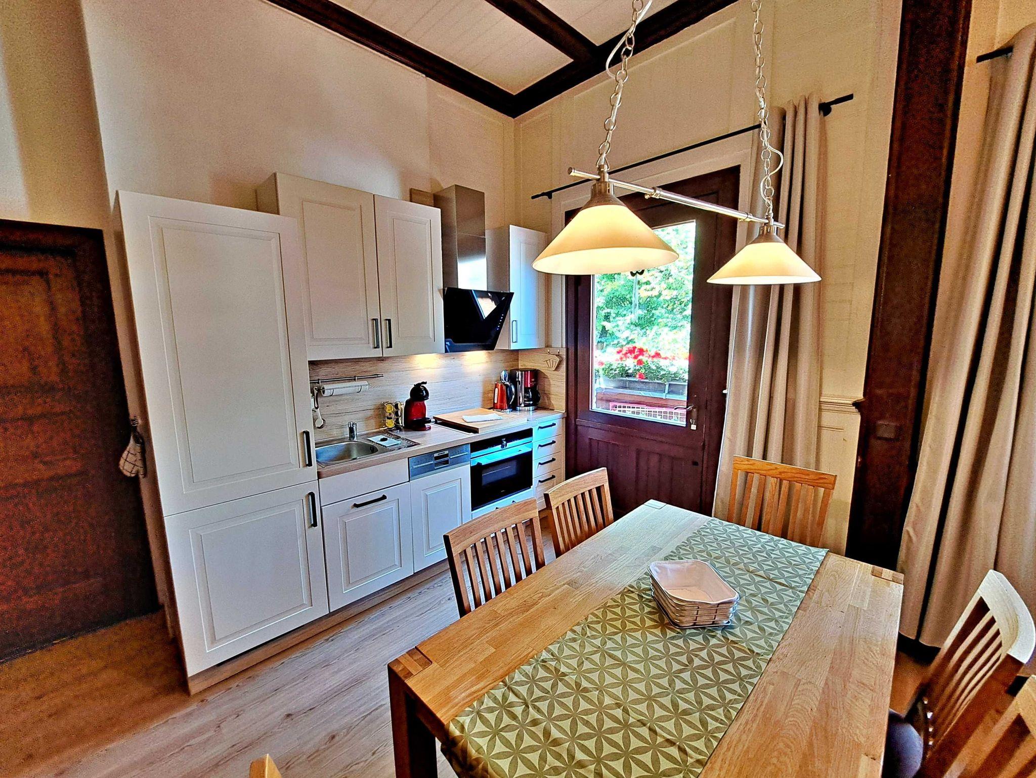 Herzlich willkommen in dieser komfortabel ausgestatteten 3-Raum-Ferienwohnung im 2. Obergeschoss! Hier erwartet Sie ein einladender Wohnbereich mit einer gemütlichen Sitzgarnitur, die sich auch wunderbar als Schlafcouch nutzen lässt. Die Wohnung bietet Ihnen zwei Schlafzimmer - eines mit einem bequemen Doppelbett und das andere mit zwei Einzelbetten - ideal für Familien oder Freunde. Die Küchenzeile ist bestens ausgestattet und lässt keine Wünsche offen: Sie finden hier einen Herd mit Vierer-Kochfeld, Spülmaschine, einen kombinierten Backofen mit Mikrowellenfunktion, Kaffemaschine, Wasserkocher, Toaster sowie einen Kühlschrank mit Tiefkühlgelegenheit. Das Tageslicht-Bad mit Dusche und WC sorgt für zusätzlichen Komfort. Genießen Sie den herrlichen Ausblick auf den Park von unserem angrenzenden Süd-Westbalkon - der perfekte Ort, um die Seele baumeln zu lassen oder den Tag bei einem gesunden Frühstück zu starten. Für Ihr Fahrzeug steht ein Pkw-Stellplatz auf dem umzäunten Grundstück zur Verfügung. Zusätzlich können Sie gegen Entgelt eine Waschmaschine sowie einen Wäschetrockner im Objekt nutzen. WLAN-Zugang ist für ein Gerät kostenfrei, für jedes weitere Gerät werden 10 € pro Woche berechnet.