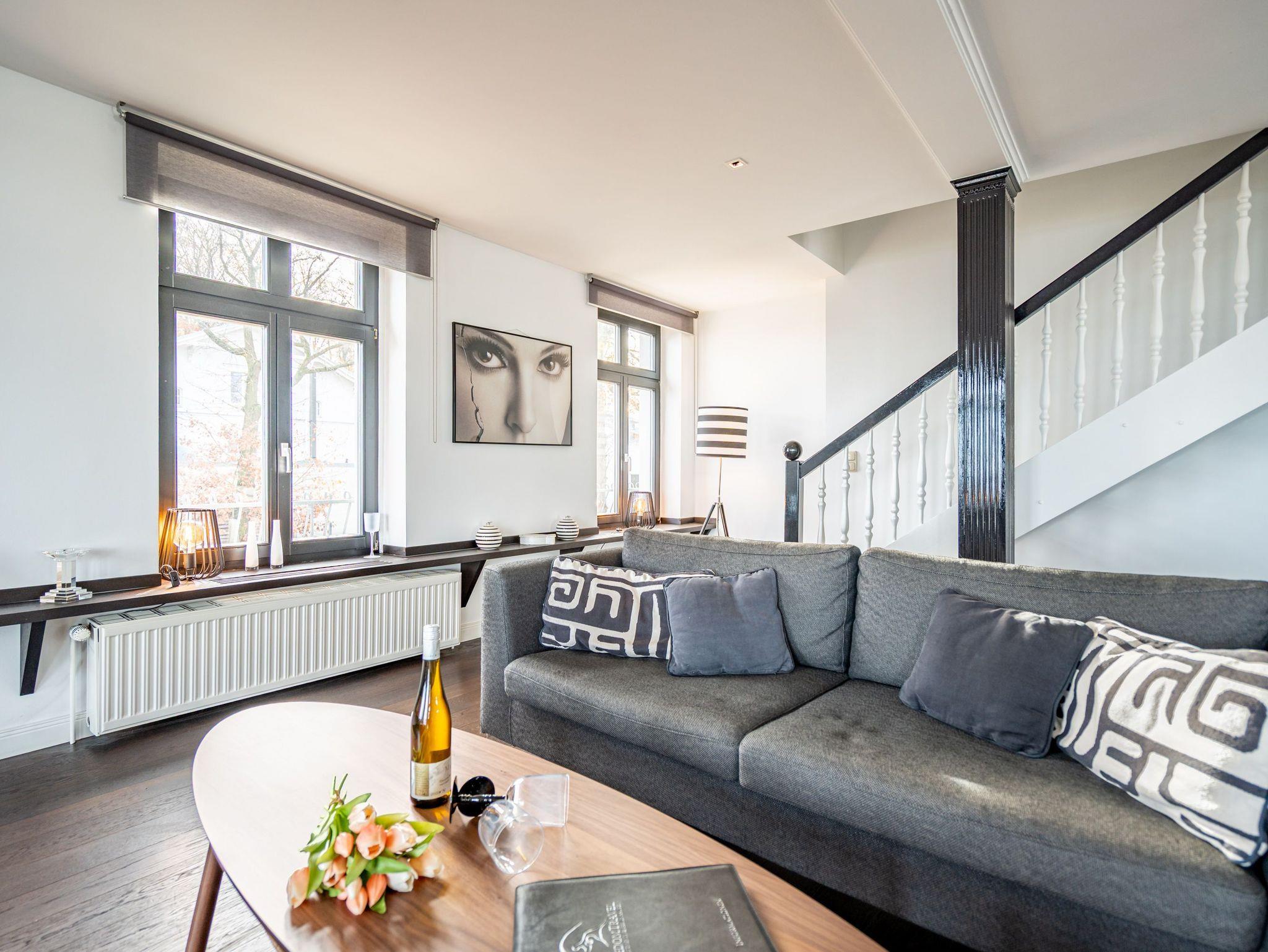 Stilvolle Maisonette-Ferienwohnung mit Meerblick und Sauna in Heringsdorf.