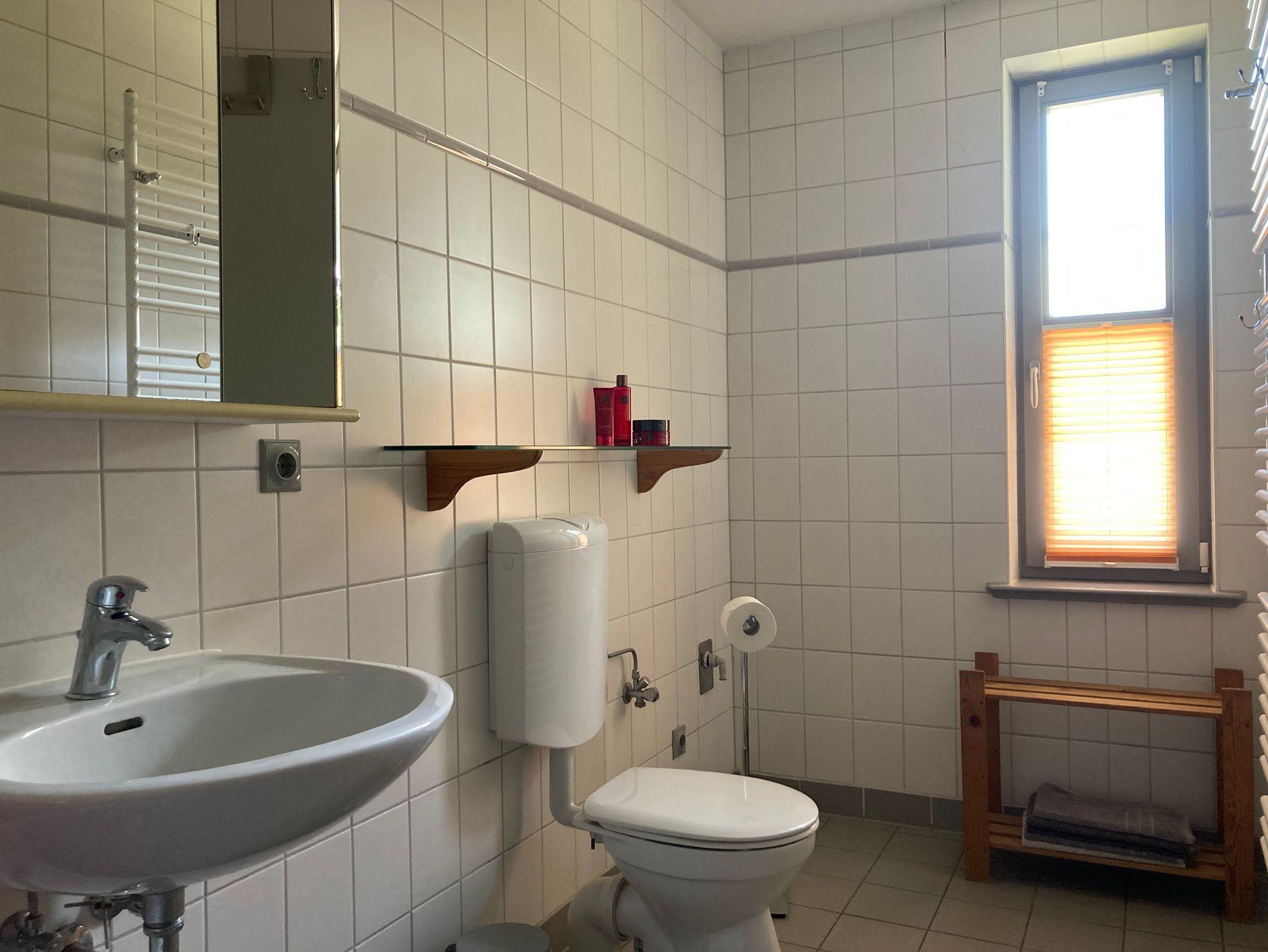 Die Anordnung der Räume wurde durch den Vermieter so konzipiert, dass die Gäste im Sz. durch die Küche auf den Flur ins Bad gelangen und die Gäste aus dem Wz. auch über den Flur ins Bad. Jeder ist dann für sich und wird nicht gestört:):) Dies ist es ja gerade, warum sich unser FH auch so gut vermietet.