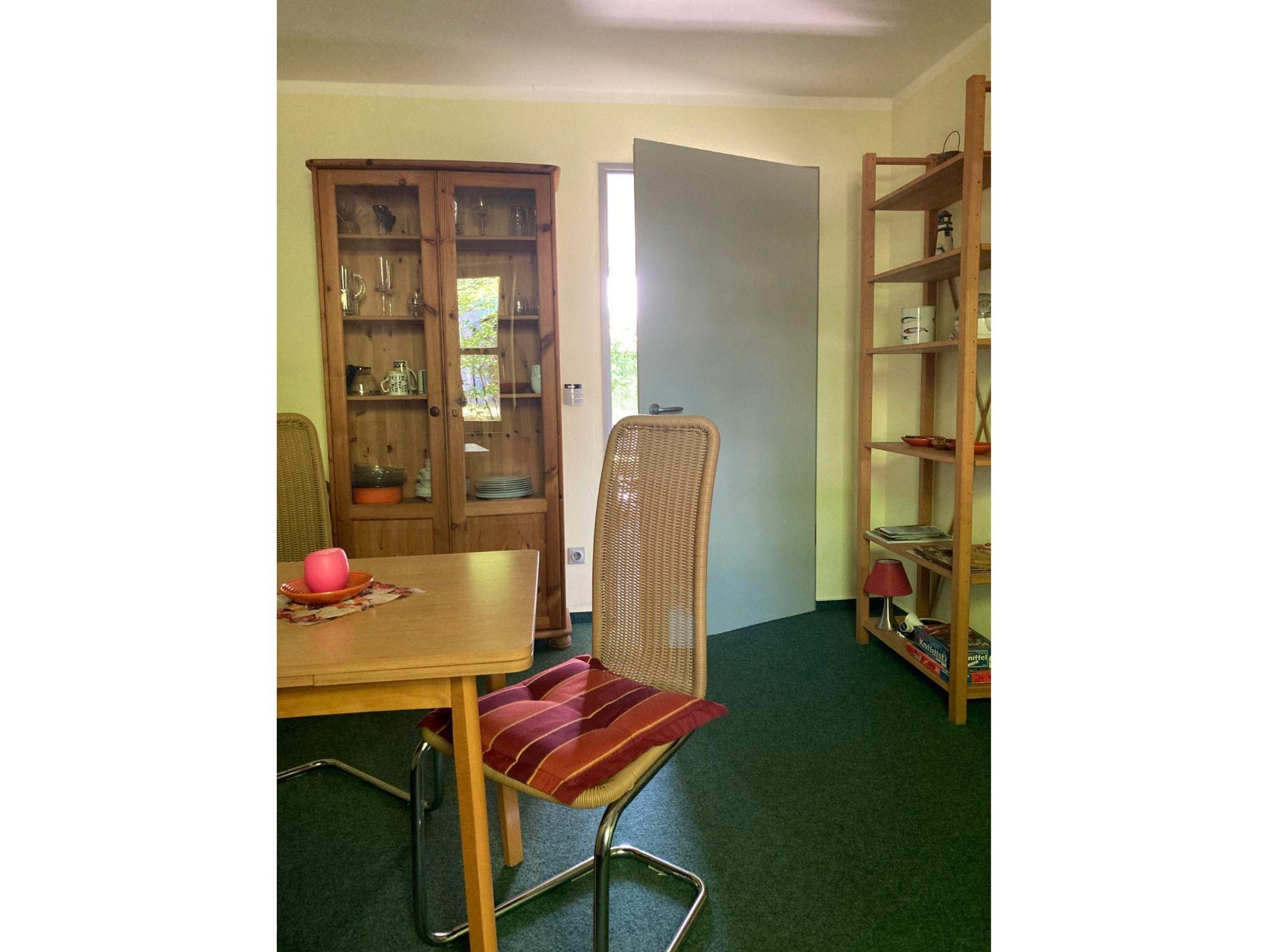 Unser solides, massive Ferienhaus mit 5 Räumen-davon 2 Zi.zum Schlafen, jeweils 16m² groß, (1xSz. für 2Pers.+1xkomb.Wz.mit ausklappbarer Schlafcouch 1,60x2,00m auch für 2 Pers.) wahlweise mit 1Metalllklappliege für 1 Pers.(0,80x1,90m) erweiterbar, wurde massiv errichtet im Jahr 2000 mit guten Wohneigenschaften,wie Behaglichkeit in kalten und warmen Zeiten des Jahres:) Als 2. Sz. ist der Vollständigkeit und der Notwendigkeit auch das Wz. mit der Schlafcouch angegeben- ansonsten hätten Sie uns nicht so leicht gefunden im Buchungssystem, da die Kombination von Wz. mit Schlafcouch nicht anzeigbar ist und somit hätte dann unser Ferienhaus nur 1Sz (auf dem 1. entscheidenden Blick)., was für Familien oft nicht so vorteilhaft und gewünscht wäre ! Auch Senioren schlafen ja auch oft getrennt...und diesem Umstand wird hiermit dann auch entsprochen. Keiner stört den anderen, da beide Räume einen separaten Zugang zum Bad haben. Das Sz. über die Kü. und vom kombinierten Wz./Sz. gehen Sie dann direkt auf den Flur ins Bad:) Ich bitte dies bei Ihrer Buchung zu beachten- es hat sich alles über die Jahre gut bewährt:):) Unser Ferienhaus fügt sich gut in die Naturlandschaft des Grundstückes ein. Das Ferienhaus besitzt 56m² reine Wohnfläche mit 5Räumen (Flur 6,0m², Wz.16,0,Sz.16,0, Kü.12,0,Bad 6,0) und bietet 5 Personen Platz..Vom Wz gehen Sie direkt auf die 16m² große Terrasse, welche dann vor dem schönen Mischwald liegt . Ihr Parkplatz ist unmittelbar auf dem Grundstück. Es ist alles sehr privat und ruhig, eben ein Urlaubsplatz zum Ausruhen und Entspannen. Unser Grundstück zeichnet sich durch das Naturverbundene aus- der unmittelbar angrenzende Mischwald vor der Terrasse kann offen begangen werden. Sie sind die einzigen Urlauber auf unserem Grundstück! Nur die angrenzende Kleintierrpraxis in der historischen Delbrückstr. der Vermieterin ist ebenfalls hier auf unserem Grundstück angesiedelt.Das 2.kleine FH, welches durch das Fenster im Wz. etwas zu erkennen ist, ist noch nicht fertiggestellt.Also: 'Kevin allein zu Haus' :)