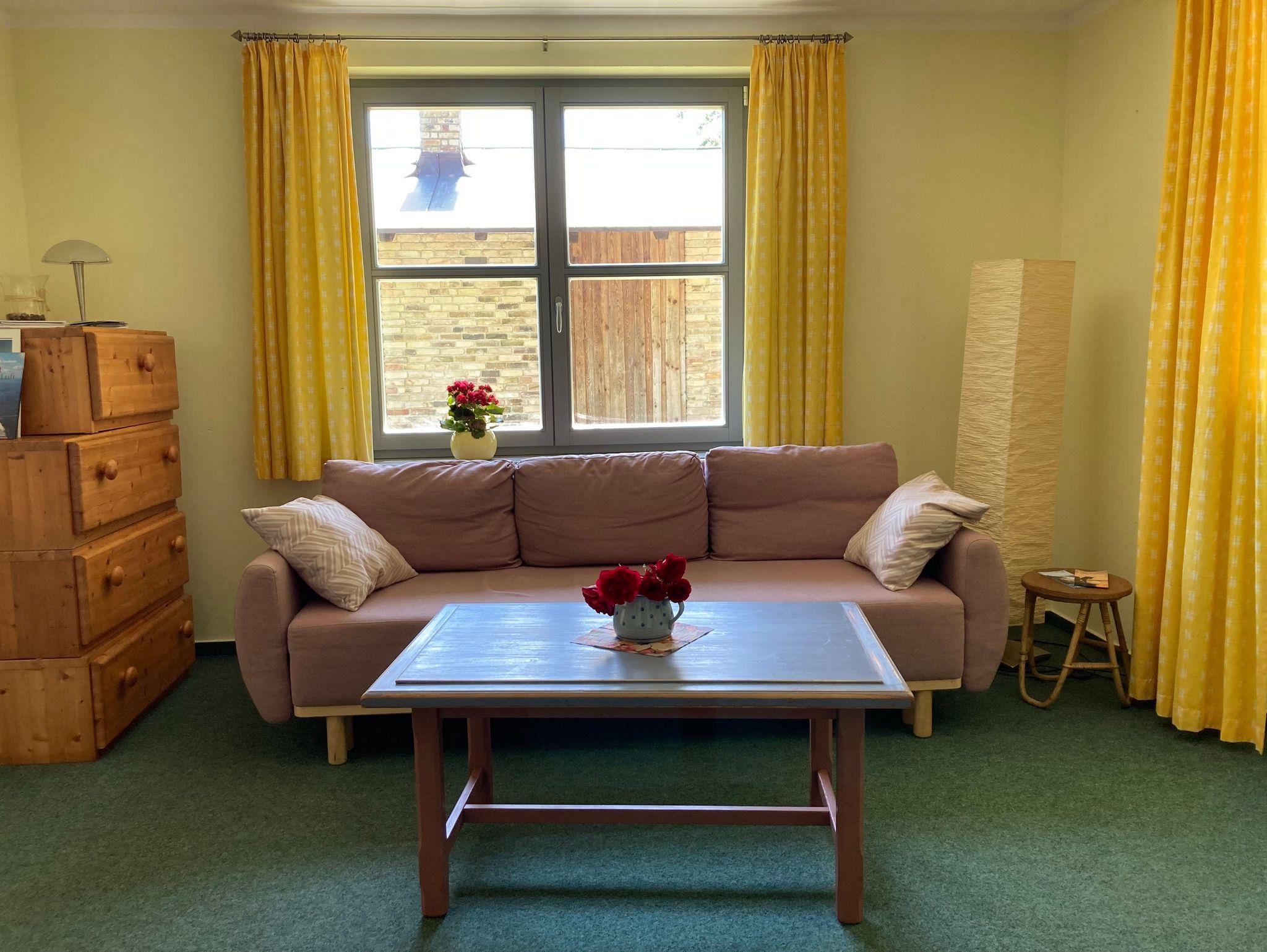 Guten Tag und herzlich Willkommen- ausspannen, abschalten und RUHE finden-dann sind Sie bei uns richtig in der historischen Delbrückstraße. Wohnen zur ebenen Erde auf einem Naturgrundstück-um dann in 3 Minuten am Ostseestrand zu sein und auf der schönen Promenade zu flanieren.Wir bieten nur dieses eine Ferienhaus z.Zt. auf unserem Grundstück mit dieser einen Ferienwohnung an-der andere Teil des Gebäudes ist eine kleine Tierarztpraxis der Vermieterin. Es bietet Platz für 5 Personen-auf 56m² Wohnfläche. Der schöne Mischwald am Grundstück versprüht zu allen Jahreszeiten seine Reize.Zwischen Ferienhausgiebel und dem Wald liegt idyllisch die Terrasse. Die Haushälfte(56m² Wohnfläche + 16m² Terrasse) liegt sehr ruhig -so stellt man sich Urlaub vor! Das FH enthält folgende Räume: 1Sz 16m² mit großem Doppelbett(2x2.1m) gr.2 tür. Kleiderschrank,Sidebord mit Schubfächer, hier ist auch der Platz für eine Metallklappliege 90x2,00m als Kinderaufbettung , 1 Wz 16m² mit Schlafsofa für 2 Personen 1,50x2.00m,kl.Tisch ,Sessel und Flachbildfernseher, ( die eine Metallklappliege für das Sz. als zusätzliche Kinderaufbettung kann auch hier im Wz. Platz finden und auch ein Erwachsener liegt hier gut drauf) 1 Küchenwohnraum 12m² mit Miniküche mit Kühlschrank und 17l Frostfach und Spüler daneben +Eßtisch -ausziehbar- mit 5 Schwingern+ Vitrine für ausreichend Geschirr u.Gläser+2 Hochregale für notwendiges Zubehör,wie:Kaffeemaschine,Toaster,Wasserkocher und Eierkocher, solider Kleinbackofen mit Grillfunktion (Rommelsbacher BG 1805/E, eine andere Eingabe als 'Backofen' war im Buchungssystem nicht möglich!) ; 1 Flur 6m² mit Garderobe; 1Bad 6m² mit Dusche 90x90 Eckeinstieg und Lüftungsfenster. Unser FH ist eingebettet in eine natürliche Umgebung mit niedriger Wohnbebaung (keiner guckt auf die Terrasse) und liegt ca. 40m ab von der Straße- so wird Ihr Urlaub zum Erlebnis.