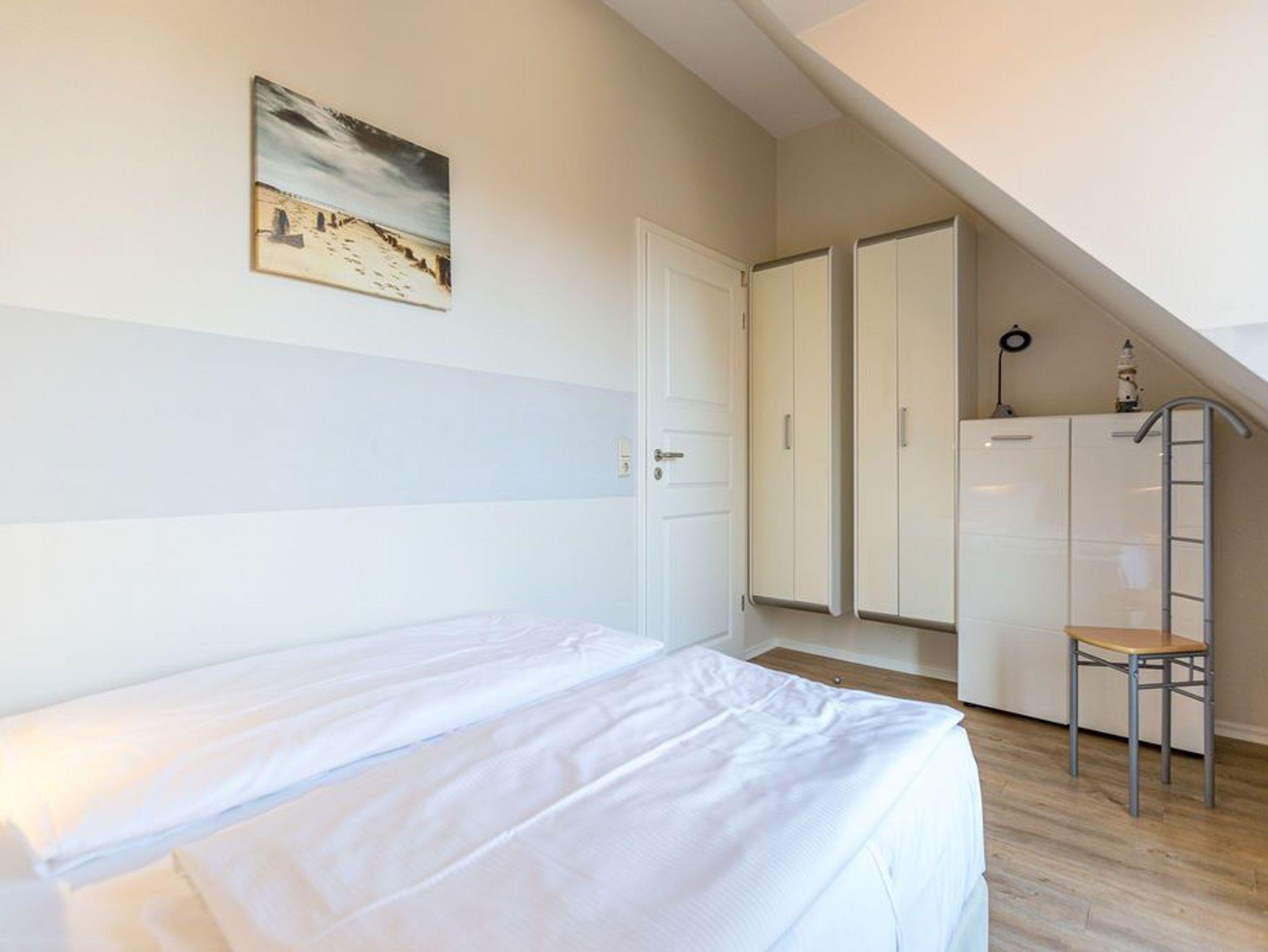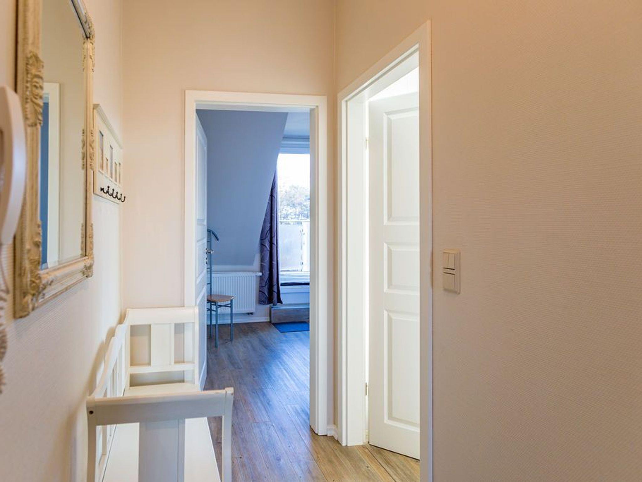 Modern. Lichtdurchflutet. Stilsicher - so empfängt Sie die Ferienwohnung (57qm) im Obergeschoss des Hauses für 2 Personen und ein Kleinkind (bis 3 Jahre). Sie fahren mit dem Fahrstuhl direkt in Ihre Wohnung. Hier ankommen erreichen Sie den Wohnbereich mit offener Küche und Kaminofen. Ein Schlafzimmer mit Boxspringdoppelbett (1,60m x 2,00m) und eigenem, großzügigen Balkon und ein Bad mit Dusche und WC befindet sich auf der gleichen Etage. Direkt unter dem Dach befindet sich eine Kuschelecke mit TV, die über eine kleine (aber steile) Treppe zu erreichen ist. Ein zweiter Balkon zur Südseite mit Blick ins Grüne lädt besonders in den Nachmittagsstunden zum Entspannen ein. Der Kaminofen verspricht besonders in der kalten Jahreszeit angenehme Stunden. Auf Wunsch stellen wir für unsere kleinen Gäste ein Kinderreisebett (ohne zusätzliche Matratze [&] Bettzeug) und einen Kinderhochstuhl ( gegen einen Aufpreis) zur Verfügung.