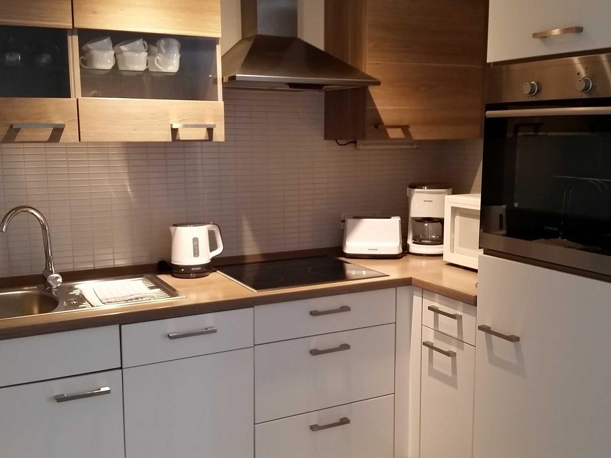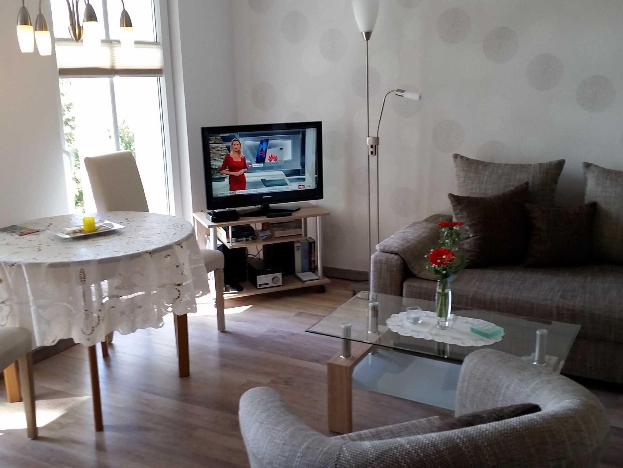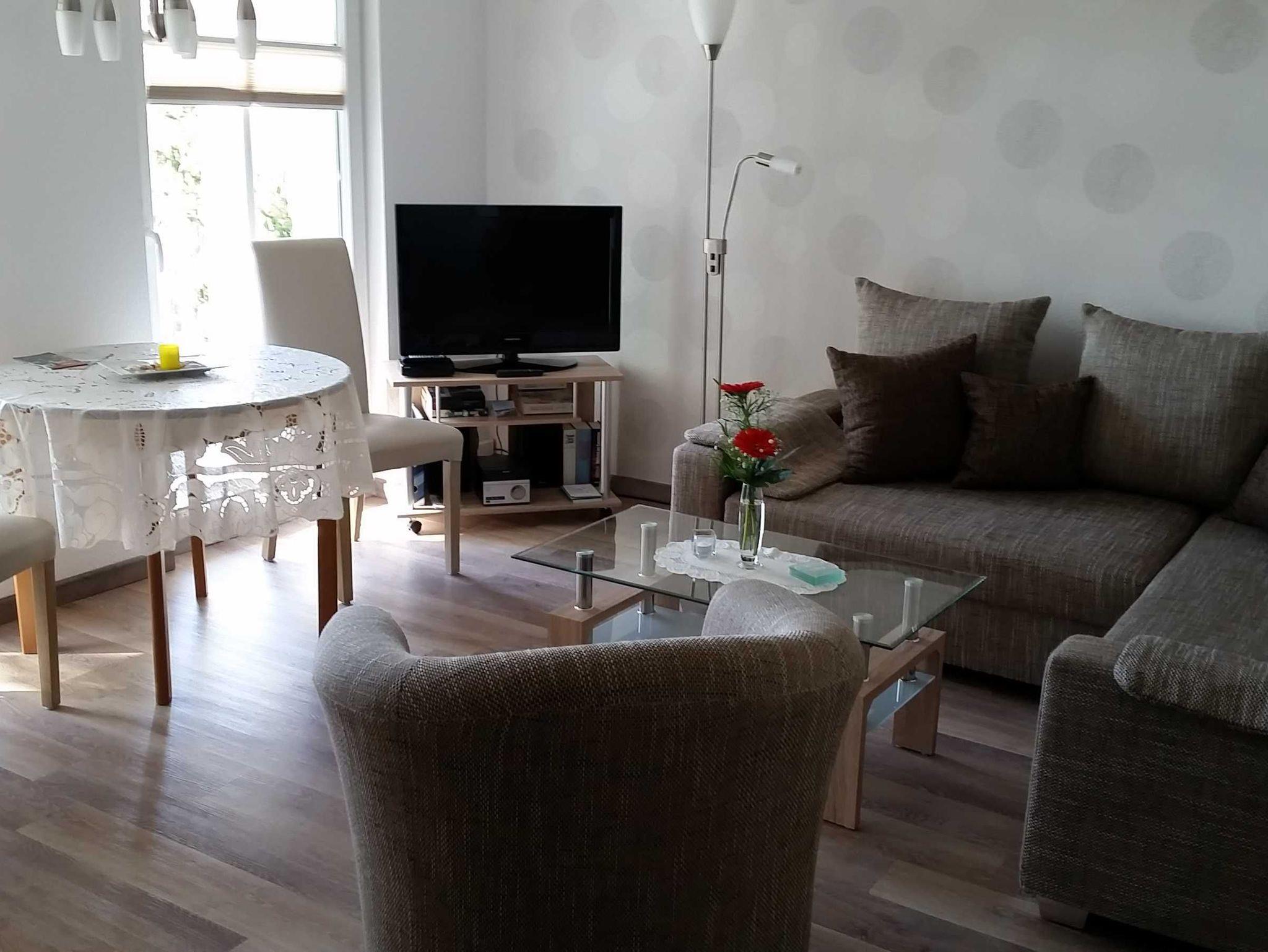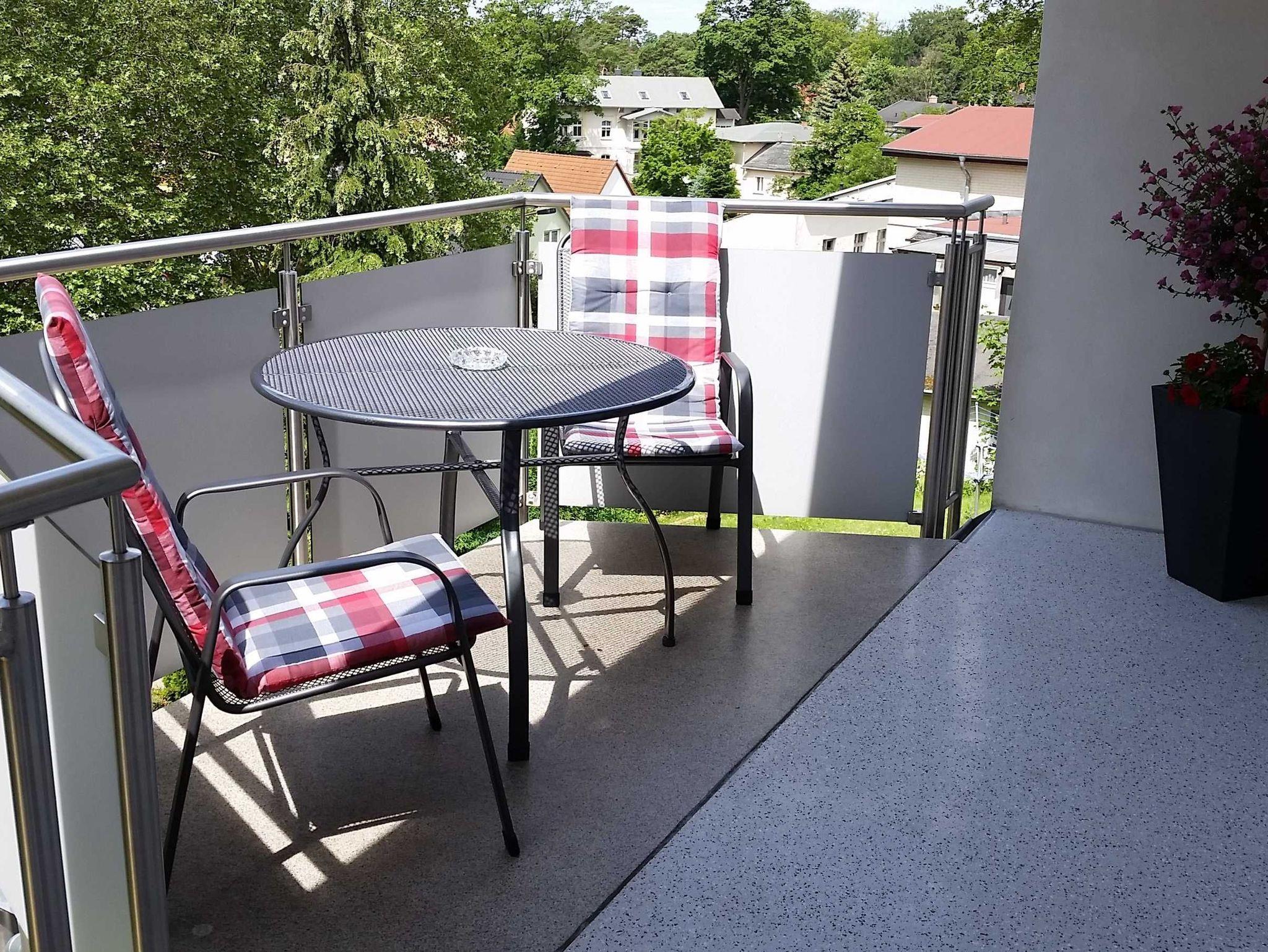 Moderne 2-Zimmer-Ferienwohnung mit Balkon, nahe Sandstrand und Zentrum in ruhiger Lage bei alten Buchen.