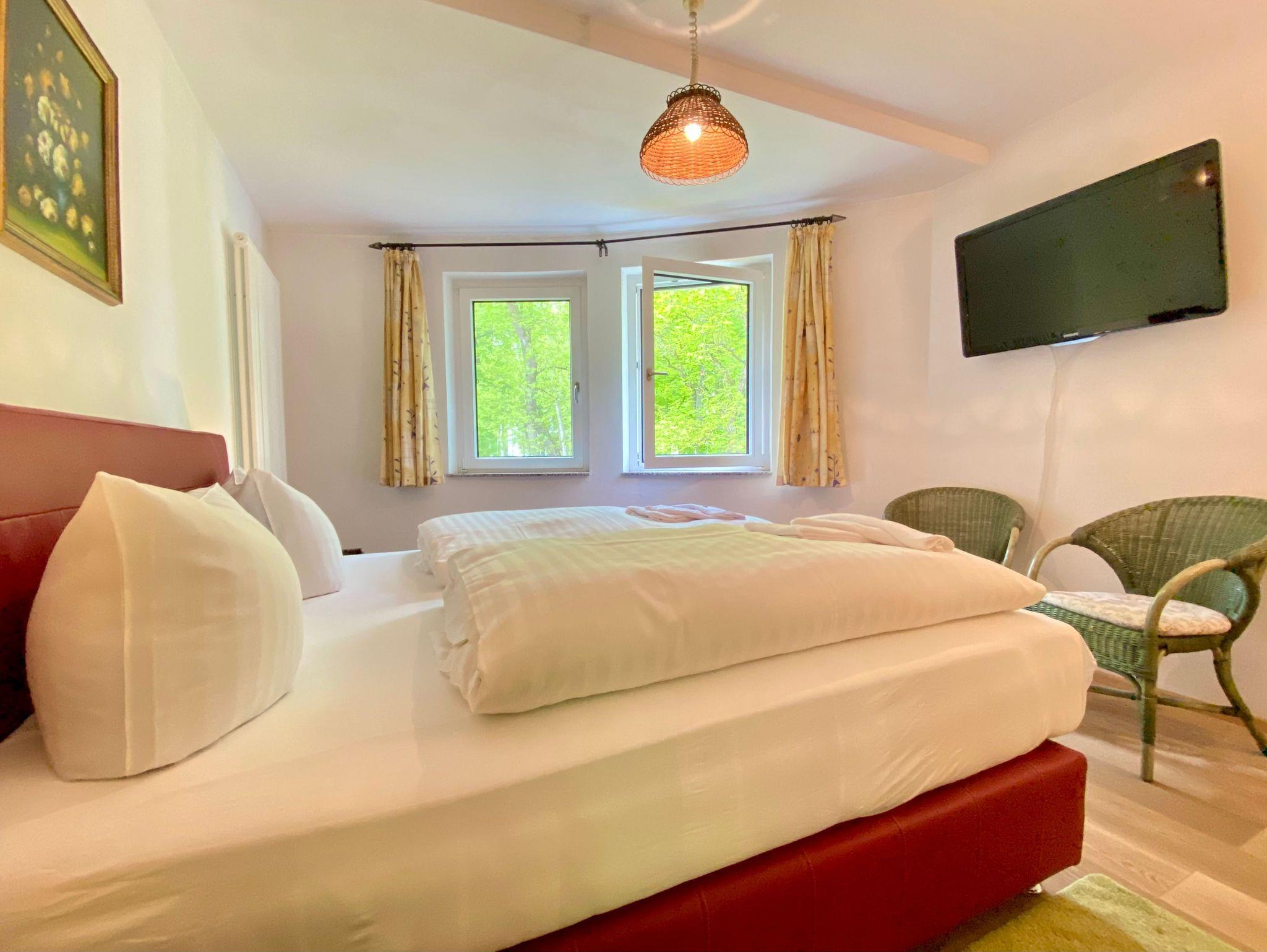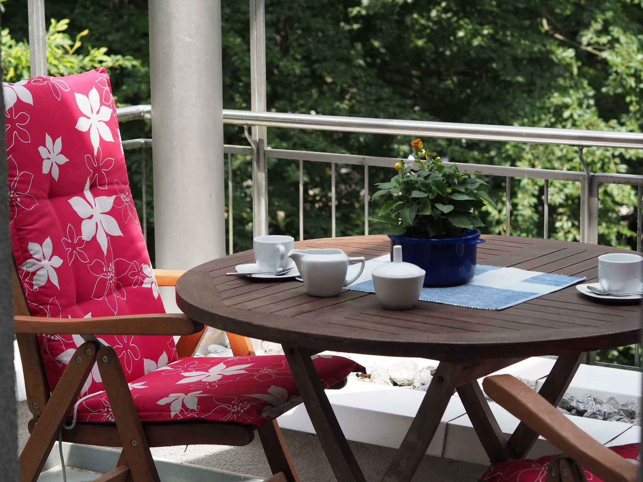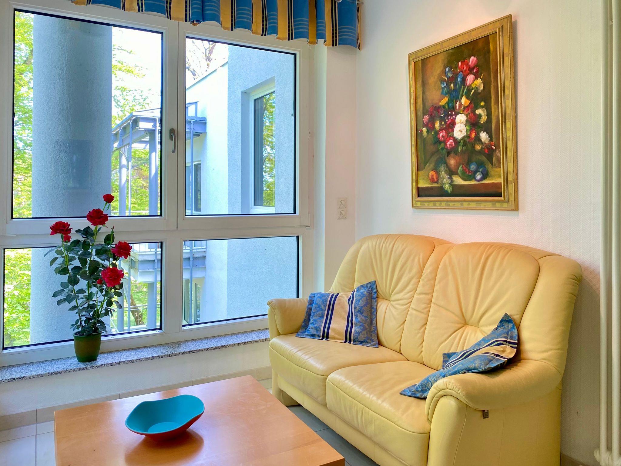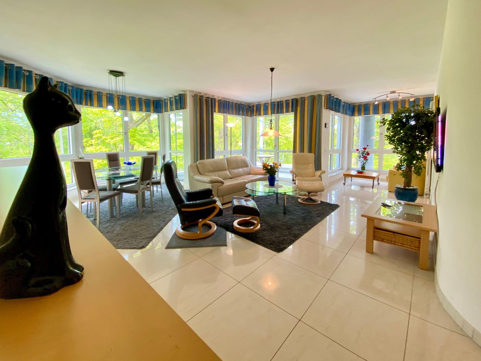 Moderne Ferienwohnung in der Villa Seepark mit direktem Strandzugang und zwei Balkonen.