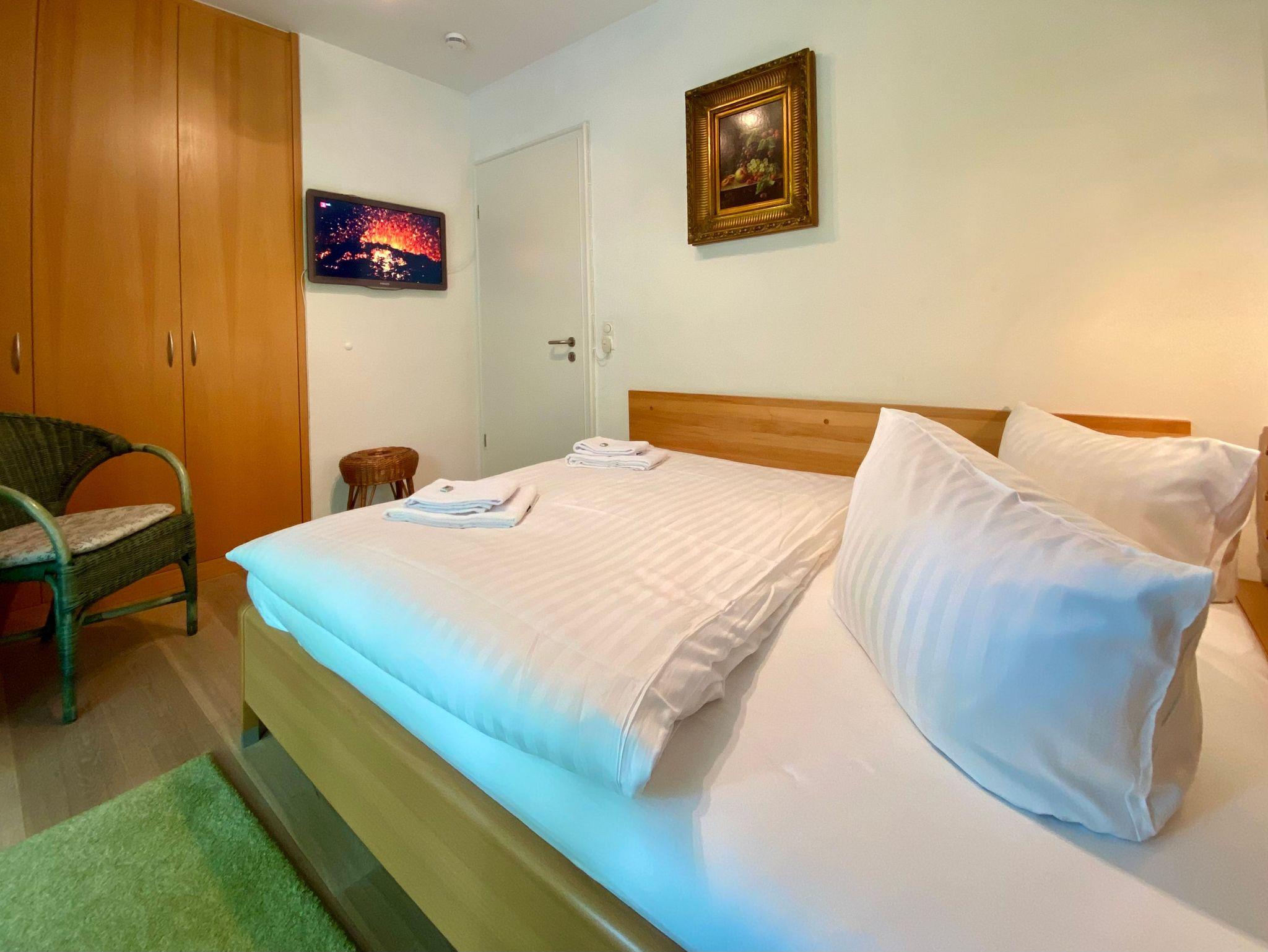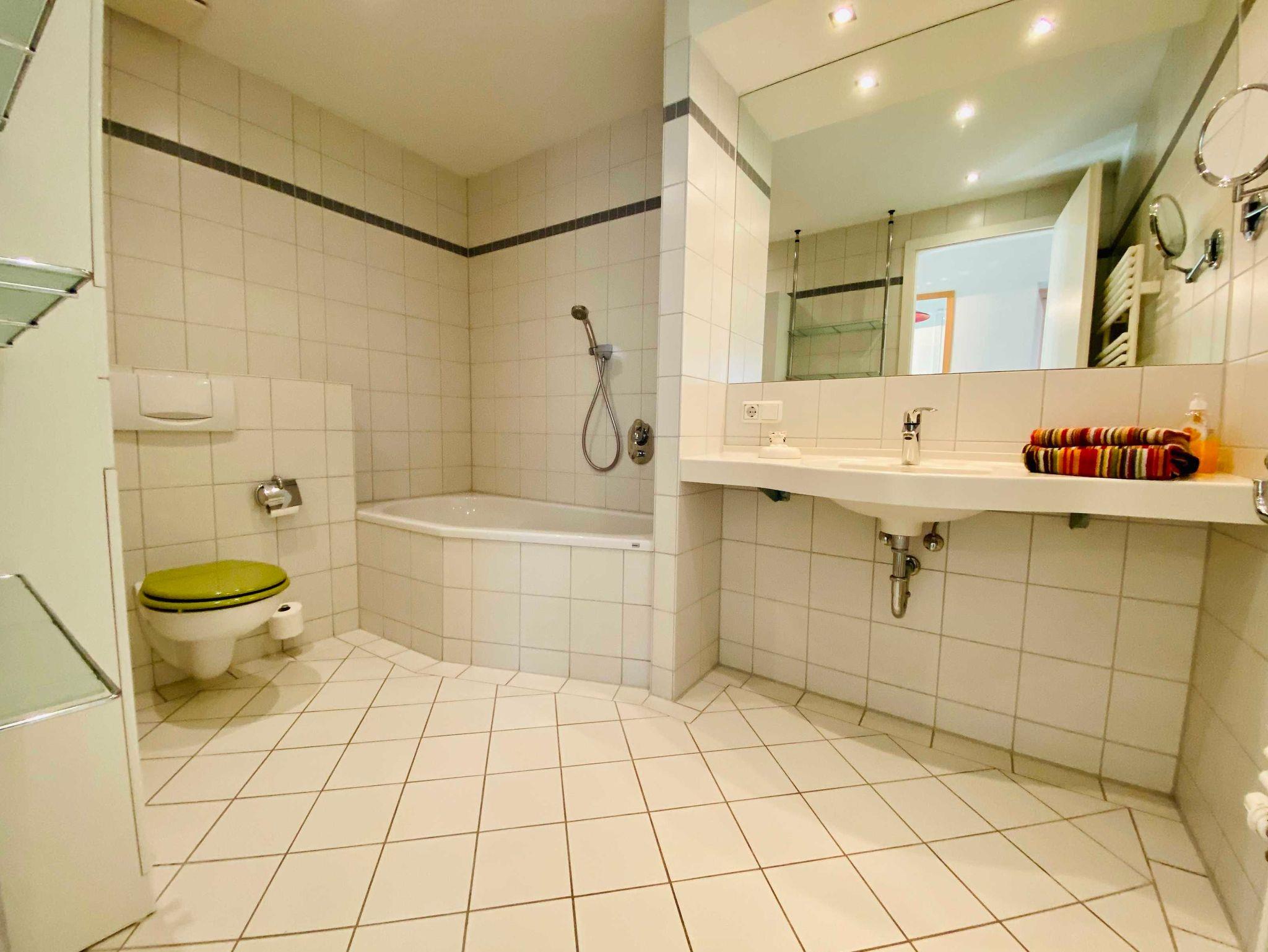 Die Ferienwohnung 8 im 2 OG ist sehr modern und hochwertig eingerichtet und erreichen Sie mit dem Fahrstuhl. Genießen Sie den großzügigen Wohnraum mit einer Couch und zwei tollen Ledersesseln, Esstisch, Flachbild-TV. Das große Schlafzimmer bietet ein schickes Boxspringbett, das kleinere ein Doppelbett und den Zugang zum Balkon (2.u.3. TV ! ), die Bäder verfügen über Dusche bzw. Wanne. In der separaten Küche können alle Wünsche erfüllt werden, denn sie ist eine Komplettküche mit Geschirrspüler, Backofen und Mikrowelle. Nutzen Sie die zwei Balkone je nach Tageszeit und Belieben. Ein Stellplatz am Haus und kostenfreies W-LAN sind vor Ort.