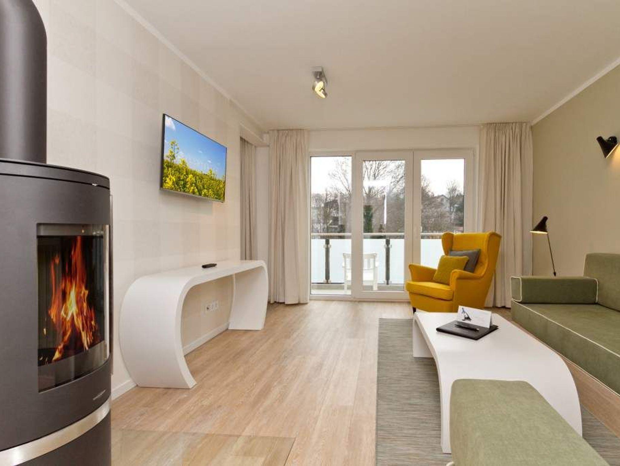Stylische Maisonette-Wohnung mit moderner Küche, Kamin und Balkon nahe Strand in Heringsdorf.