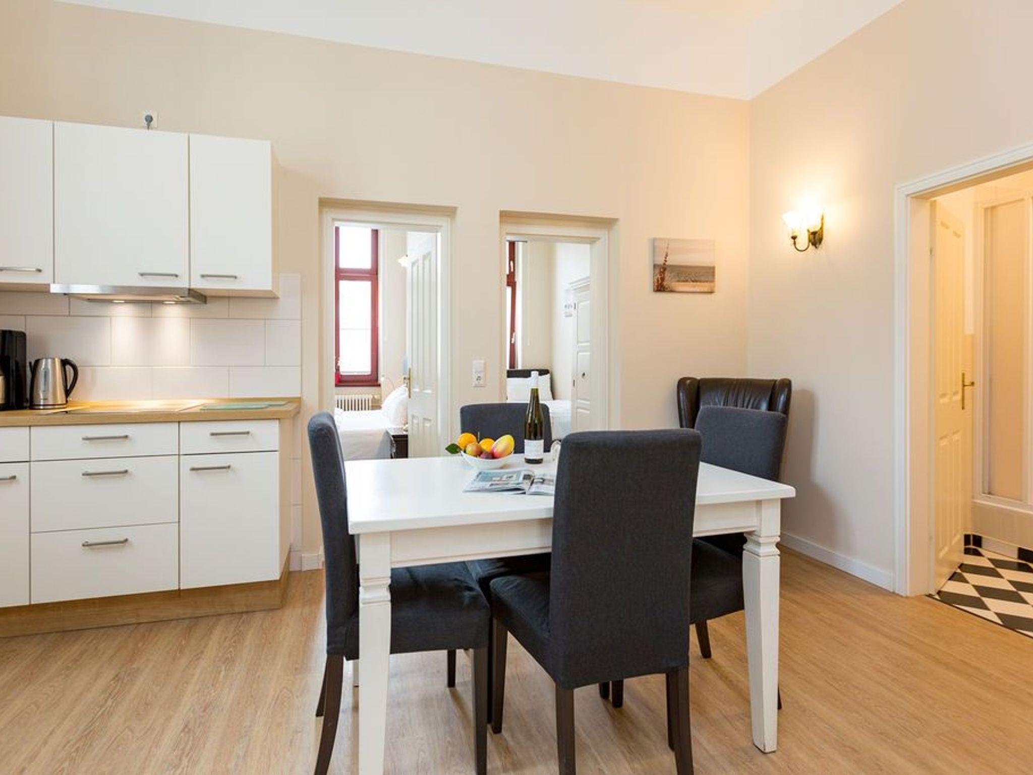 Willkommen in dieser wunderschönen 3-Raum-Ferienwohnung im Hochparterre! Mit einer Größe von 60 qm bietet sie Platz für 2 bis 4 Personen und ist somit ideal für einen erholsamen Urlaub. Das Highlight der Wohnung bildet das gemütliche Wohnzimmer mit seiner integrierten Küchenzeile. Hier können Sie gemeinsam mit Ihren Lieben kochen, essen und entspannen. Die Wohnung verfügt außerdem über zwei Schlafzimmer. Eines ist mit einem komfortablen Doppelbett ausgestattet, während zwei Einzelbetten (0,90m x 2,00m) im zweiten Schlafzimmer auf Sie warten. Das Badezimmer ist mit einer Dusche und einem WC ausgestattet. Auf der großzügigen Terrasse zur Westseite (12 qm) finden Sie ausreichend Platz für ein Sonnenbad und eine schöne Zeit unter dem Himmel von Usedom. Um Ihren Aufenthalt so angenehm wie möglich zu gestalten, sind die Betten bei Ihrer Ankunft bereits bezogen und Handtücher liegen für Sie bereit (Erstausstattung). Zudem steht Ihnen kostenfreies WLAN-Netzwerk zur Verfügung. Ein PKW-Stellplatz direkt am Haus rundet Ihren Urlaub im App. 01 ab.