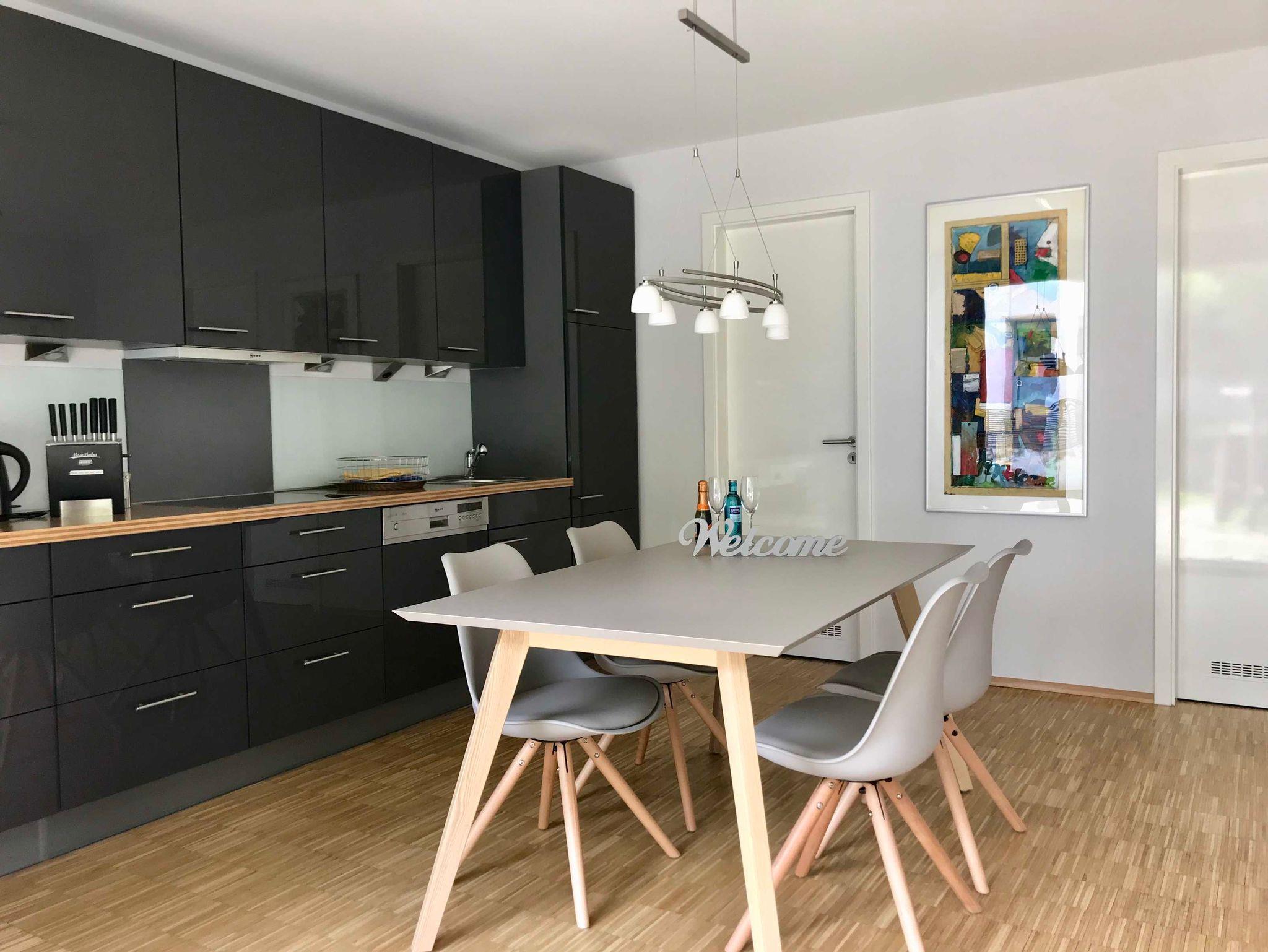Geschmackvolle, moderne Einrichtung, Parkettböden mit Fußbodenheizung.