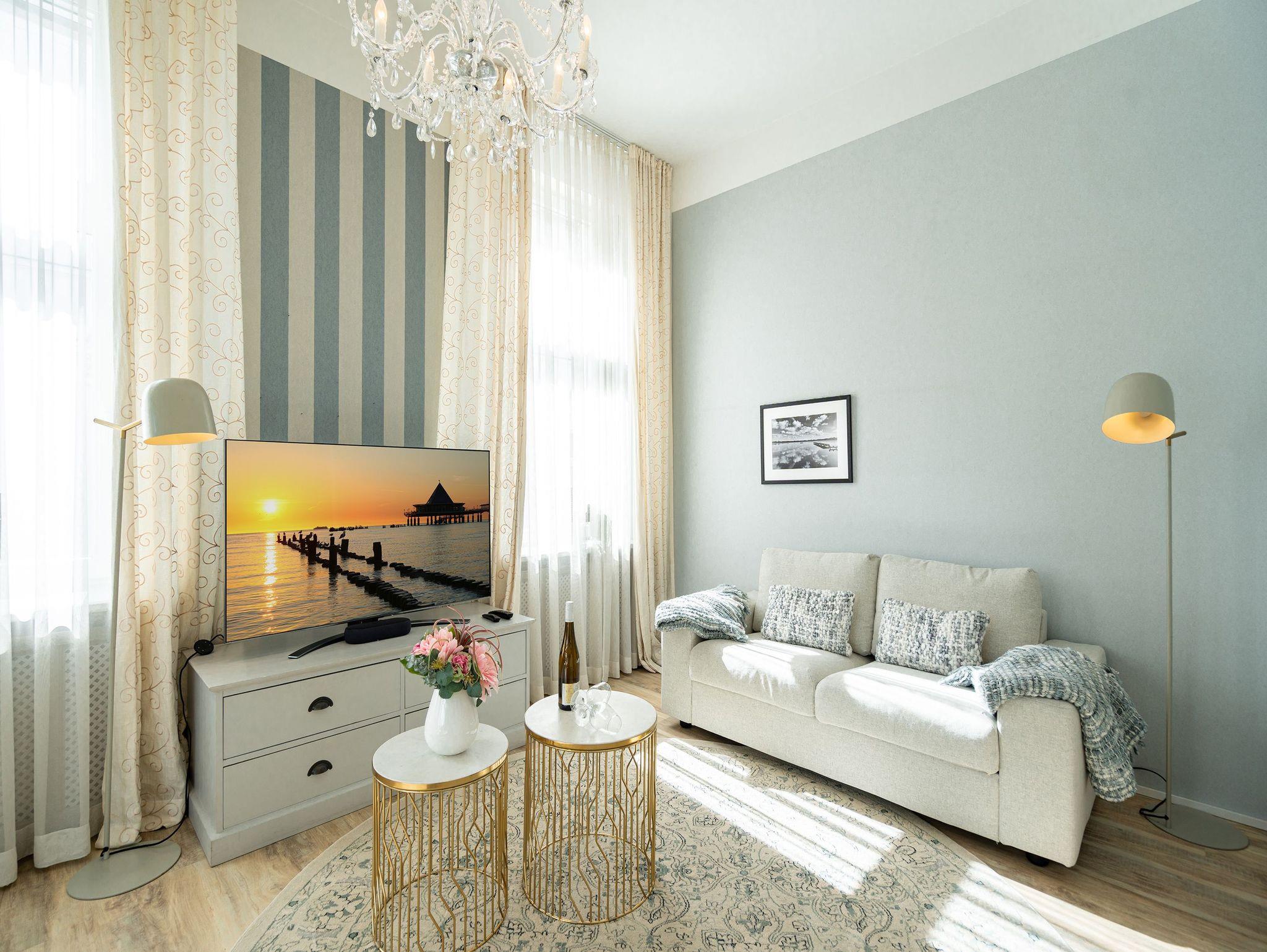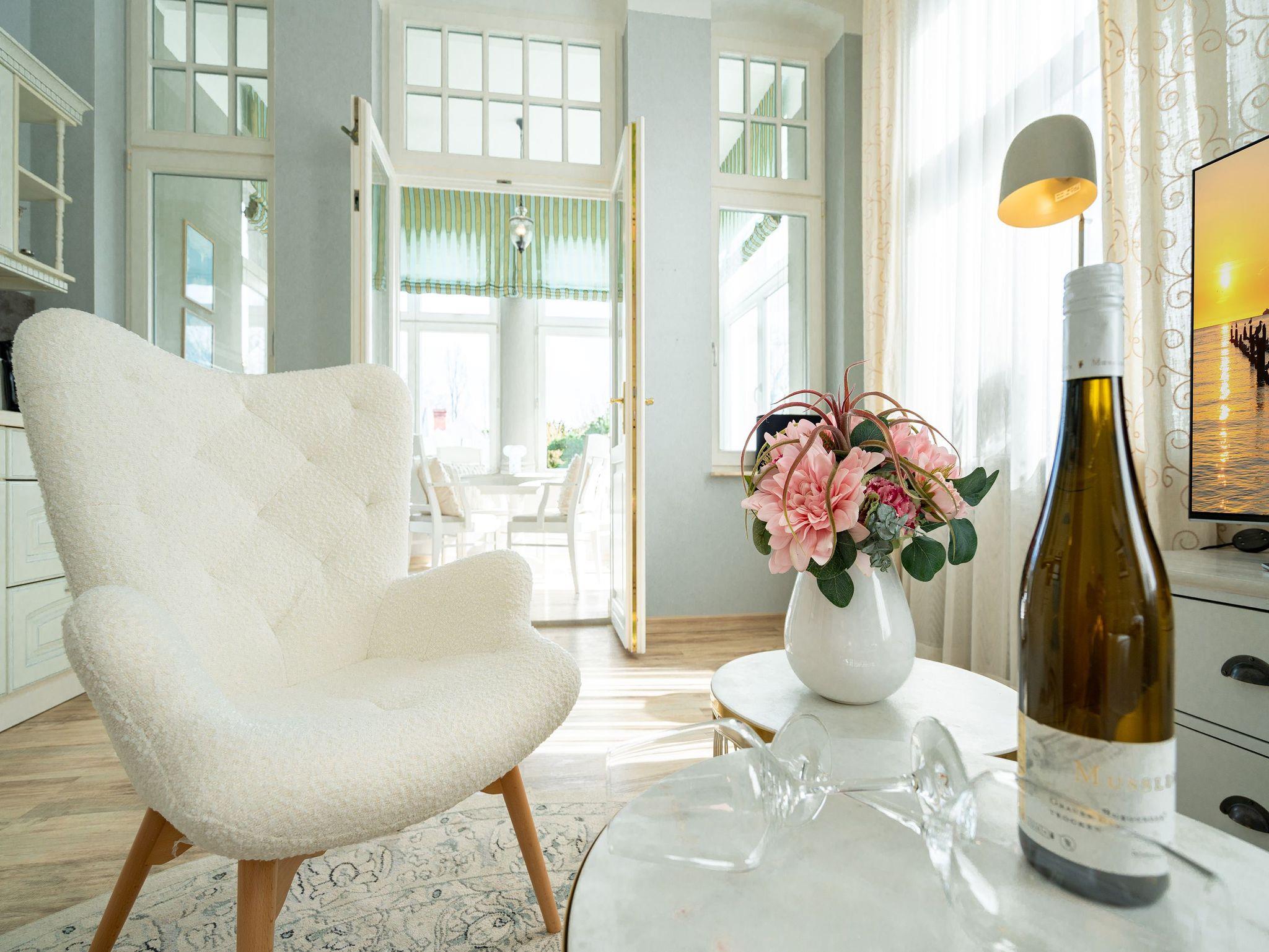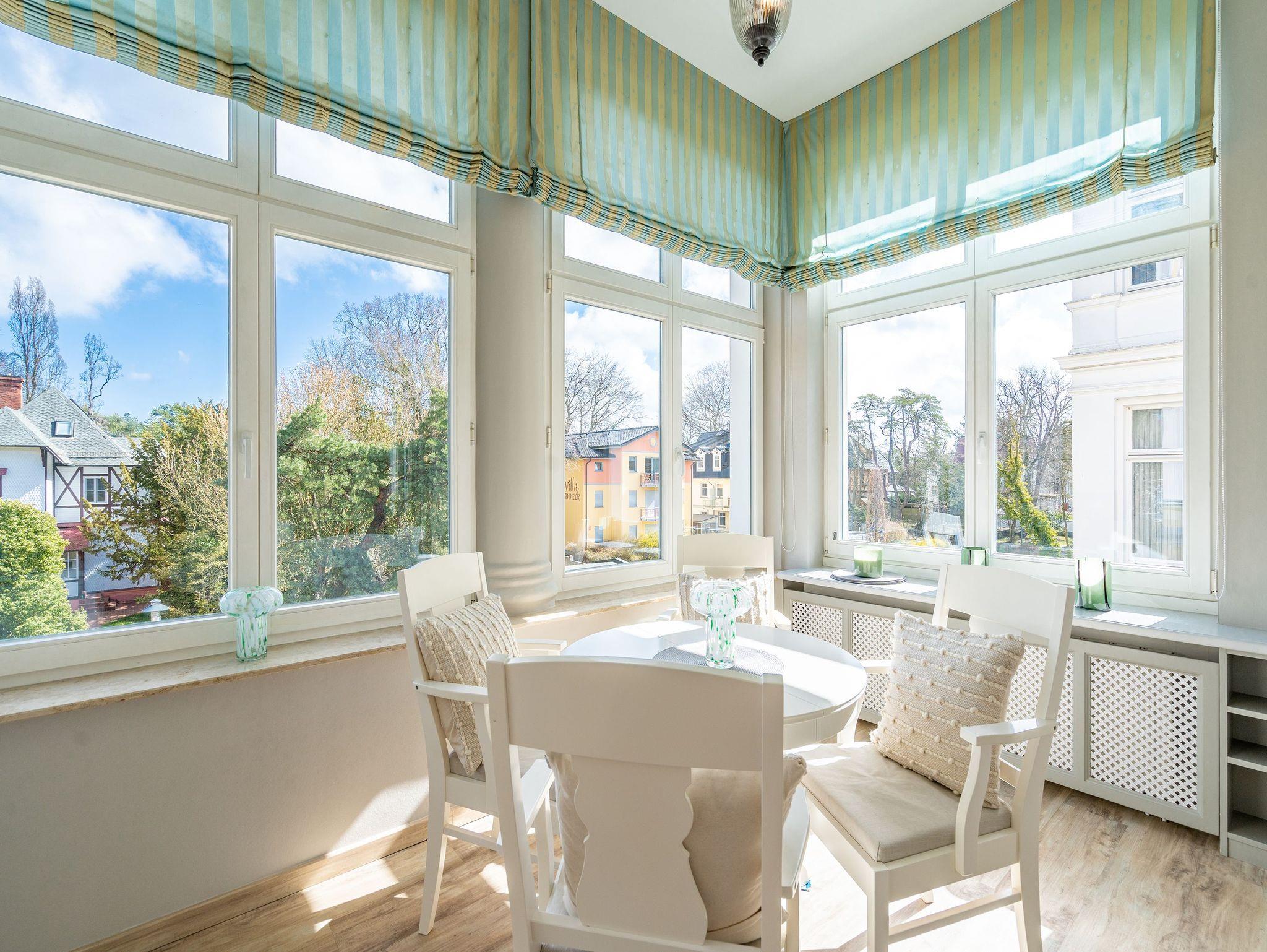 Stilvolle 2-Zimmer-Ferienwohnung in Heringsdorf mit Balkon, Wintergarten und kostenfreiem WLAN nur 130 m vom Strand entfernt.