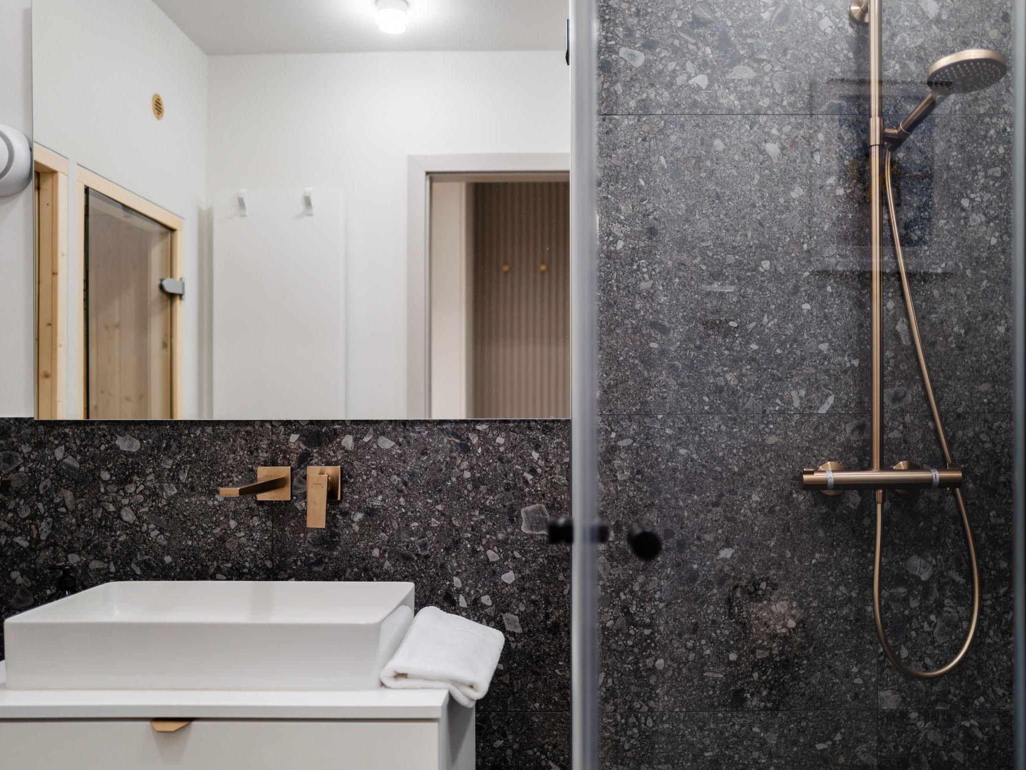 Ihr Urlaub zu zweit war noch nie so erholsam - herzlich willkommen in der traumhaften Ferienwohnung Nr. 05 im Quartier am Strand. Mit besonders viel Liebe zum Detail gestaltet, lässt das 50 Quadratmeter große, „kleine“ Appartement keine Wünsche offen. Entspannen Sie sich auf dem gemütlichen GERVASONI Sofa vor dem Kamin mit kuscheligem Teppich unter den Füßen oder schauen Sie Ihre Lieblingsserie auf dem Flatscreen-TV. Der schöne Essplatz lädt mit einer eingebauten Sitzbank zum „länger sitzenbleiben“ ein und in der offenen Küche (Backofen, Induktionsherd, Kühlschrank, Gefrierschrank und Spülmaschine) lässt sich, wenn gewünscht problemlos ein ganzes Urlaubsmenü zaubern. Eine hochwertige Nespresso Maschine zaubert Ihnen einen leckeren Kaffee für den perfekten Start in den Urlaubstag. Das offene Schlafzimmer überzeugt mit tollem Komfort. Das Boxspringdoppelbett (1,80m x 2,00m) von COCO-Mat, gefertigt aus hochwertiger Naturmaterialien, sorgt für erholsame Nächte. Mit dem zweiten Flat TV lässt es sich auch bequem aus dem Bett TV schauen. Die wertigen Tischlereinbauten im Flurbereich schaffen Platz für Ihre Urlaubsgarderobe. Gleich angrenzend befindet sich das innenliegende Bad mit Glasdusche, WC und Waschtisch und einem weiteren Highlight, der privaten Sauna. Die Usedomer Sonne genießt man auf dem großzügigen Süd-West-Balkon (15 qm) mit Essplatz und Sonnenliege. In den warmen Monaten (Mitte Mai bis September) steht Ihnen ein Strandkorb direkt am Strand zur Verfügung, um das Meeresrauschen in vollen Zügen zu genießen. Für Ihr Fahrzeug bieten wir einen Stellplatz in der Tiefgarage, der optional mit einer Ladestation für E-Autos zubuchbar ist. Ein wohnungseigener Fahrradabstellraum rundet das Angebot ab.