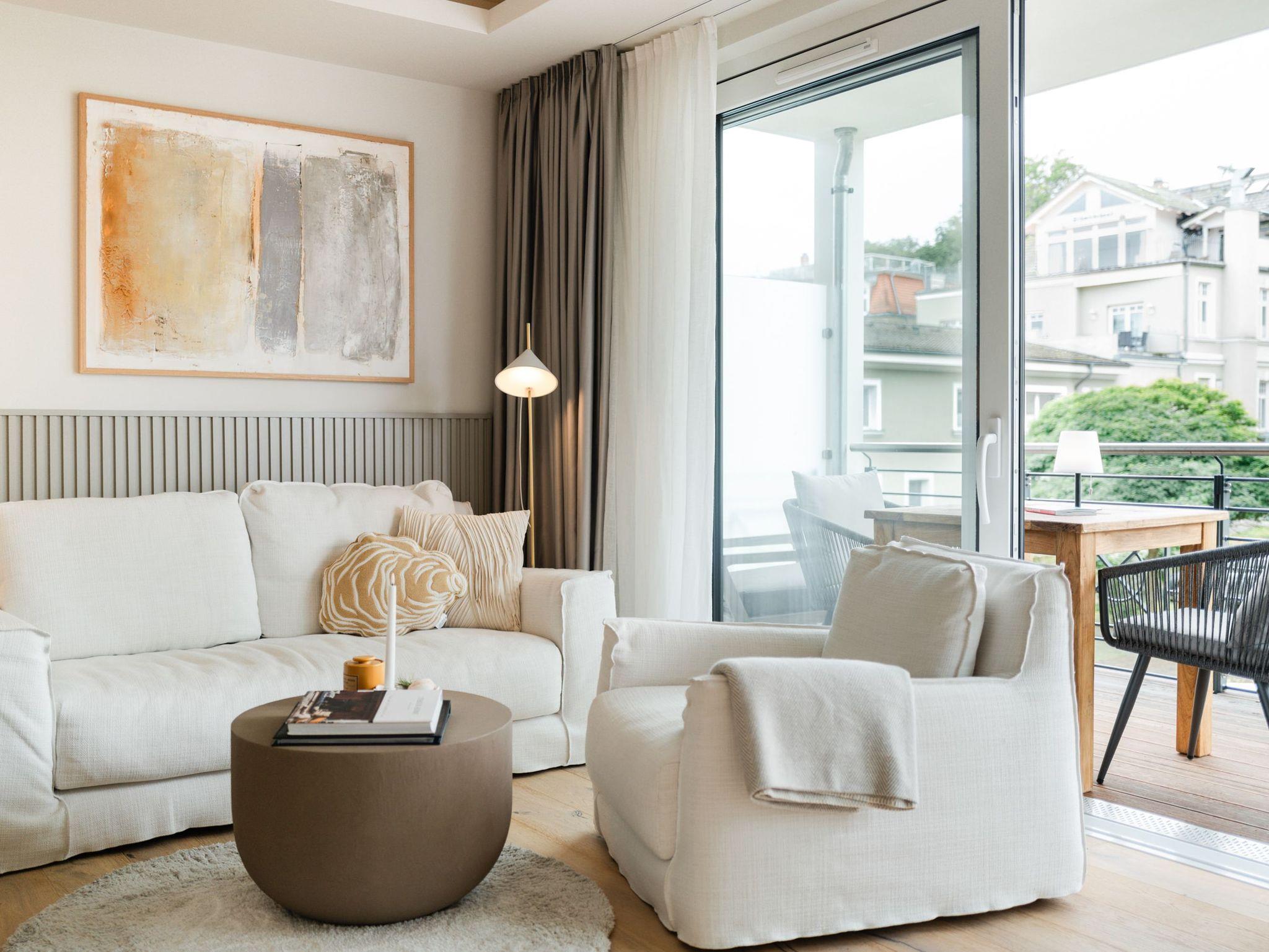 Erleben Sie erholsamen Urlaub zu zweit im stilvollen Appartement Nr. 05 im Quartier am Strand in Heringsdorf.
