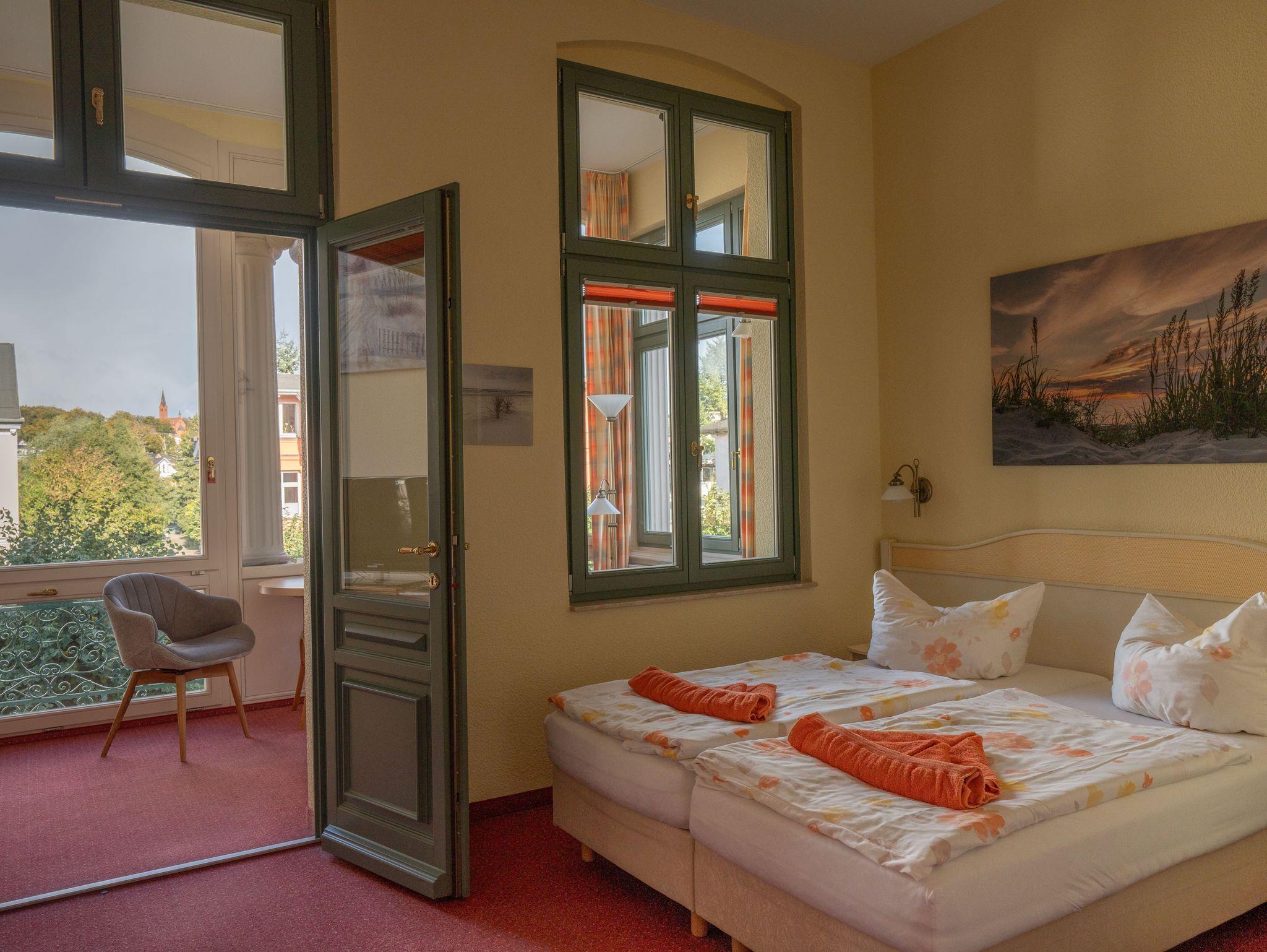 Auf der Terrasse vor dem Haus (Gemeinschaftsnutzung) haben Sie einen herrlichen Blick auf die alten Villen im Stil der Bäderarchitektur.