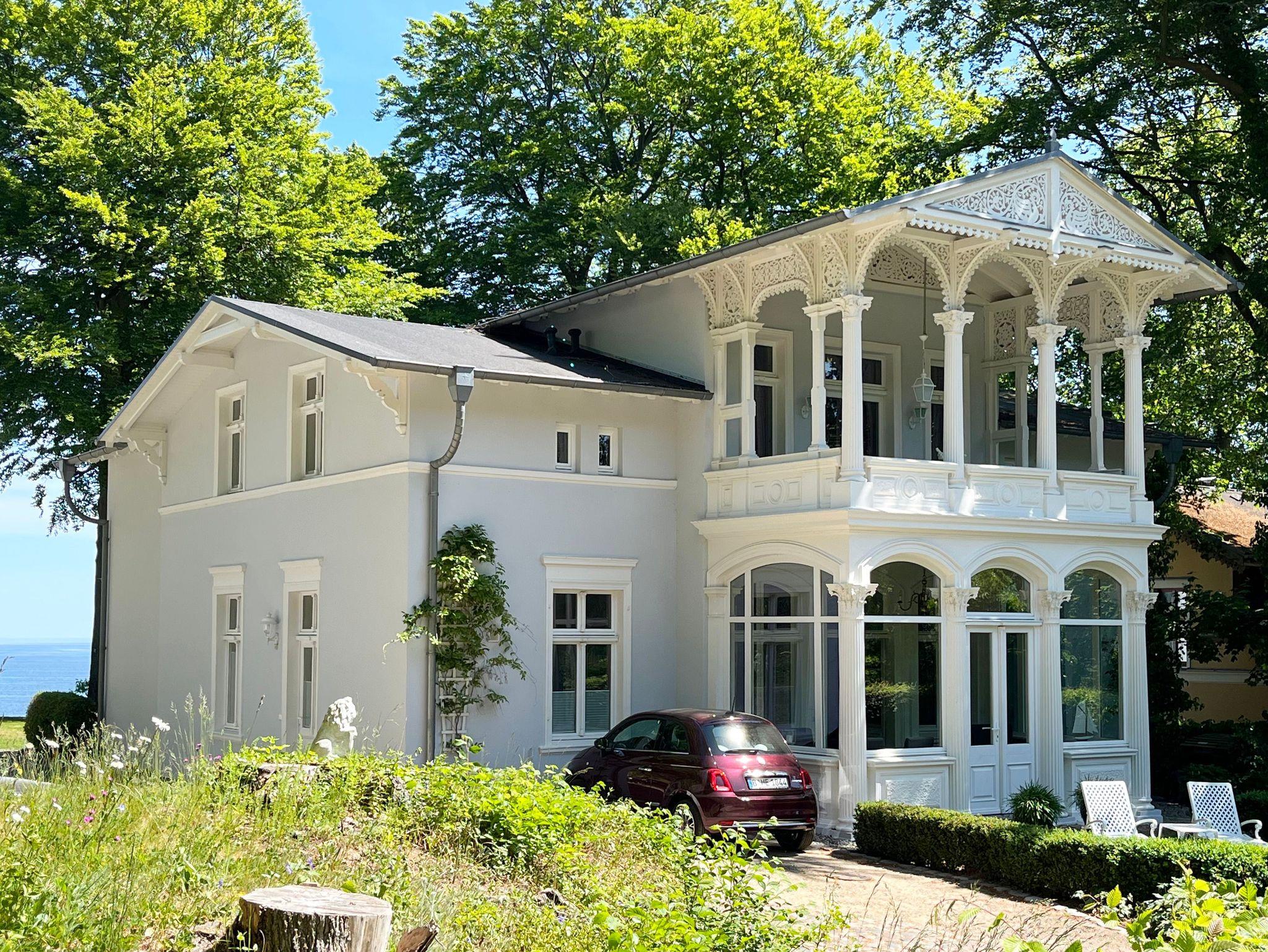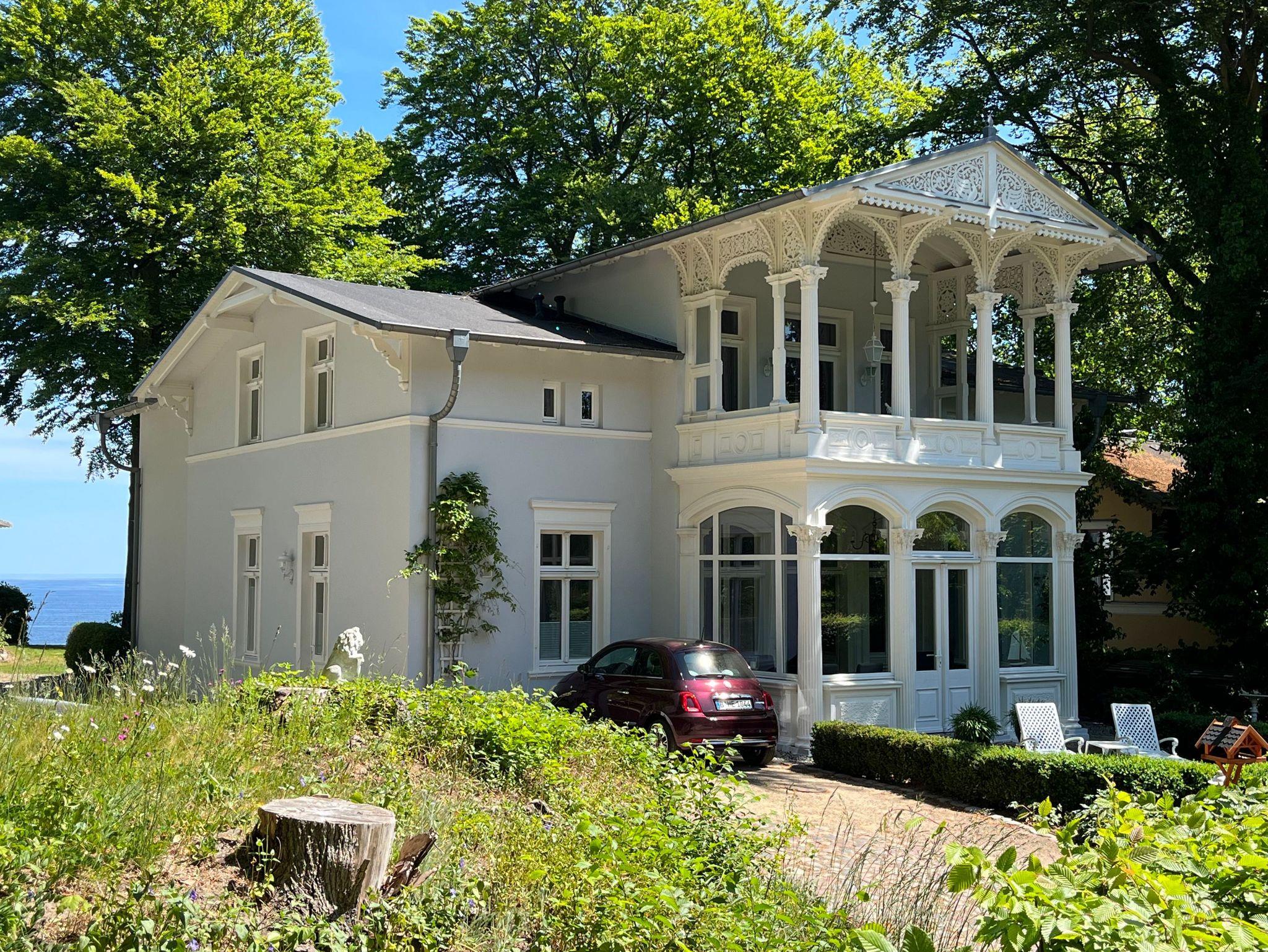 Die bezaubernde 5-Sterne-Villa (erbaut im Jahre 1845) ist eine der ältesten erhaltenen Villen Heringsdorfs. Erhaben liegt sie - mit phantastischem Blick - auf der Anhöhe des Kulms, auf einem großzügigen, gepflegten Grundstück mit altem Baumbestand. Meerseitig wurde das Haus erweitert und öffnet sich zur Ostsee ? mit Meerblick aus allen Wohnungen. Viele Stammgäste kehren immer wieder an diesen erholsamen Ort zurück und schätzen das inhabergeführte Haus.