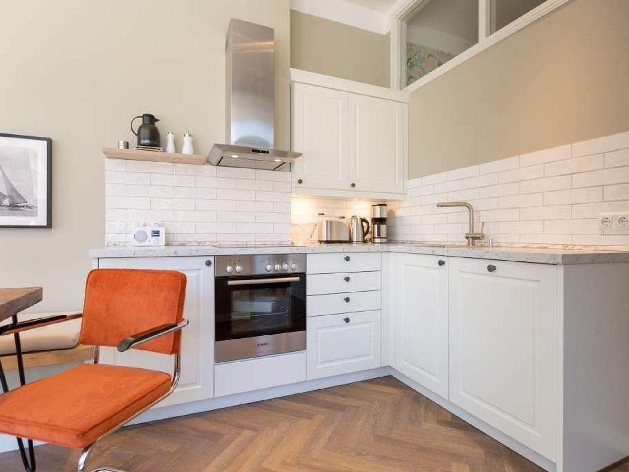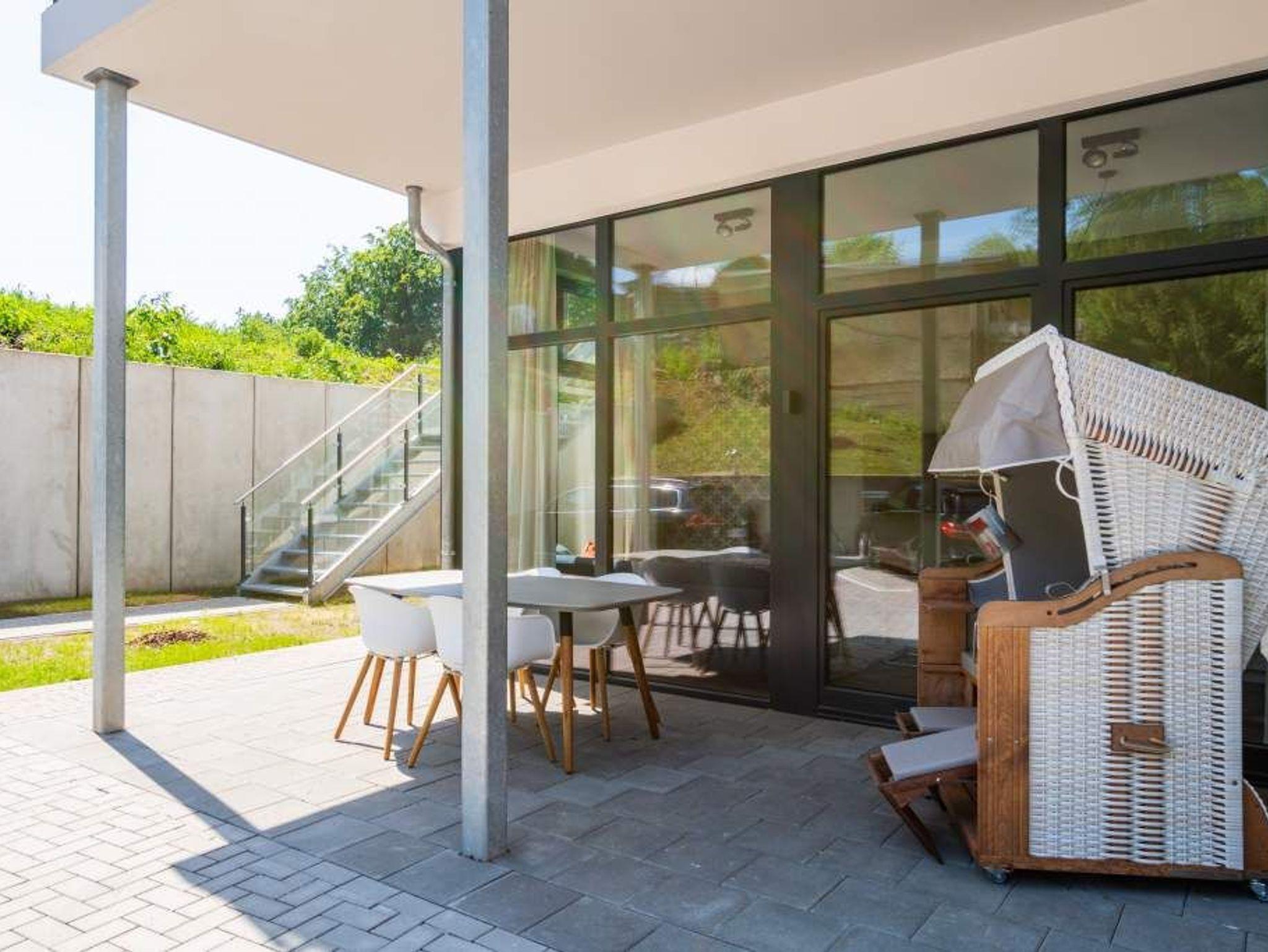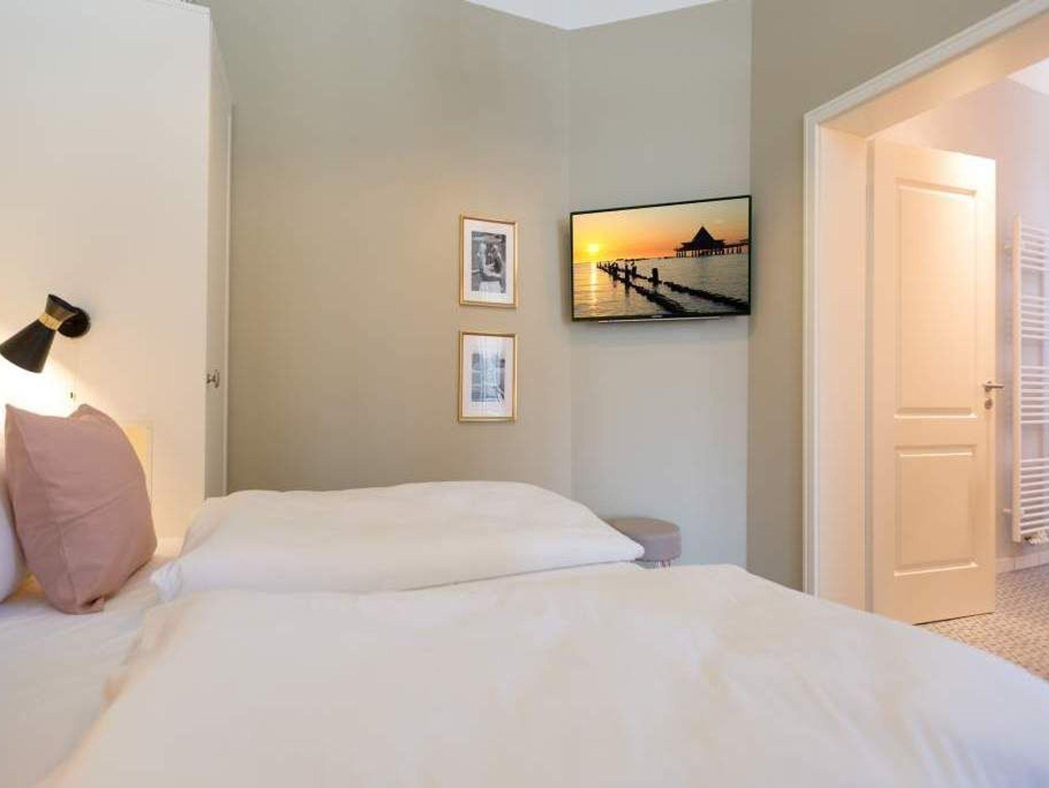 Laissez-faire ? so nennt sich das Gefühl von Leichtigkeit und Gelassenheit, das viele sich gerade im Urlaub ersehnen. Und genau das stellt sich in den 50 Quadratmetern dieses offenen und modernen Ferienparadieses im Erdgeschoss der Villa Bellevue unweigerlich schon beim Eintreten ein. Die Einrichtung ist stylisch und nobel. Behaglichkeit pur empfängt Sie. Große, bodentiefe Fenster lassen viel Licht in das Wohn-Esszimmer. Hier können Sie nach Herzenslust entspannen. Zum Beispiel auf der großen Wohnlandschaft. Ein schöner Gaskamin mit Kachelofenoptik sorgt für Gemütlichkeit an kühlen Tagen und Abenden. Der 42-Zoll-Flat TV sorgt für Kino-Feeling in Ihrem Wohnzimmer. Frühstücken Sie bei Sonnenschein auf der Terrasse (mit Strandkorb) oder an dem Echtholztisch in Ihrem Wohnzimmer. Die Küche ist voll ausgestattet. Hochwertige Geräte und schönes Asa-Geschirr machen aus jedem Kochen und Essen ein Genusserlebnis. Zwei Erwachsene und ein Kleinkind bis zu drei Jahren (im Kinderreisebett) haben in diesem Urlaubsdomizil Platz. Im Schlafzimmer, das durch ein Oberlicht Tageslicht erhält, wartet ein komfortables Boxspringdoppelbett (1,80 m x 2,00 m) darauf, Ihnen erholsame Träume zu schenken. Das Badezimmer ist geräumig und mit seinen weißen Metro-Fliesen angesagt modern. Es ist mit Dusche, Waschtisch und WC ausgestattet. Das Appartement verfügt über einen kostenfreien WLAN-Zugang. In einem Hauswirtschaftsraum im Gartenhaus nebenan kann gegen eine Gebühr die Waschmaschine und der Trockner benutzt werden. Ihr Auto können Sie auf einem Außenstellplatz, der zum Haus gehört, parken. Für einen entspannten Urlaub liegen die Handtücher bei Ihrer Anreise bereit und das Bett ist bezogen.