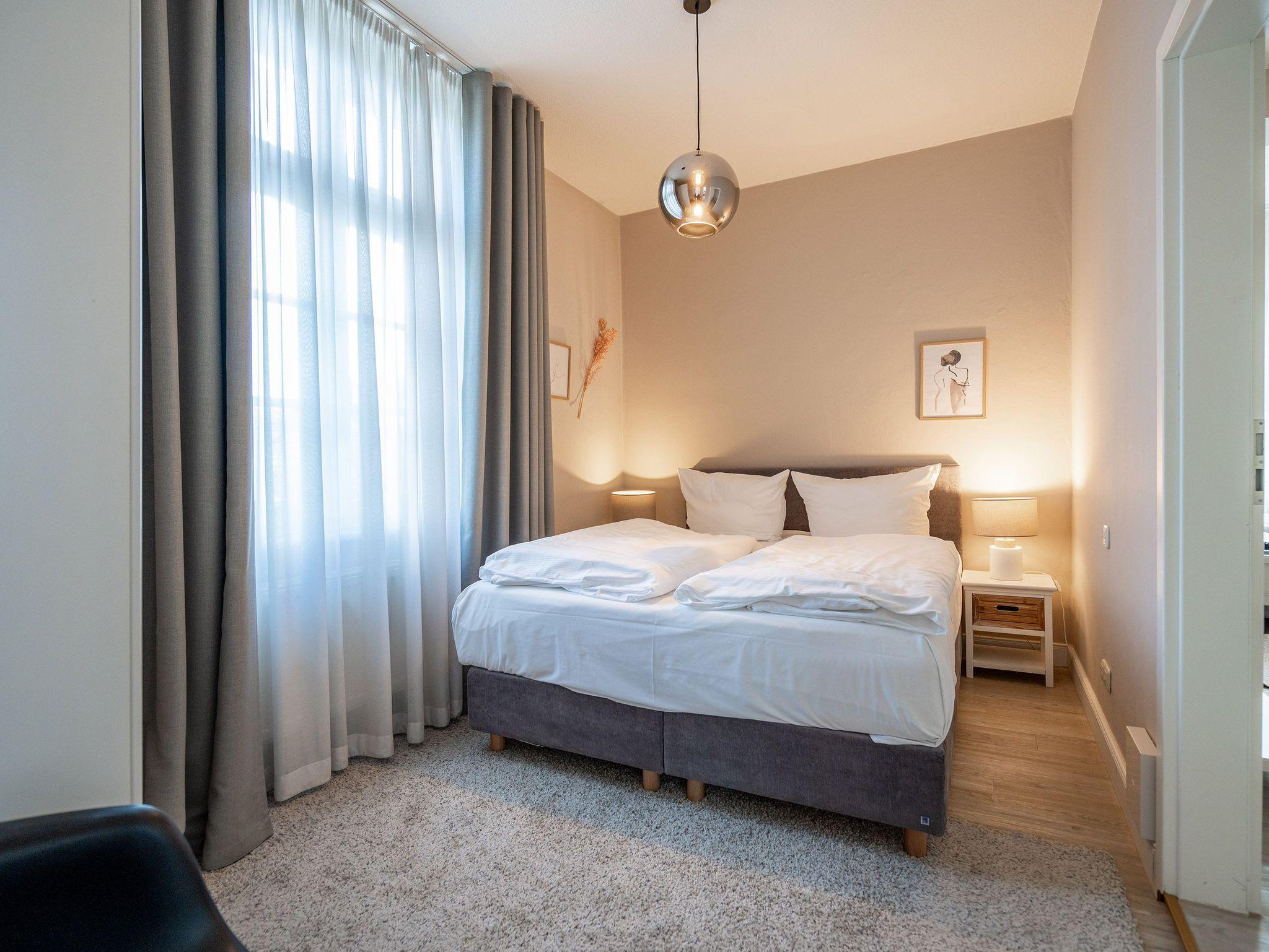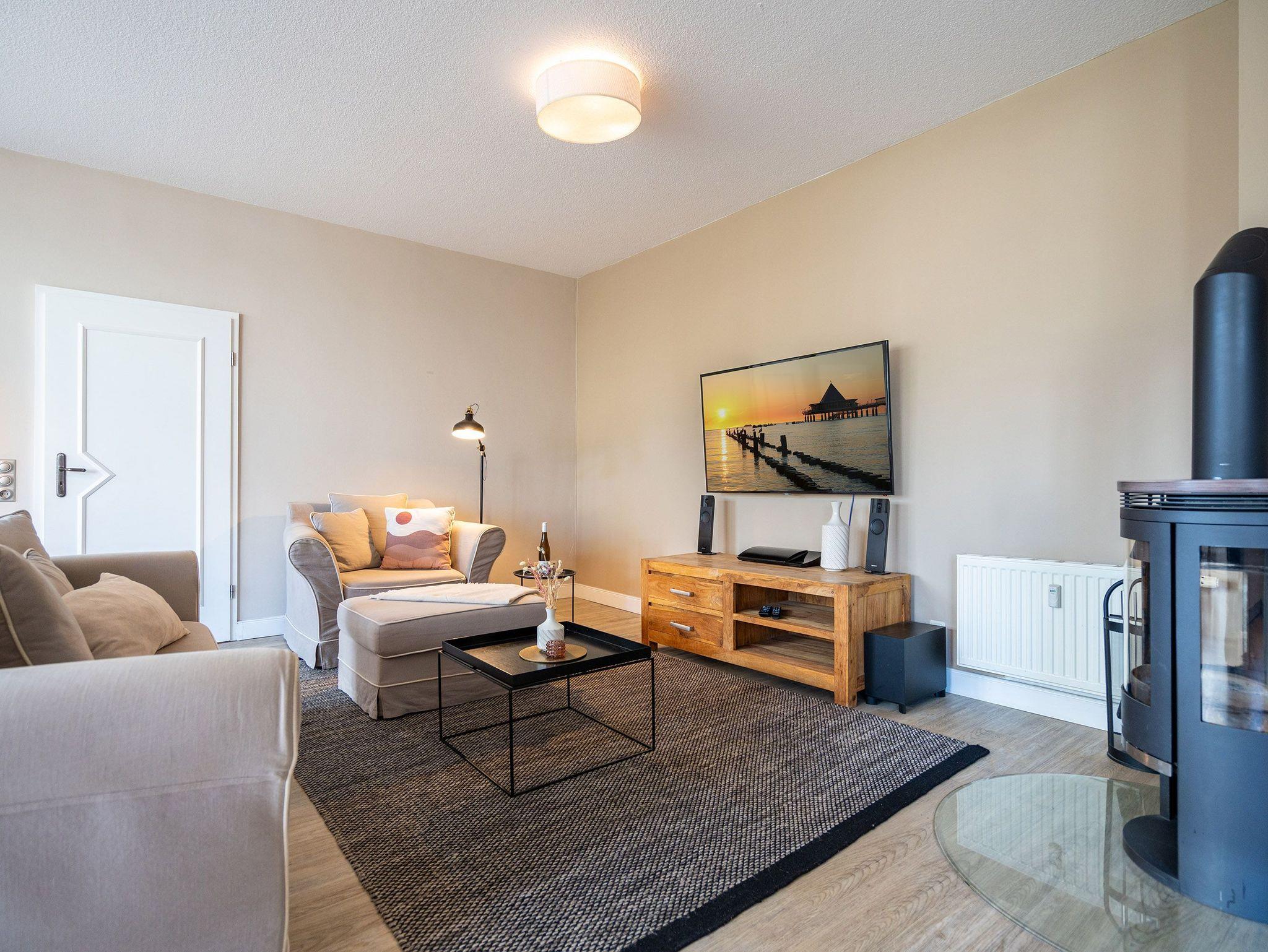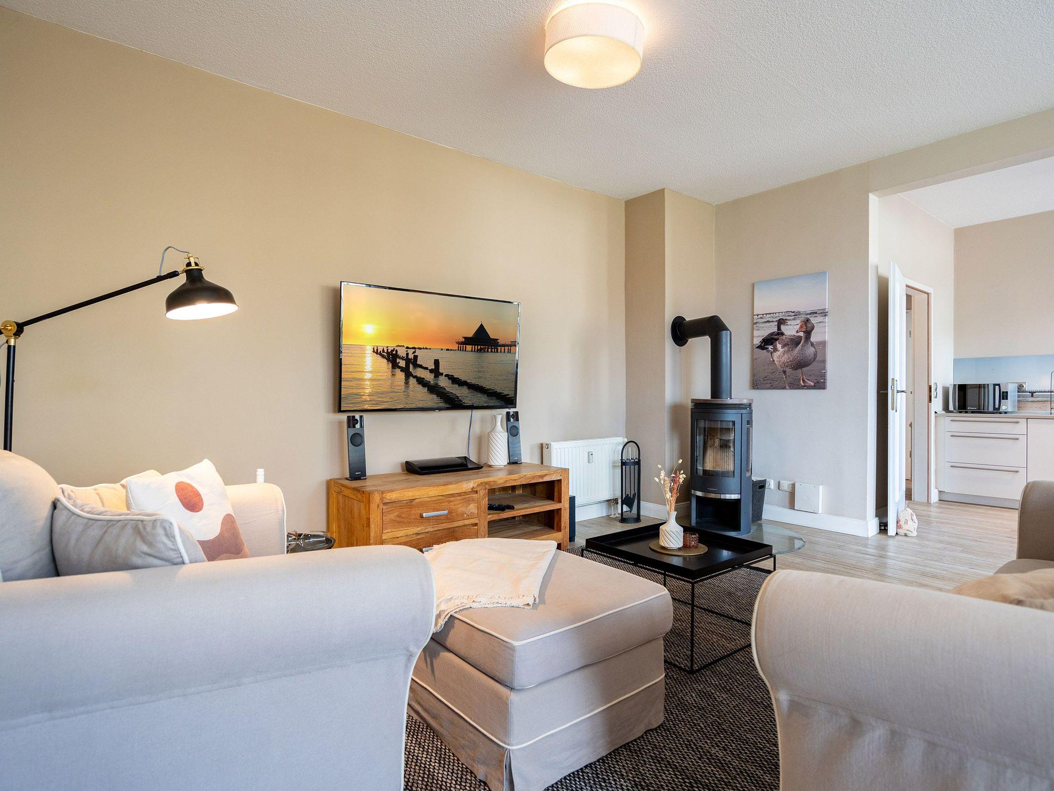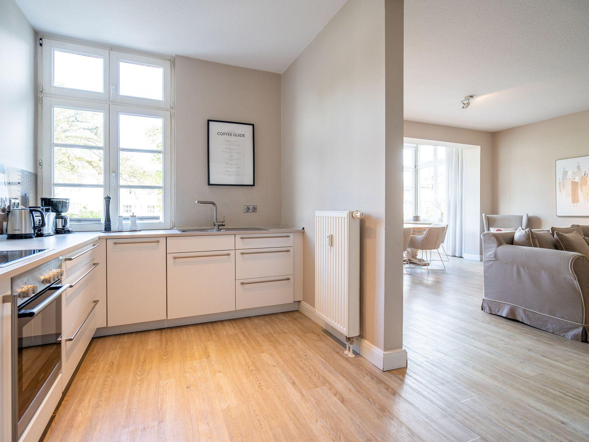Herzlich willkommen in der Villa Brunnenstraße, Ihrem neuen Wohlfühlparadies an der Ostsee! Hier erwartet Sie ein modernes und lichtdurchflutetes Domizil, das mit viel Liebe zum Detail gestaltet wurde, um höchsten Komfort und eine stilvolle Atmosphäre zu vereinen. Die Verbindung aus zeitgemäßem Design und einer gemütlichen Wohnlichkeit sorgt dafür, dass Sie sich vom ersten Moment an wie zu Hause fühlen. Das charmante 3-Raum-Appartement mit einer großzügigen Wohnfläche von 85 m² bietet ausreichend Platz für 4 Personen und ein Kleinkind, das bequem im bereitgestellten Kinderreisebett untergebracht werden kann. Diese Wohnung ist der perfekte Rückzugsort für Familien, Paare oder Freunde, die gemeinsam eine unvergessliche Zeit verbringen möchten. Beim Betreten des Appartements werden Sie von einem weitläufigen und hellen Wohnbereich empfangen, der mit einer bequemen Sitzgruppe, einem einladenden Kamin und einem modernen Flat-TV ausgestattet ist. Hier können Sie nach einem erlebnisreichen Tag am Meer die Seele baumeln lassen, ein gutes Buch lesen oder einen gemütlichen Filmabend genießen ? der perfekte Ort, um zur Ruhe zu kommen. Das Hauptschlafzimmer bietet Ihnen ein besonders hochwertiges Doppelboxspringbett (1,60 m x 2,00 m), das für erholsame Nächte sorgt. Von hier aus gelangen Sie in ein zweites, ebenso liebevoll eingerichtetes Schlafzimmer, das mit zwei komfortablen Einzelboxspringbetten (je 0,90 m x 2,00 m) ausgestattet ist. Auch in diesem Raum steht Ihnen ein Flat-TV zur Verfügung, sodass alle Gäste ihre Privatsphäre genießen können. Besonders schön ist der Ausblick aus diesem Zimmer: Sie blicken direkt auf die charmanten Villen der Brunnenstraße ? ein Anblick, der die Ruhe und Eleganz dieses besonderen Ortes unterstreicht. Die offene Küche ist nicht nur komplett ausgestattet, sondern auch ein echter Blickfang. Sie lädt dazu ein, gemeinsam zu kochen, kulinarische Köstlichkeiten zuzubereiten und in geselliger Runde Zeit zu verbringen. Ergänzt wird das Appartement durch ein stilvoll gestaltetes Duschbad, das Ihnen einen weiteren Ort der Entspannung bietet. Damit Sie Ihren Aufenthalt rundum sorglos genießen können, steht Ihnen ein PKW-Stellplatz (Nr. 2) direkt auf dem Innenhof der Villa zur Verfügung ? bequem und sicher, damit Ihr Fahrzeug gut untergebracht ist.