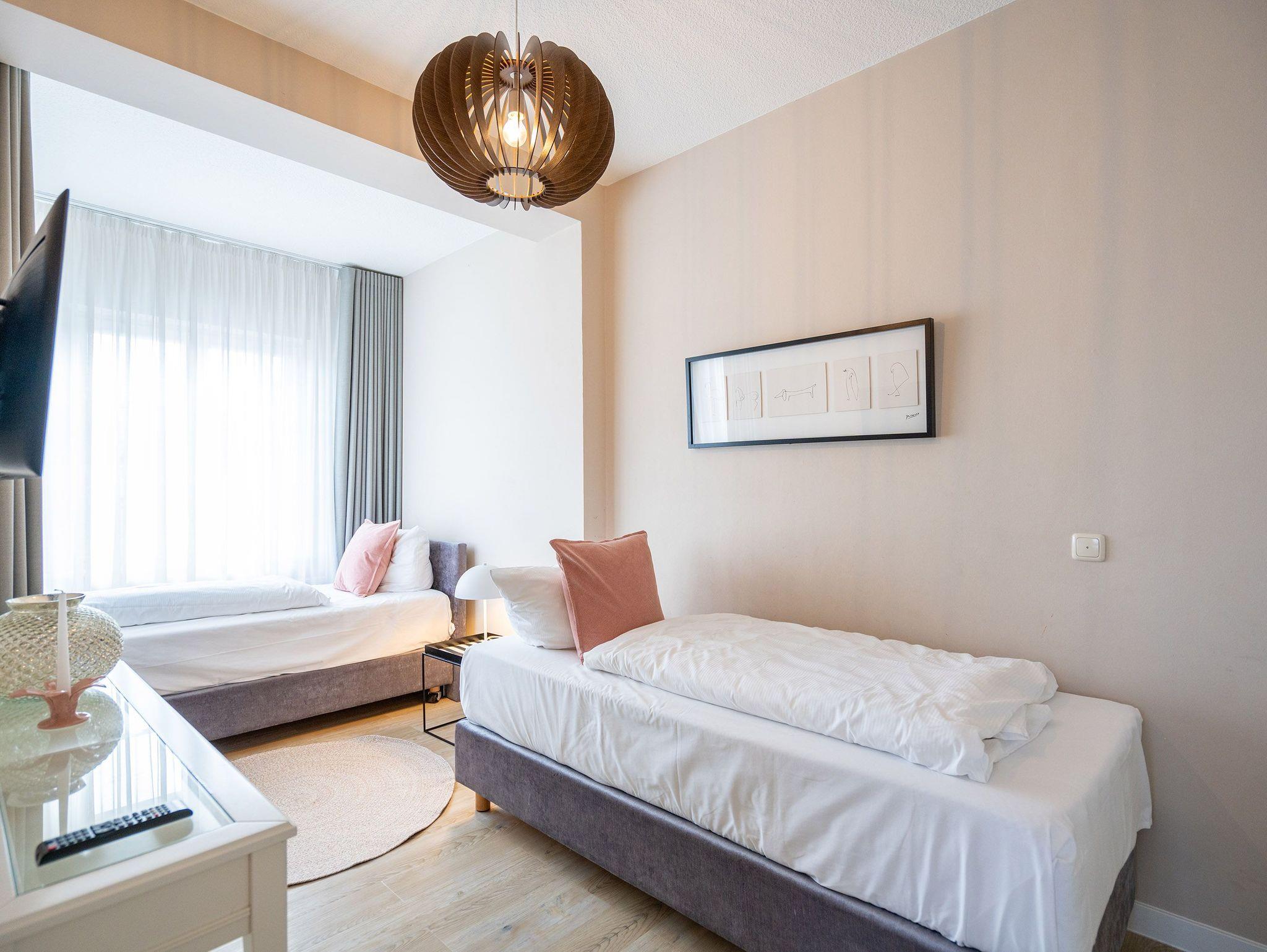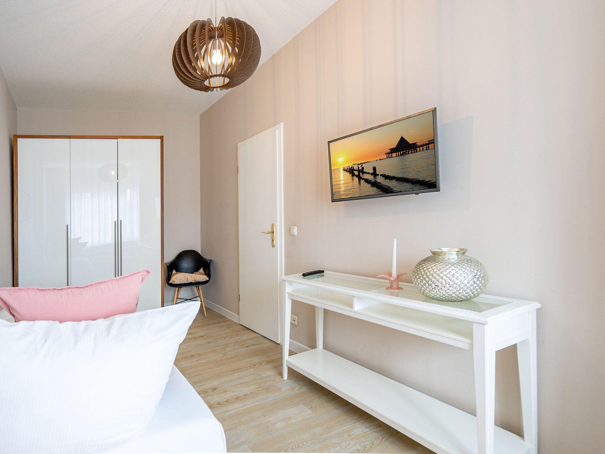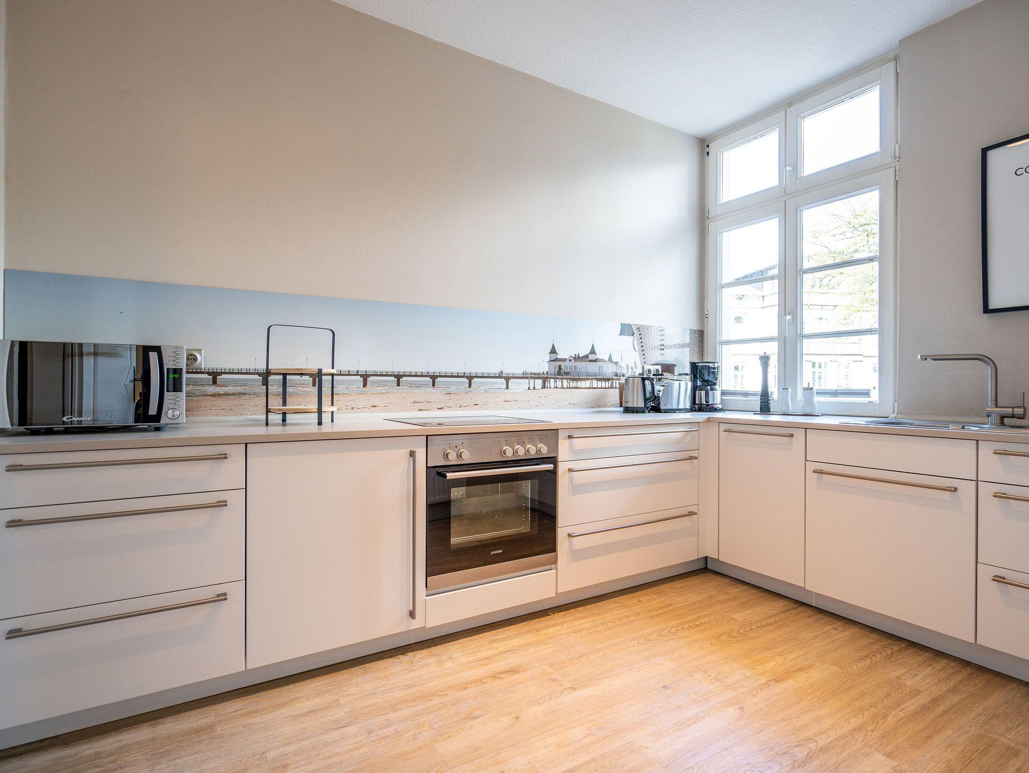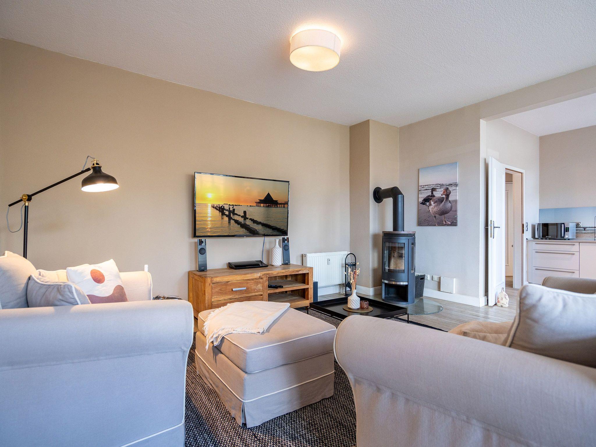 Herzlich willkommen in der Villa Brunnenstraße, Ihrem neuen Wohlfühlparadies an der Ostsee! Hier erwartet Sie ein modernes und lichtdurchflutetes Domizil, das mit viel Liebe zum Detail gestaltet wurde, um höchsten Komfort und eine stilvolle Atmosphäre zu vereinen. Die Verbindung aus zeitgemäßem Design und einer gemütlichen Wohnlichkeit sorgt dafür, dass Sie sich vom ersten Moment an wie zu Hause fühlen. Das charmante 3-Raum-Appartement mit einer großzügigen Wohnfläche von 85 m² bietet ausreichend Platz für 4 Personen und ein Kleinkind, das bequem im bereitgestellten Kinderreisebett untergebracht werden kann. Diese Wohnung ist der perfekte Rückzugsort für Familien, Paare oder Freunde, die gemeinsam eine unvergessliche Zeit verbringen möchten. Beim Betreten des Appartements werden Sie von einem weitläufigen und hellen Wohnbereich empfangen, der mit einer bequemen Sitzgruppe, einem einladenden Kamin und einem modernen Flat-TV ausgestattet ist. Hier können Sie nach einem erlebnisreichen Tag am Meer die Seele baumeln lassen, ein gutes Buch lesen oder einen gemütlichen Filmabend genießen ? der perfekte Ort, um zur Ruhe zu kommen. Das Hauptschlafzimmer bietet Ihnen ein besonders hochwertiges Doppelboxspringbett (1,60 m x 2,00 m), das für erholsame Nächte sorgt. Von hier aus gelangen Sie in ein zweites, ebenso liebevoll eingerichtetes Schlafzimmer, das mit zwei komfortablen Einzelboxspringbetten (je 0,90 m x 2,00 m) ausgestattet ist. Auch in diesem Raum steht Ihnen ein Flat-TV zur Verfügung, sodass alle Gäste ihre Privatsphäre genießen können. Besonders schön ist der Ausblick aus diesem Zimmer: Sie blicken direkt auf die charmanten Villen der Brunnenstraße ? ein Anblick, der die Ruhe und Eleganz dieses besonderen Ortes unterstreicht. Die offene Küche ist nicht nur komplett ausgestattet, sondern auch ein echter Blickfang. Sie lädt dazu ein, gemeinsam zu kochen, kulinarische Köstlichkeiten zuzubereiten und in geselliger Runde Zeit zu verbringen. Ergänzt wird das Appartement durch ein stilvoll gestaltetes Duschbad, das Ihnen einen weiteren Ort der Entspannung bietet. Damit Sie Ihren Aufenthalt rundum sorglos genießen können, steht Ihnen ein PKW-Stellplatz (Nr. 2) direkt auf dem Innenhof der Villa zur Verfügung ? bequem und sicher, damit Ihr Fahrzeug gut untergebracht ist.