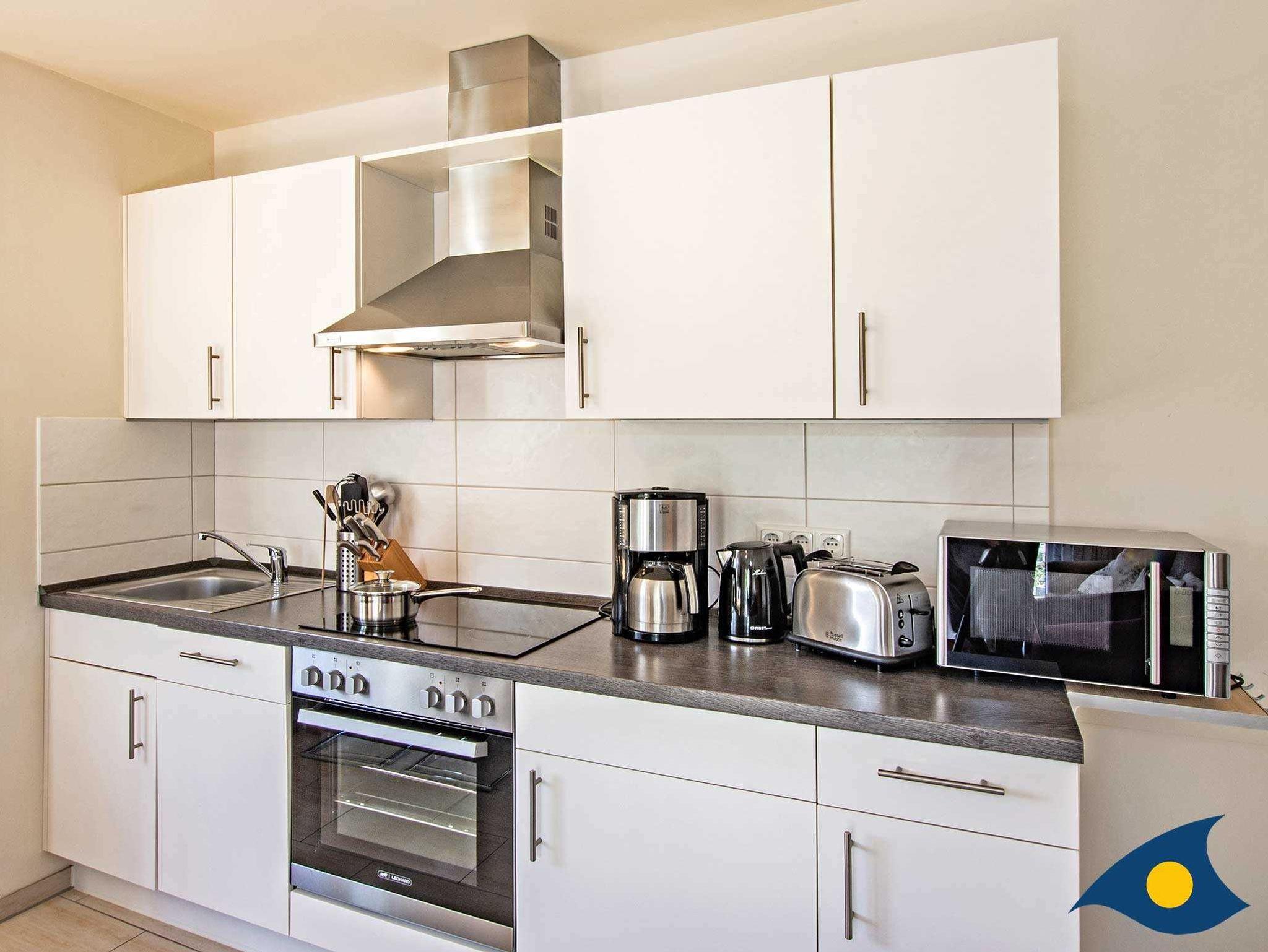 Die in den Wohnraum integrierte Küche, mit einem für vier Personen ausreichenden Esstisch lädt zu einem gemütlichen Frühstück ein. Auch wenn Sie Ihre Kochkünste ausprobieren möchten, bietet die Küche ausreichend Gelegenheit dazu. Der Geschirrspüler lässt den Abwasch zu einer Nebensache werden.