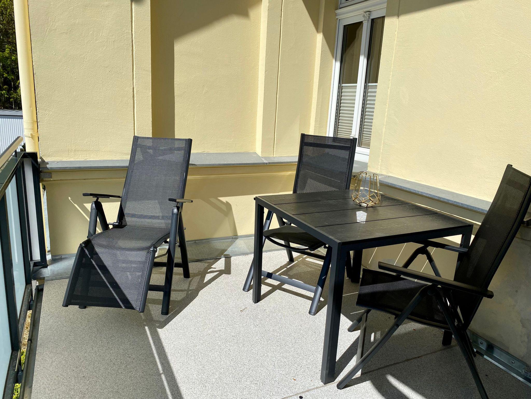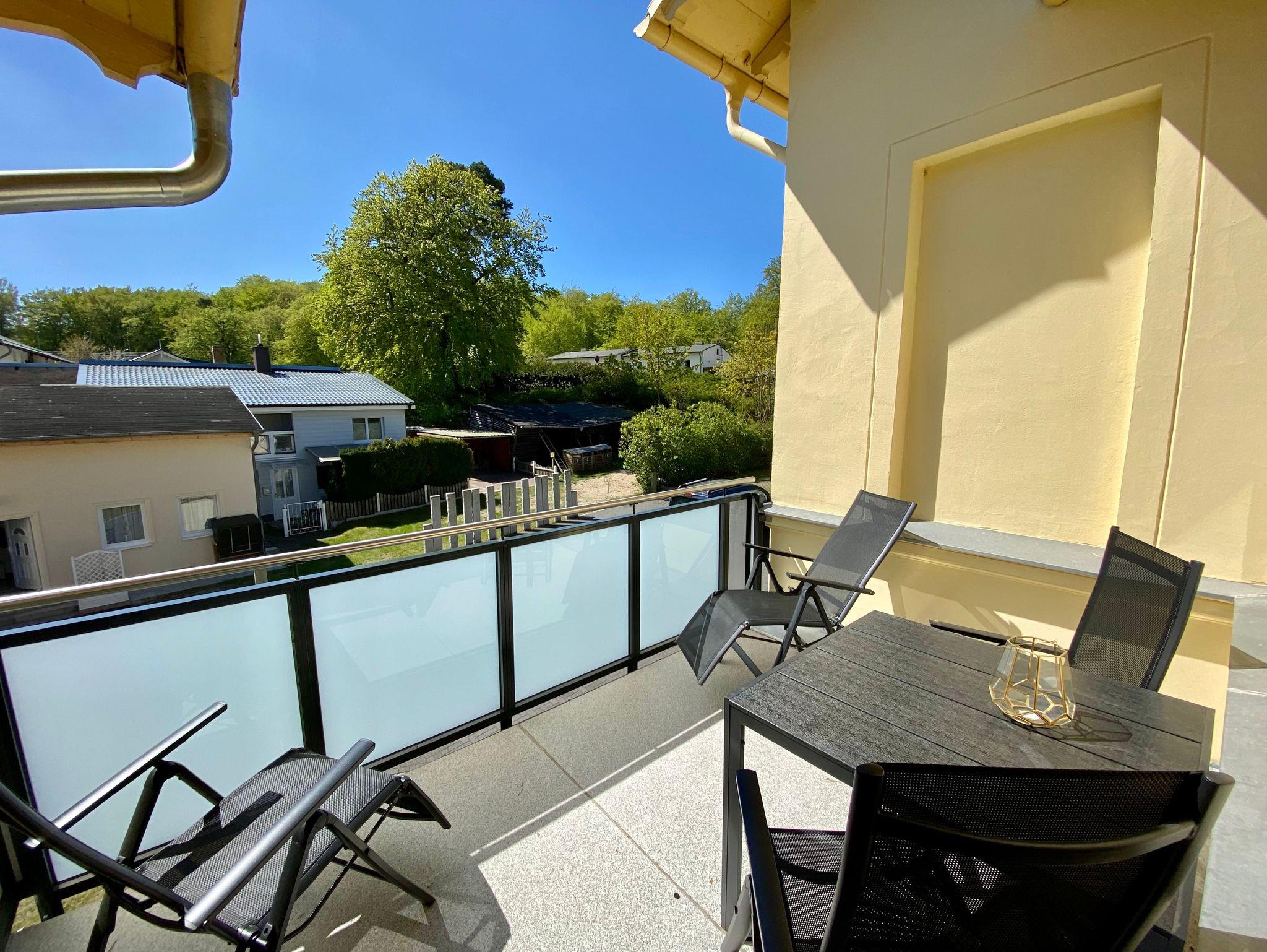 Die moderne Ferienwohnung Kaiserperle in der stilvollen Villa Anna in Heringsdorf bietet höchsten Komfort und einen Balkon mit Blick.