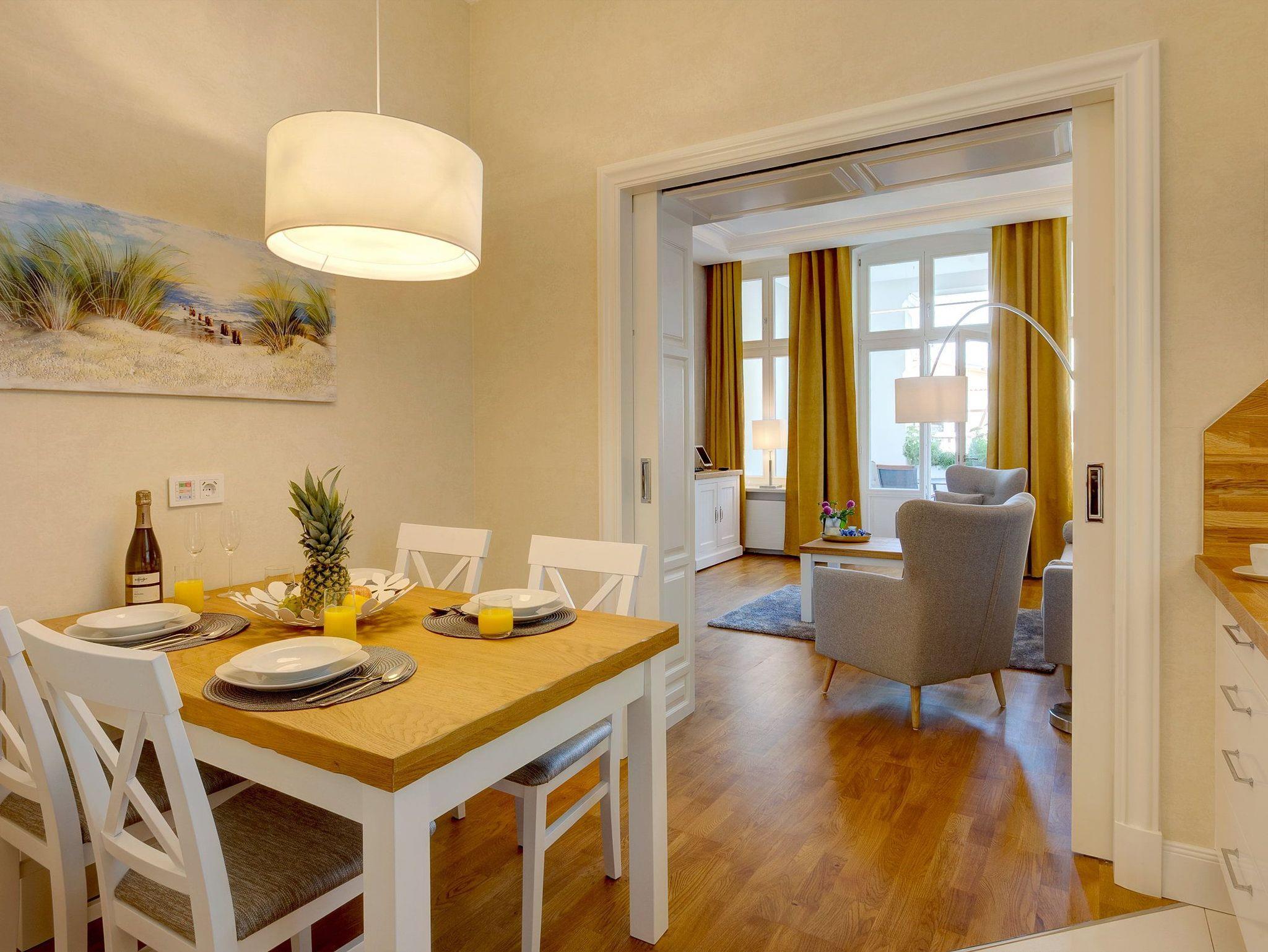 Auf 65 Quadratmetern begrüßen wir Sie in dem 2-Raum-Appartement im Hochparterre der Villa Pia Marie im modernen und gemütlichen Landhausstil zu sonnigen und erholsamen Urlaubstagen.
