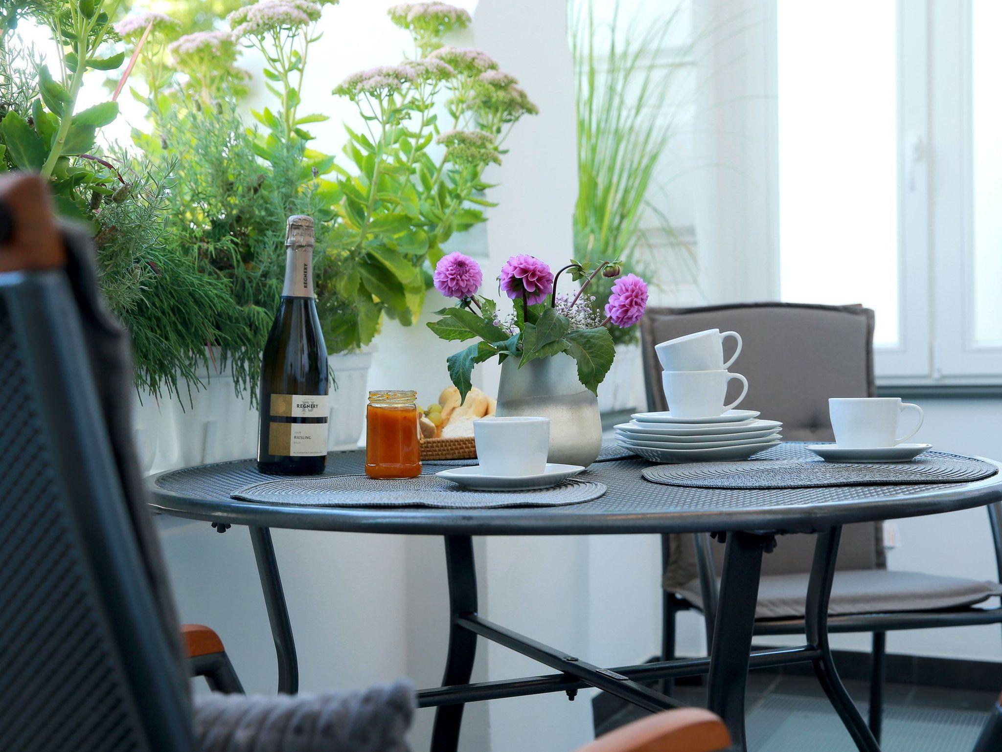 Vom Wohn- und Essbereich haben Sie Zugang zum sonnigen Süd-West-Balkon: lauschen Sie dem Rauschen der Ostsee und Entspannen Sie bei gemeinsamen Erzählungen über Ihre Urlaubserlebnisse.