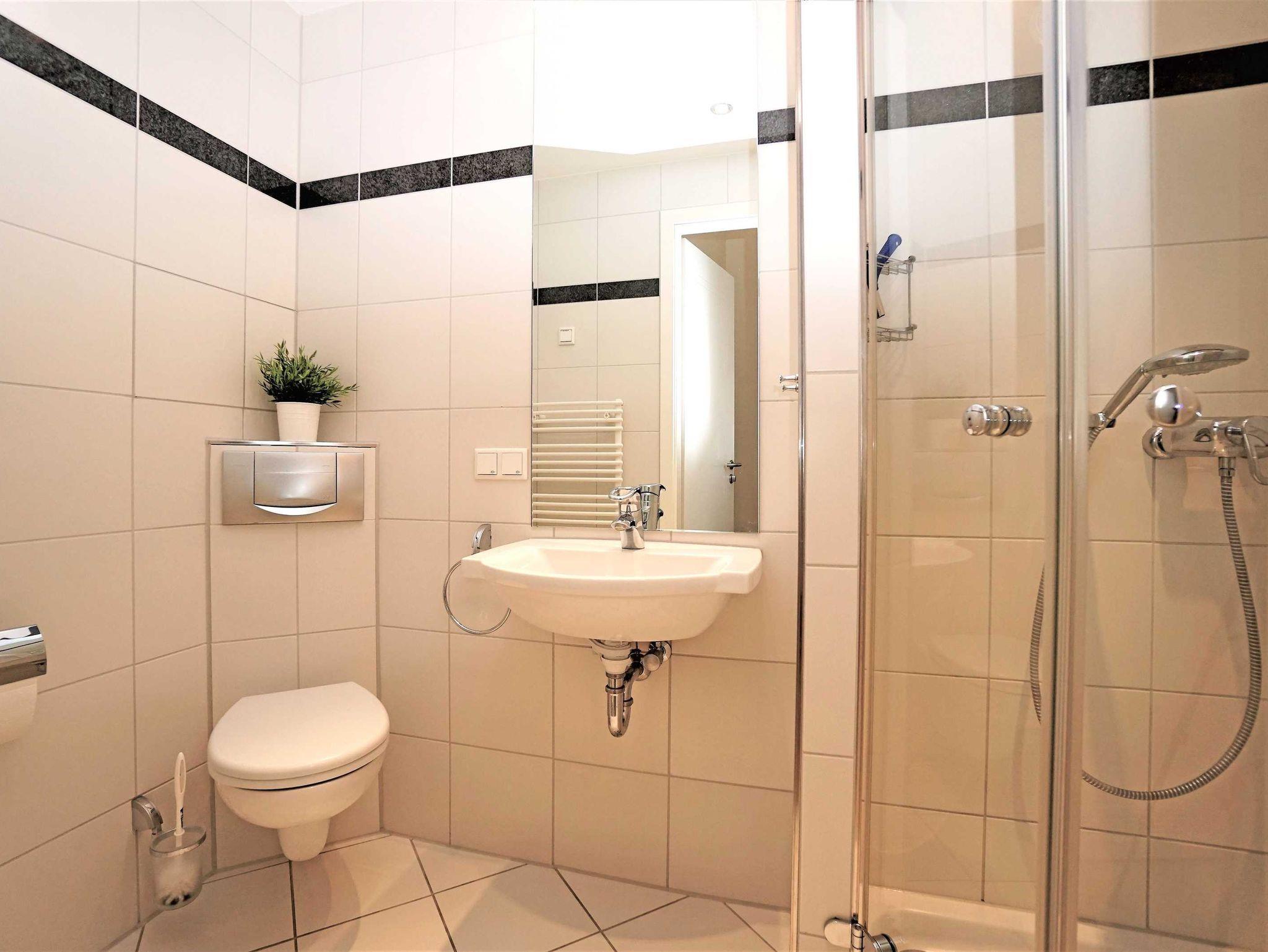 Die Ferienwohnung wird höchsten Ansprüchen gerecht. Die räumliche Aufteilung sowie getrennte Bäder ermöglichen auch eine Nutzung bis zu 4 Personen. Zusätzlich zu dieser Ferienwohnung stehen Ihnen ein PKW-Stellplatz zur Verfügung sowie im Keller ein gemeinschaftlich genutzter Abstellraum und Waschraum mit Münz-Waschmaschine und Münz-Trockner. In der Villa Darja, auf dem gleichen Grundstück gelegen, können Sie die Wellness-Räume mit Sauna (Münzbetrieb) benutzen. Ein kostenfreies WLAN-Netzwerk steht Ihnen zur Verfügung.
