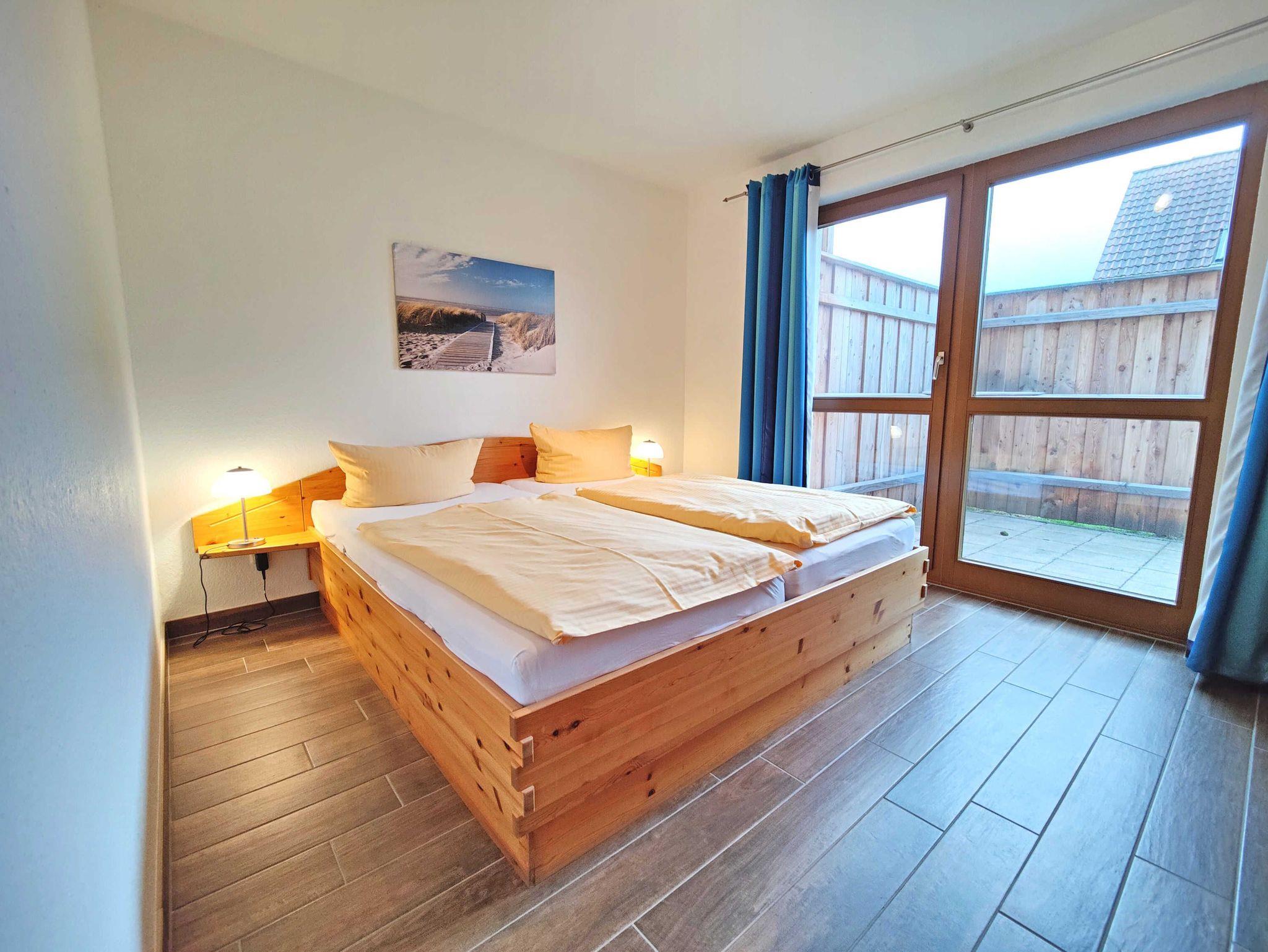 Die Wohnungen im Erdgeschoss bieten Platz für 4 Personen und sind ca. 70m² groß. Sie sind aufgeteilt in 2 Schlafzimmer, einen Wohnraum mit Einliegerküche, ein komfortables Bad und eine Terrasse.