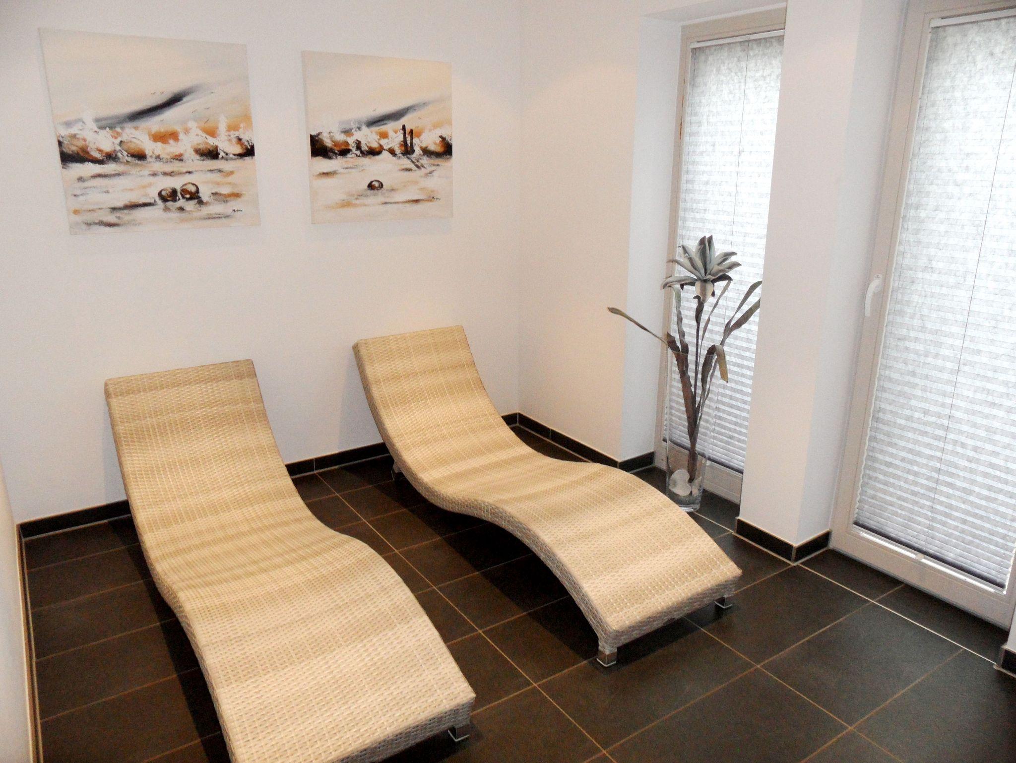 Es ist die Entspanntheit warmer Sommertage, die in dieser 3-Zimmer-Wohnung für bis zu 4 Personen die Regie führt. Wer hier für seinen Urlaub verbringt, der spürt es schnell, wie das Herz vor Freude hüpft. Den Tag am Strand verbringen und abends dem Sonnenuntergang zu zuschauen? Das gibt es hier vor der Haustür. Auf der gemütlichen großen Eckcouch können sich Gäste behaglich ausstrecken und in die Kissen kuscheln. Oder die neuesten Nachrichten, Sport sowie die Lieblingsserie im TV schauen. Nicht zu vergessen: in kälteren Jahreszeiten ist der große Kaminofen im Wohnzimmer sicher der beliebteste Platz in der Wohnung. Direkt daneben befindet sich die gut ausgestattete Küche, in der es sich bestens kochen und backen lässt. Und danach hat man viel Zeit, denn die Spülmaschine übernimmt den Abwasch. Oder doch lieber hinaus auf die große Terrasse? Die bequemen Sitzgelegenheiten laden zu gemeinsamen Mahlzeiten ebenso ein, wie zu geruhsamen Abendstunden bei einem Glas Wein. Übrigens: Natürlich gibt es auch W-LAN*, damit die Urlaubsbilder gleich hochgeladen werden können. Wer von erlebnisreichen Ferientagen erschöpft und müde nach Hause kommt, der findet in beiden Schlafzimmer ein gemütliches Doppelbett. Übrigens: Hier gibt es auch einen geräumigen Kleiderschrank für die mitgebrachten Urlaubsoutfits. Wie sieht das Badezimmer aus? Hier gibt es eine große Dusche, ein großes Waschbecken und einen Heizkörper, der die Handtücher trocknet. Apropos Erholung: ein besonderes Highlight ist der Saunabereich im Haus (gegen Gebühr) und der Strandkorb (inkl.) am Strand (ca. Mai - September). Auch eine Münzwaschmaschine, -trockner stehen Ihnen zur Verfügung. Und das Auto? Das kann man hier gerne stehen lassen ? auf dem eigenen PKW-Abstellplatz in der Tiefgarage.