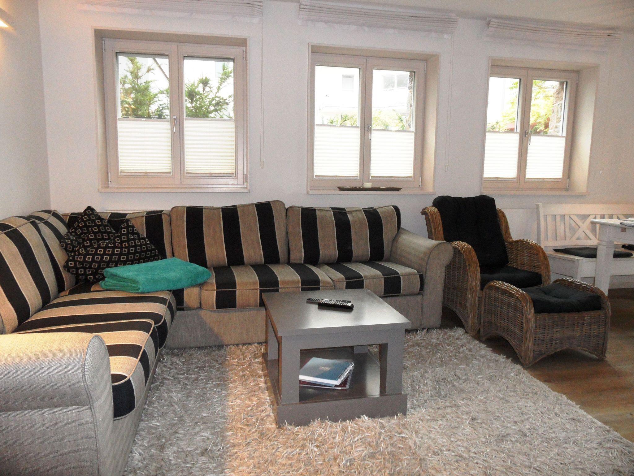 In dieser Ferienwohnung wurde schönes Altes bewahrt und mit Modernem gekonnt kombiniert. Wer hier in das Kapitänshaus direkt an der Strandpromenade einzieht, der spürt gleich, dass er einen seltenes Kleinod gefunden hat, an dem man richtig urlauben kann, nicht nur übernachten. In der Küche mit Kamin kann man sich in großer Runde am Tisch versammeln, um gemeinsam zu essen, über die Erlebnisse des Tages zu berichten. Darüber hinaus finden Hobbyköche alles, was das Herz begehrt ob Ceranfeld-Herd, Kühlschrank, Backofen, Mikrowelle, Wasserkocher oder Kaffeemaschine voilà! Die große Eck-Couch im Wohnzimmer lädt ein, um vor sich hin zu träumen, zu lesen, gemeinsam die Nachrichten oder die Lieblingsserie im TV zu schauen. Dann sind da noch die Schlafzimmer - alles für den erholsamen Schlaf! In der Nummer eins und auch in der Nummer zwei wartet ein großes Doppelbett auf müde Bewohner und verspricht die ersehnte Erholung. Natürlich verfügt jeder Schlafraum über ein zusätzliches TV Gerät. Und da ist dann noch ein geräumiges helles Bad. Die ebenerdige Dusche eignet sich hervorragend als Wachmacher am Morgen und auch für Entspannung am Abend. Es gibt noch mehr Orte, an denen man hier einfach gerne ist der große möblierte Balkon. Auch da kann man sitzen und die Ruhe pur genießen. Apropos Erholung: ein besonderes Highlight ist der Saunabereich im Haus (gegen Gebühr) und der Strandkorb am Strand (ca. Mai - September). Auch eine Münzwaschmaschine, -trockner und ein kostenloses WLAN-Internet stehen Ihnen zur Verfügung.* Und das Auto? Das kann man hier gerne stehen lassen auf dem eigenen PKW-Abstellplatz in der Tiefgarage.