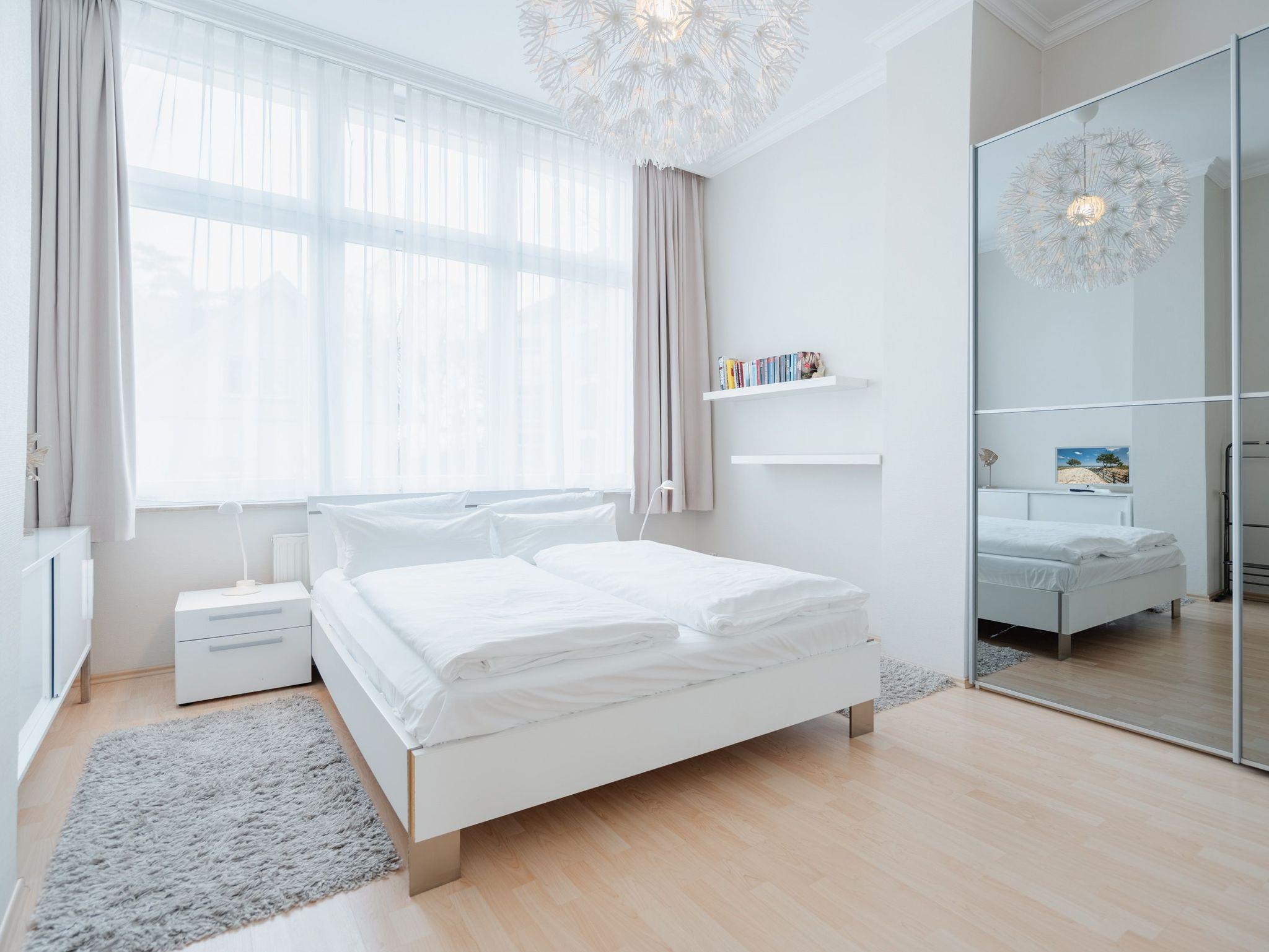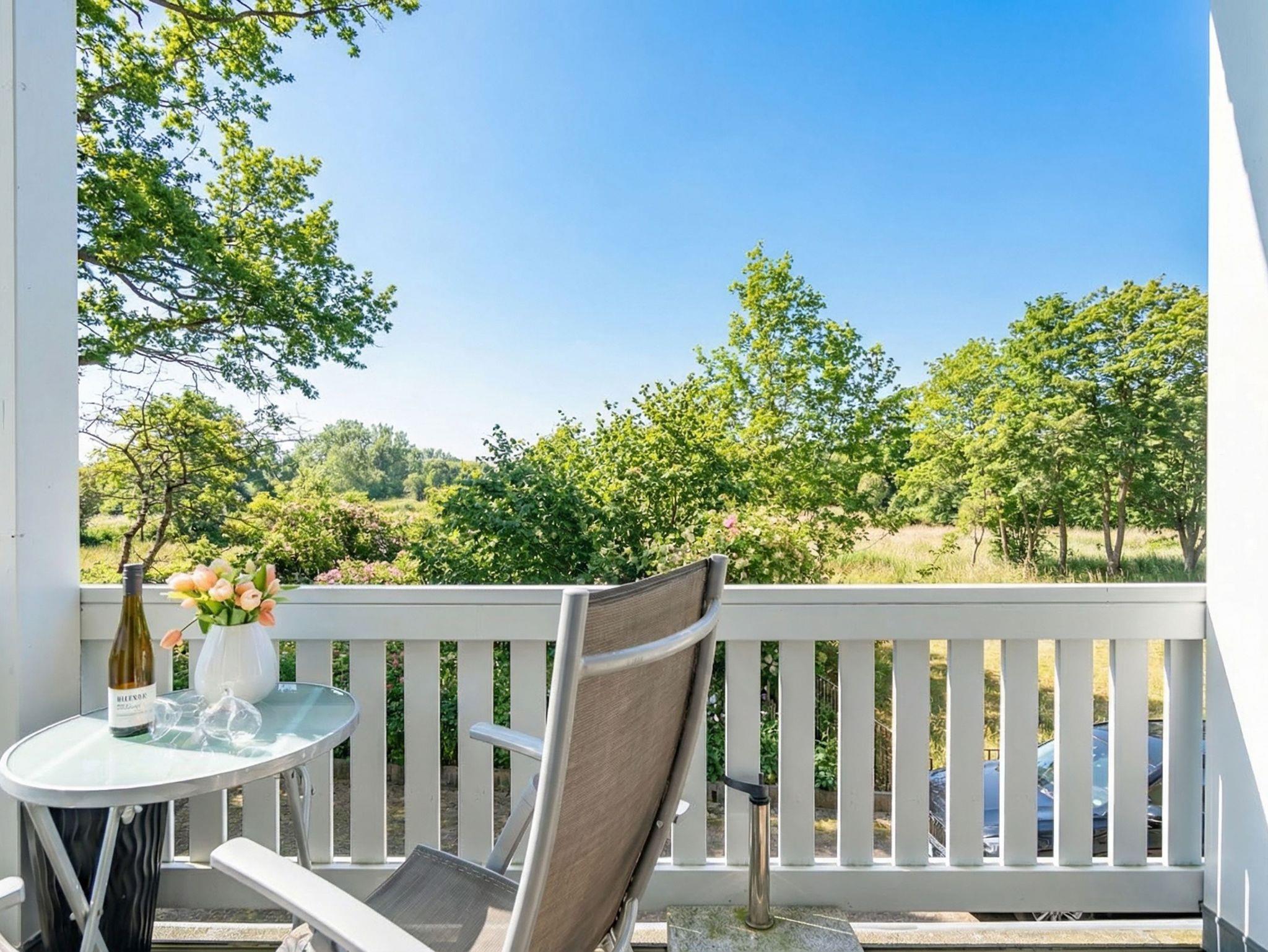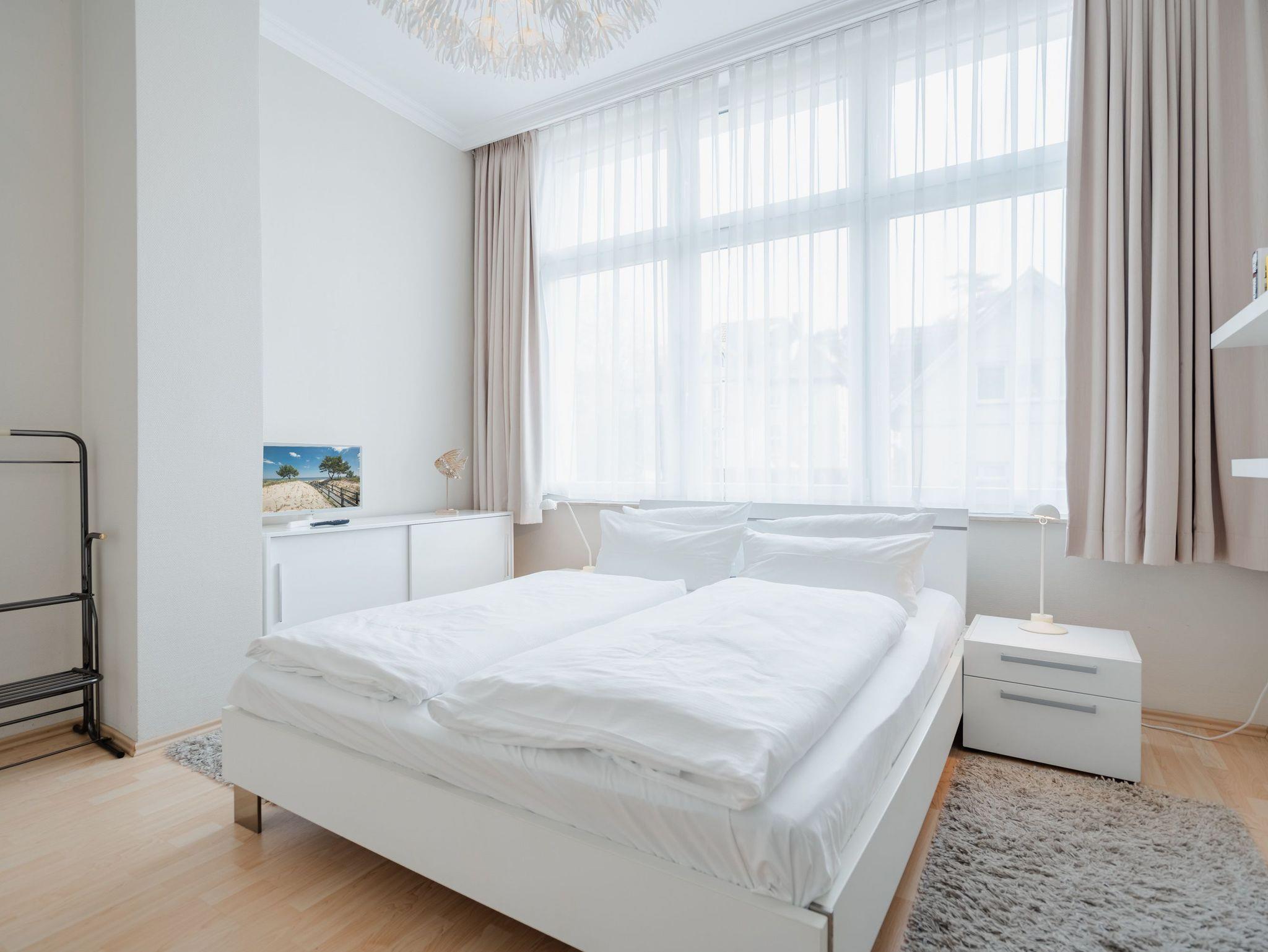 Moderne 2-Zimmer-Ferienwohnung mit Kamin und Südbalkon in Heringsdorf, nahe Strand und Promenade.