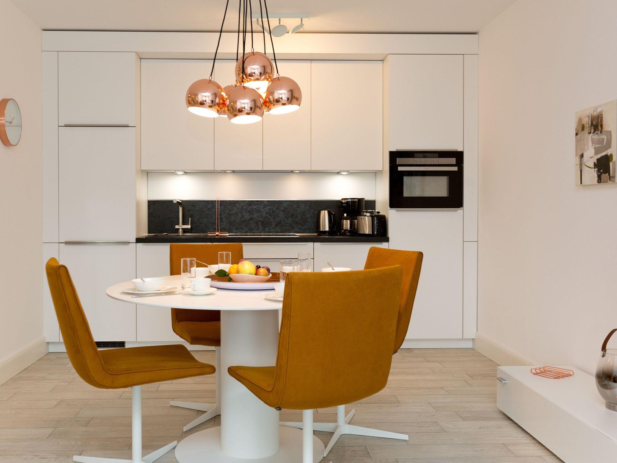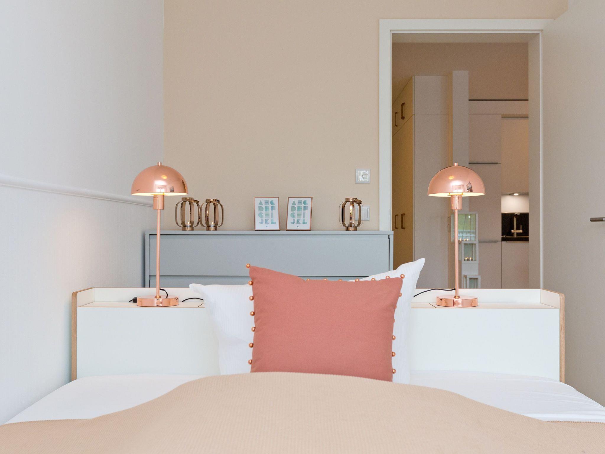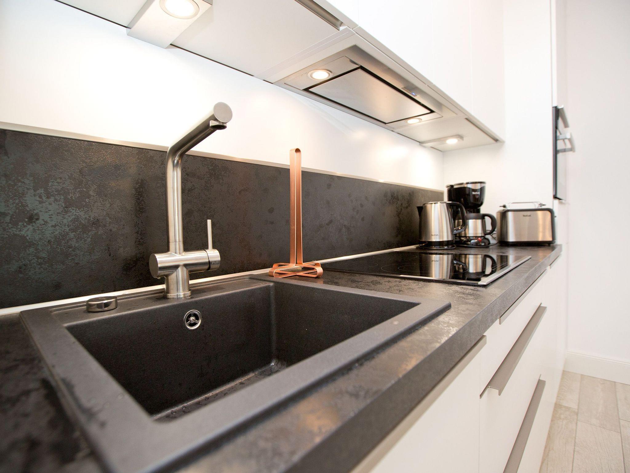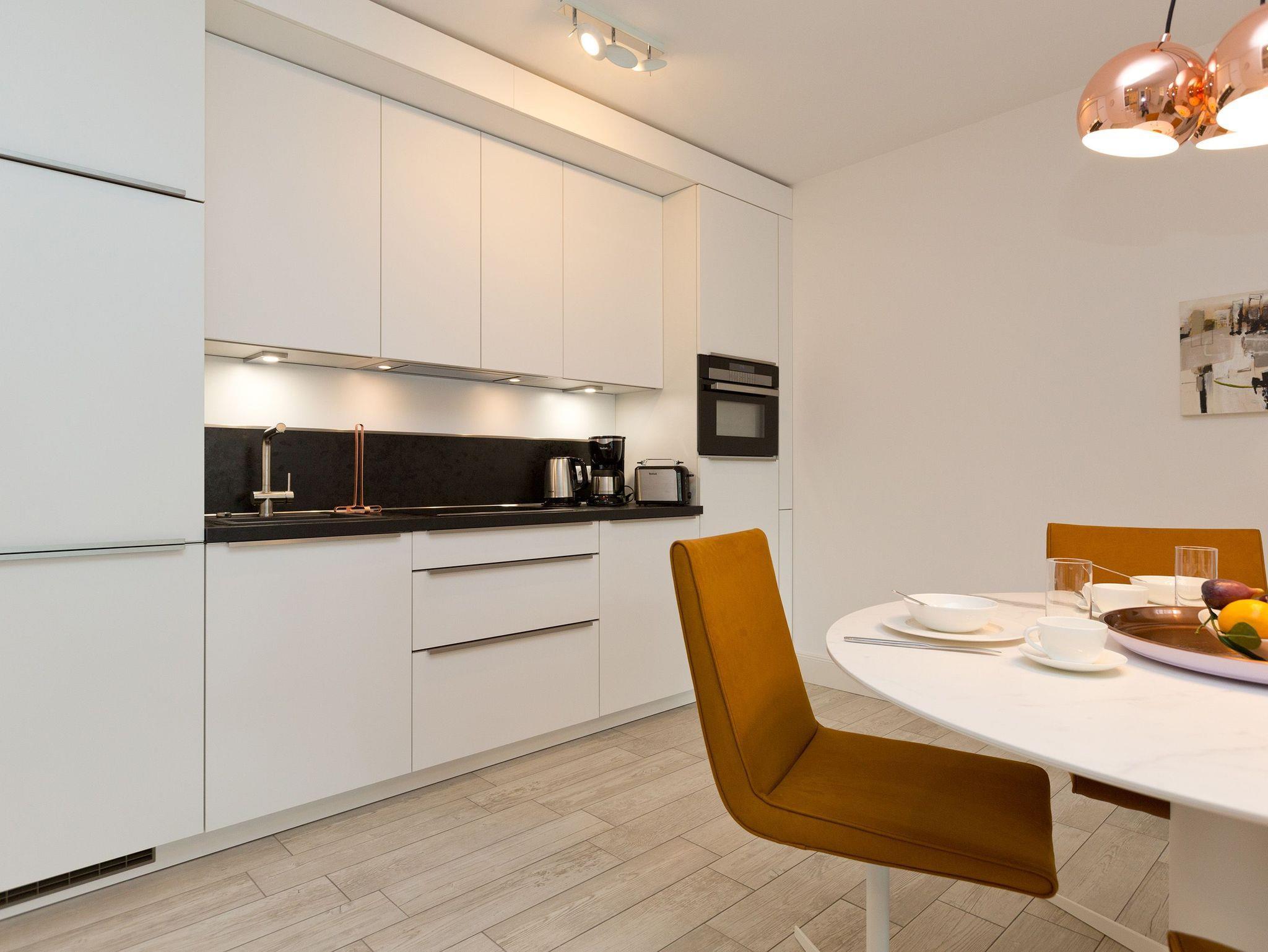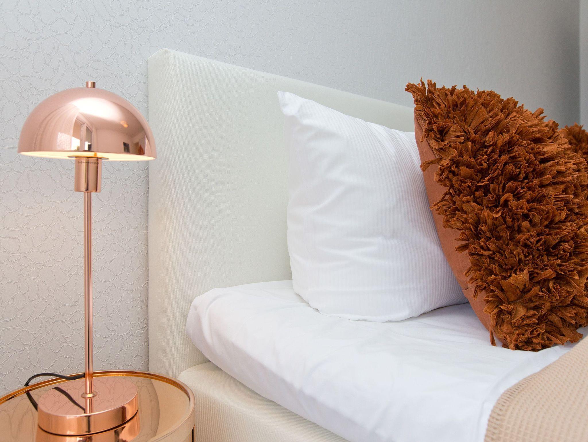 Viel Weiß, warmes Kupfer, Roségold und Brauntöne sorgen in den 80 Quadratmetern der Wohnung 16 in der 2. Etage der Dünenresidenz Heringsdorf für eine elegante und exklusive Urlaubsatmosphäre. Das stylische und moderne Design zieht sich hier durch jeden der drei Räume. Ein Urlaubsparadies für bis zu vier Personen, in dem Sie sich absolut wohlfühlen werden. Ein wunderschöner, großzügiger Wohn-Essbereich mit geschmackvollen Accessoires dekoriert und eine offene Küche laden zum Abschalten und Chillen ein. Lassen Sie sich in die riesige Sofalandschaft fallen, schauen Sie Filme oder Fern auf dem großen Flat-TV oder entspannen Sie beim Blick auf die flackernden Flammen des Elektro-Kamins. Sonne satt erwartet Sie auf dem weitläufigen Südbalkon ? begehbar von allen Zimmern aus ? mit Sonnenliegen und Esstisch. Die Wohnküche ist voll ausgestattet. Hier können Sie nach Herzenslust kochen und anschließend genießen. Himmlisch sind die Boxspringbetten (einmal 1,80 m x 2,00 m und einmal 1,60 m x 2,00 m) in den beiden Schlafzimmern. Eines der beiden Zimmer verfügt zudem über einen weiteren Flat-TV. Das Badezimmer ist mit einer geräumig Dusche, Waschtisch und WC ausgestattet und mit viel Liebe zum trendigen Detail gestaltet. Highlight des Appartements ist die finnische Sauna. Für einen rundum erholsamen Urlaub liegen die Handtücher für Sie bereit und die Betten sind bezogen. WLAN können Sie kostenfrei benutzen und ein Pkw-Stellplatz ist für Sie in der Tiefgarage (max. Einfahrtshöhe 1,93 m) reserviert.