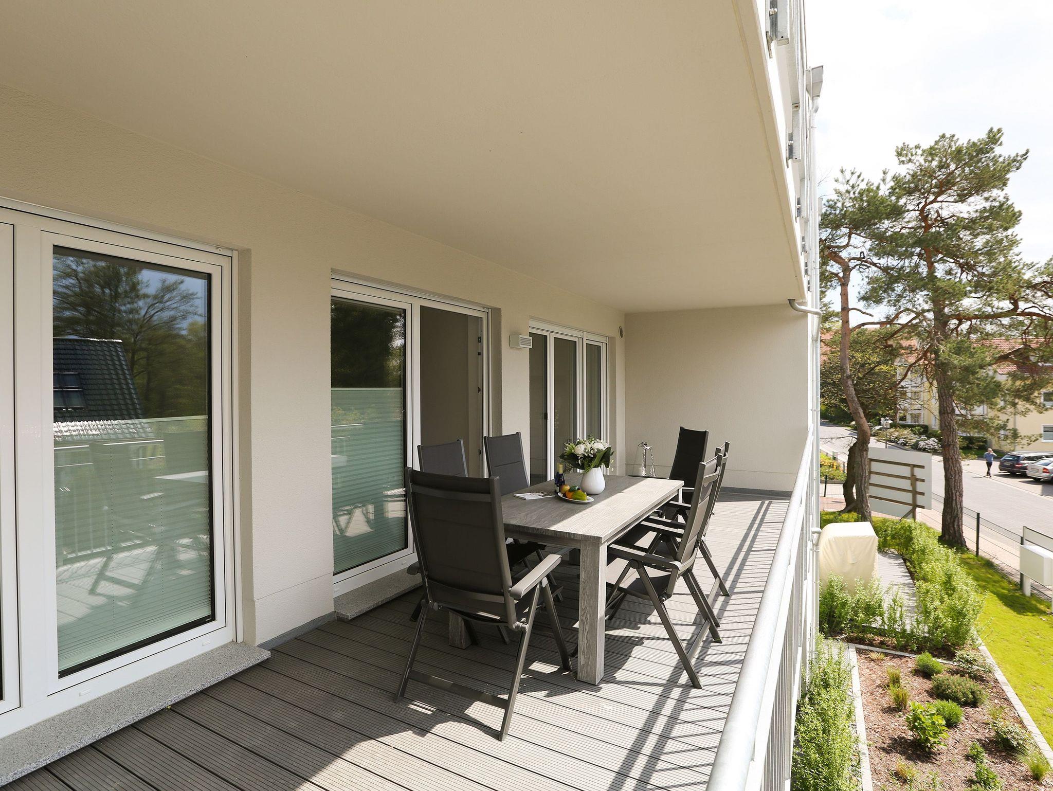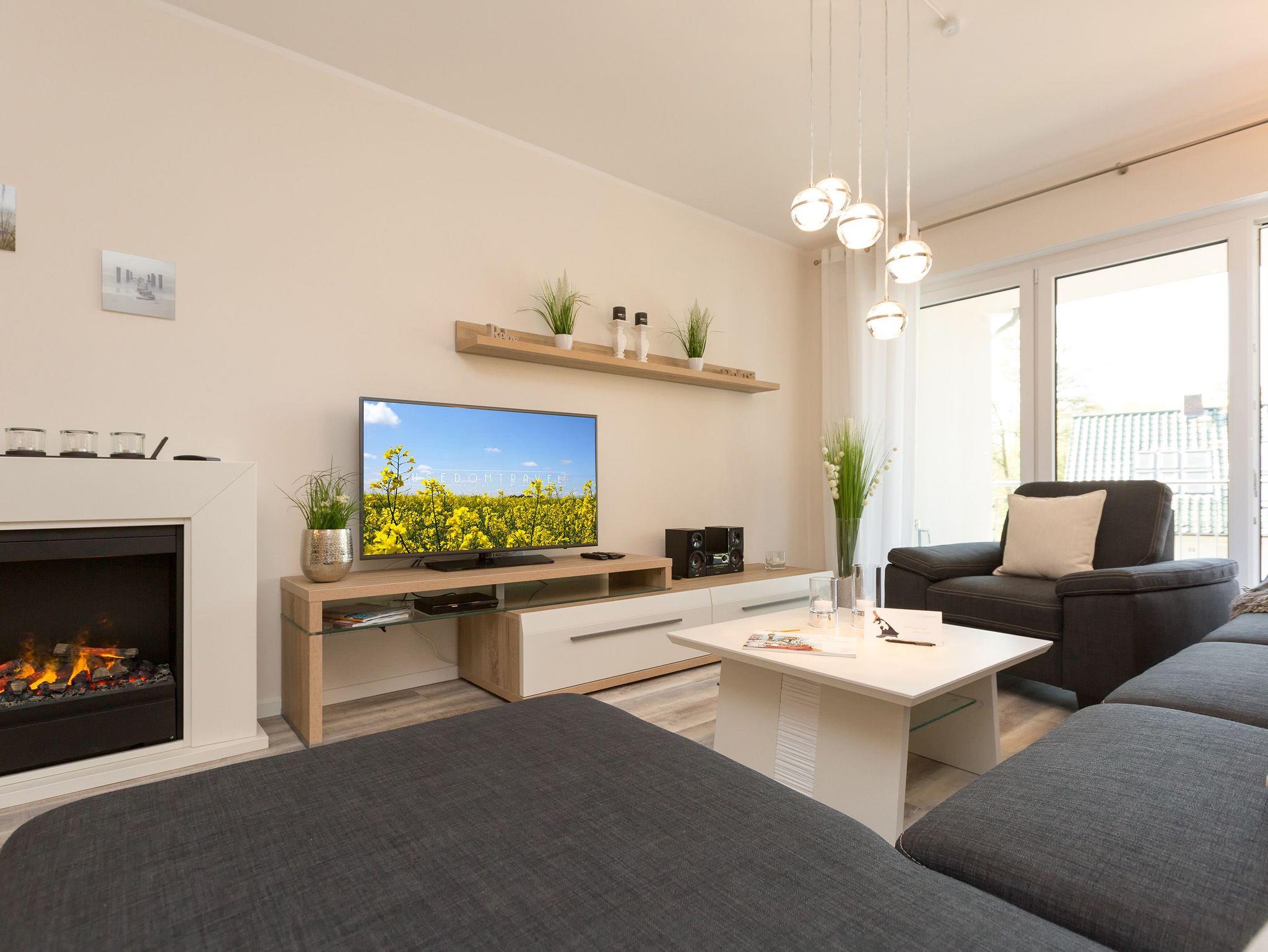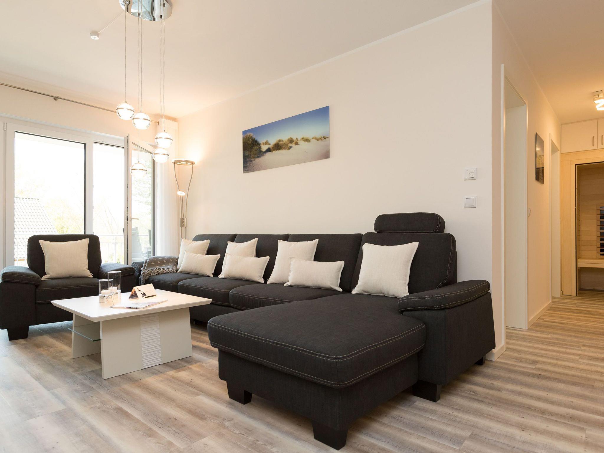 Modernes 3-Raum-Apartment in Dünenresidenz Heringsdorf mit Sauna, Kamin und großem Südbalkon.