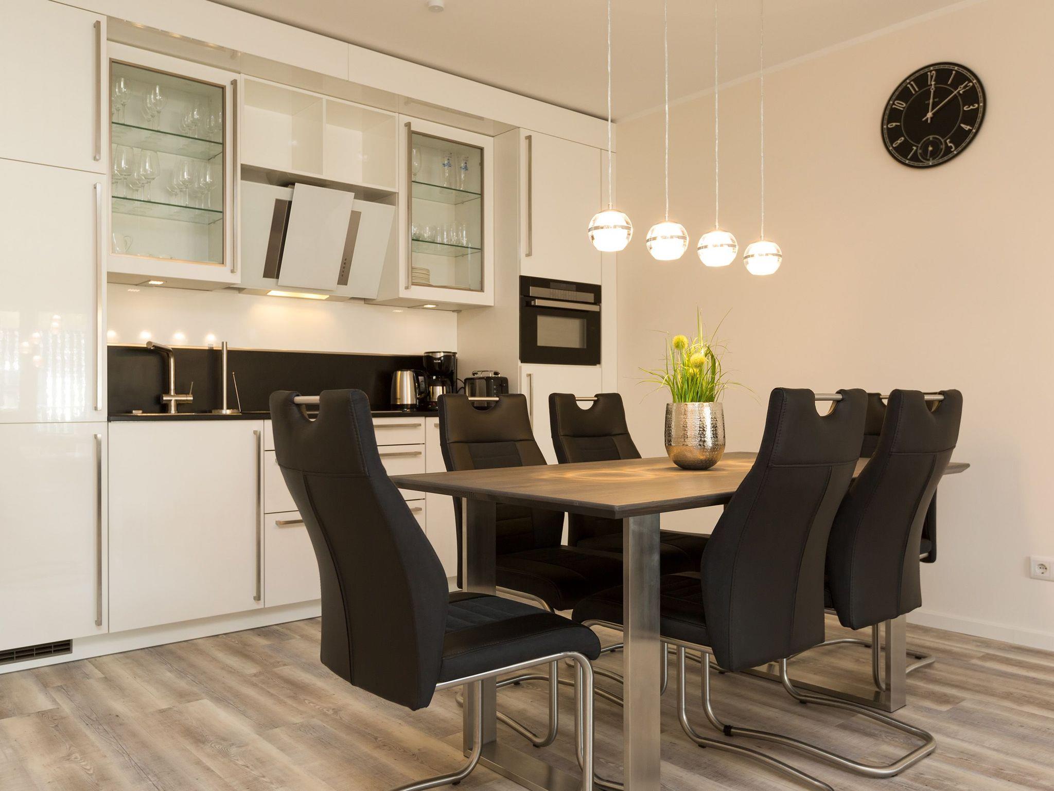 Das Appartement 10 in der Dünenresidenz werden Sie schnell in Ihr Herz schließen. Durch die moderne, liebevolle Ausstattung und die schöne Aufteilung der Räume ist das 3 Raum Appartement (80 qm) im 1. Obergeschoss ein ideales Urlaubsziel für 2 Personen und 2 Kinder bis 16 Jahre. Ihr Wohnbereich ist großzügig, lichtdurchflutet und empfängt Sie mit einer großen, bequemen Sitzgruppe, Flat-TV und modernen Elektrokamin. Die angrenzende, offene Küche mit Essplatz fügt sich harmonisch ein und ist natürlich komplett ausgestattet. Das Schlafzimmer mit komfortablen Doppelboxspringbett (1.80m x 2.00m) und Flat -TV sorgt für entspannte Nächte. Das zweite Schlafzimmer ist mit einem modernen Ausziehbett (je Liegefläche 0.90m x 2.00m) ausgestattet. Ein großes Bad mit Dusche und WC ergänzt die Wohnung. Neben der schönen Infrarotsauna in der Wohnung ist der große (21 qm) Südbalkon das Highlight der Wohnung. Ausgestattet mit Gartenmöbeln genießt man hier die Usedomer Sonne bis in die Abendstunden hinein. Für Ihren Komfort sind die Betten bei der Anreise bezogen und Handtücher liegen bereit. Ein Pkw-Stellplatz steht in der Tiefgarage (max. Einfahrtshöhe 1,85 m) zur Verfügung. Das Wlan-Netz kann kostenlos genutzt werden. Für den Tag am Meer steht Ihnen als besonderes Bonbon von Ende Mai bis Ende September (je nach Witterung) ein Strandkorb am Strand kostenlos zur Verfügung.
