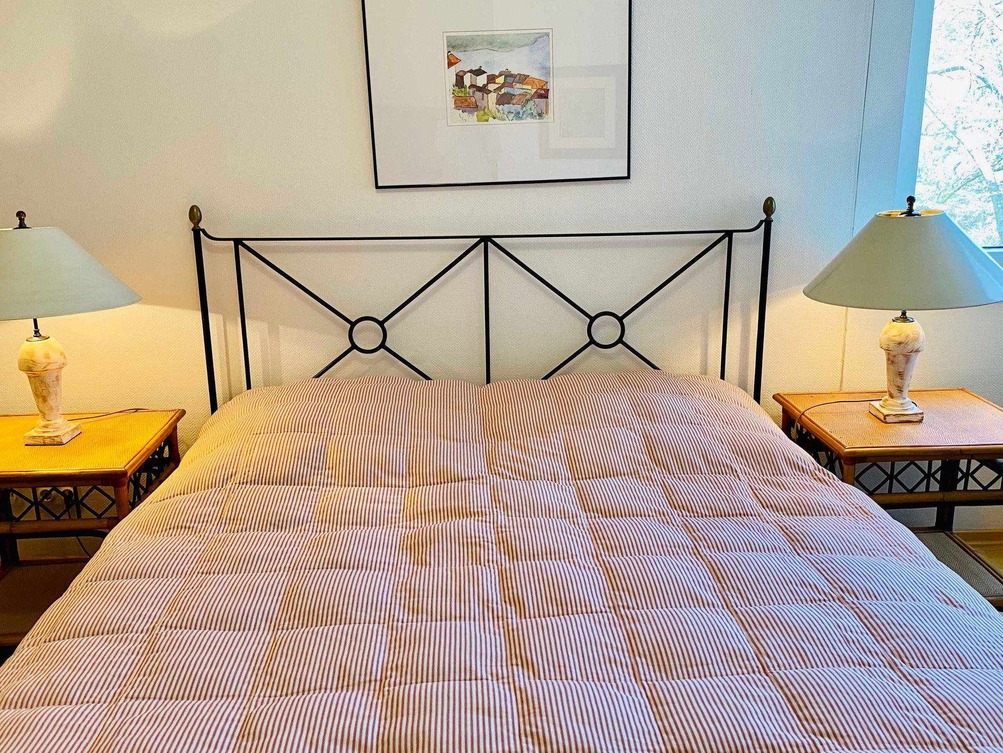 Die Ferienwohnung 5 ist sehr liebevoll im Landhausstil eingerichtet und mit Echtholz-Parkett ausgelegt. Der überdachte Balkon in Richtung Promenade erlaubt einen Blick auf die bewaldete Düne und das Treiben auf der Promenade. Zu Ihrer Ferienwohnung gehört ein Schlafzimmer mit Doppelbett, im Übergangsbereich zum Wohnzimmer befindet sich ein Wandbett. Komplettiert wird die Ferienwohnung durch 2 Bäder mit Dusche und Wanne, eine Komplettküche (Geschirrspüler/Mikrowelle/Backofen).