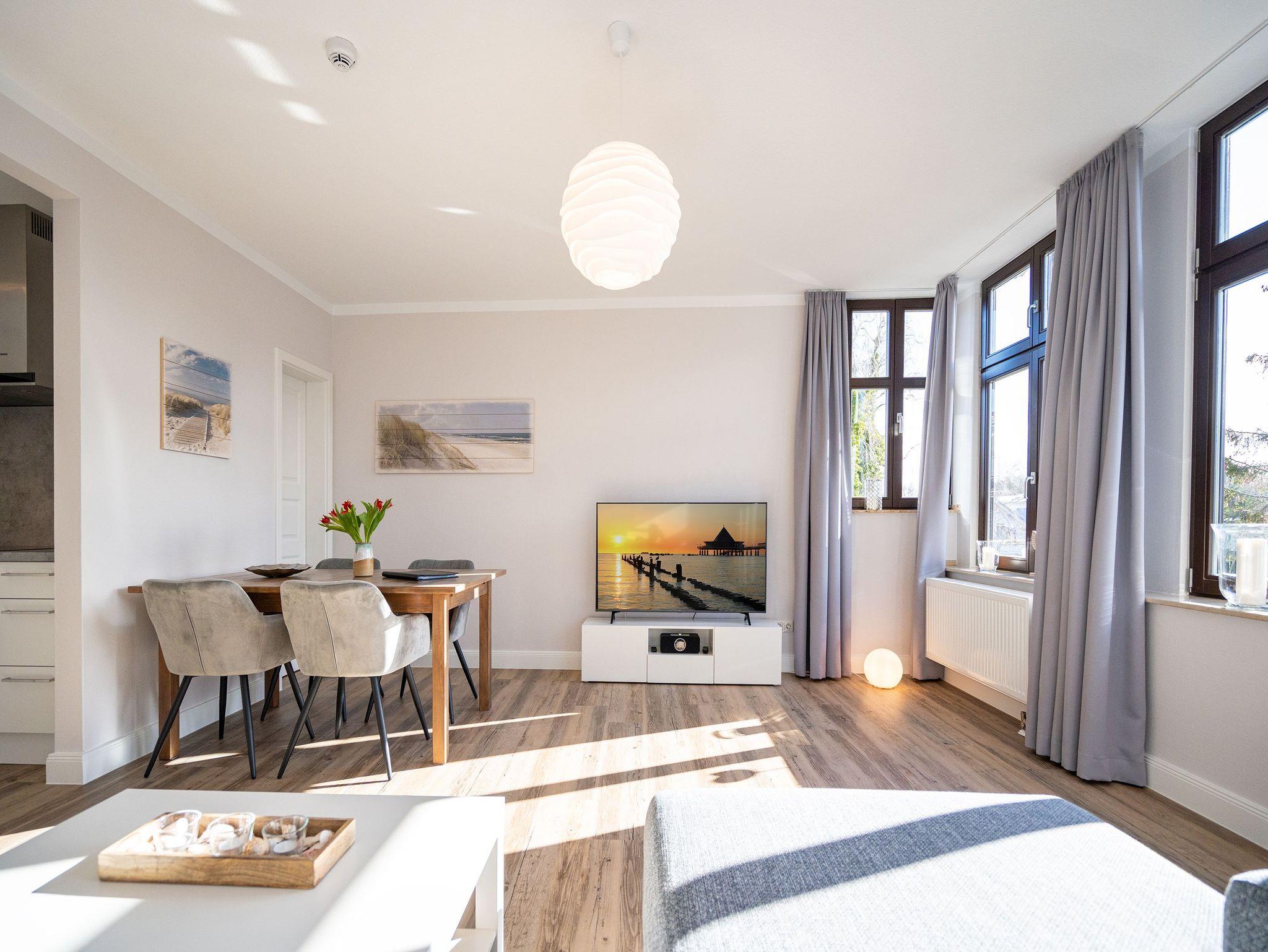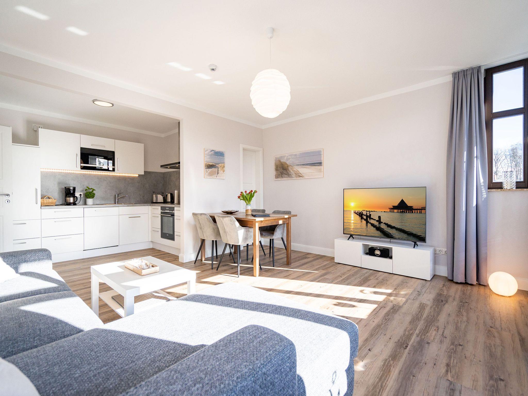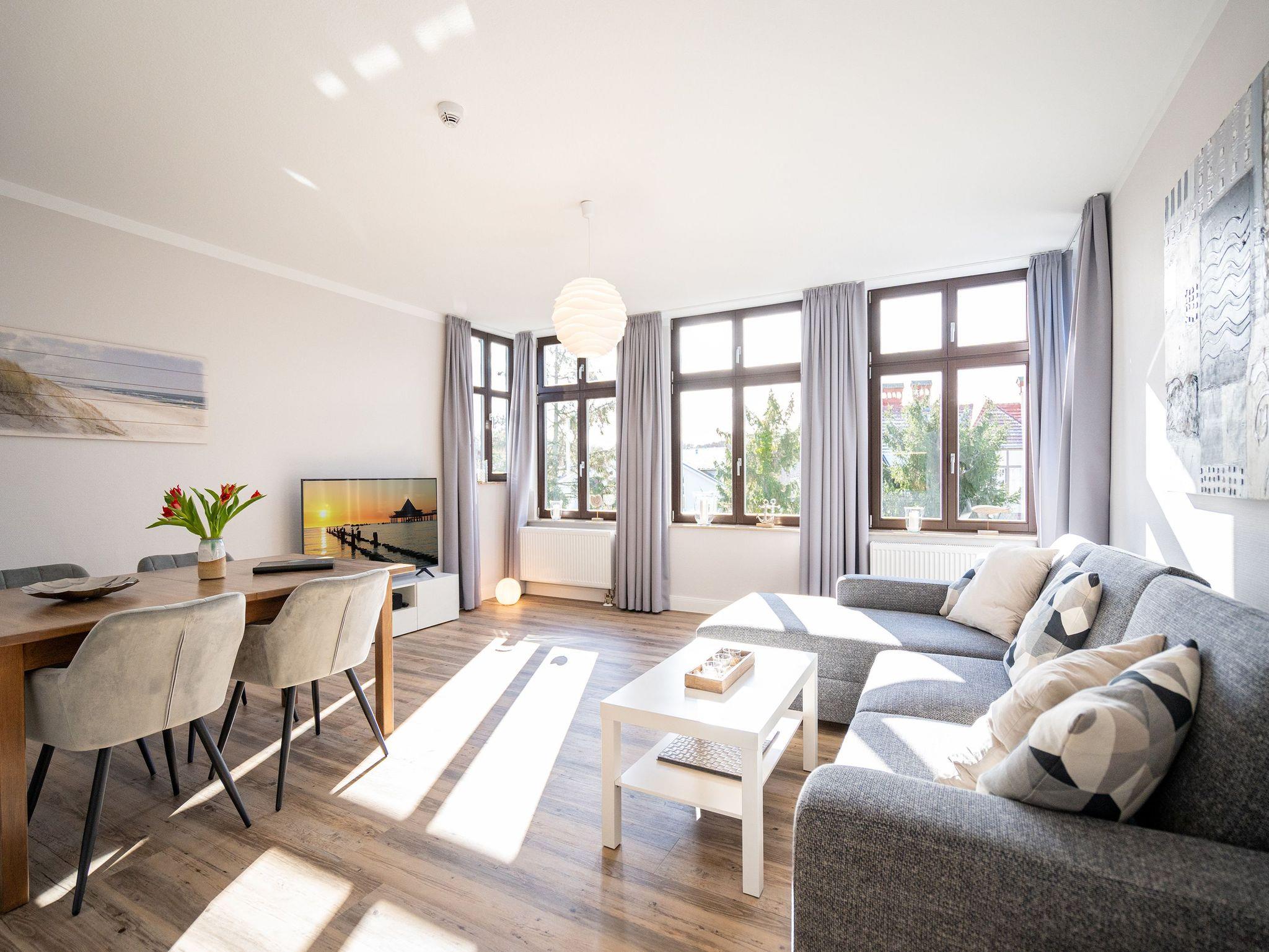 Helle 2-Raum-Ferienwohnung in Heringsdorf mit Strandkorb und WLAN, ideal für bis zu 4 Personen.